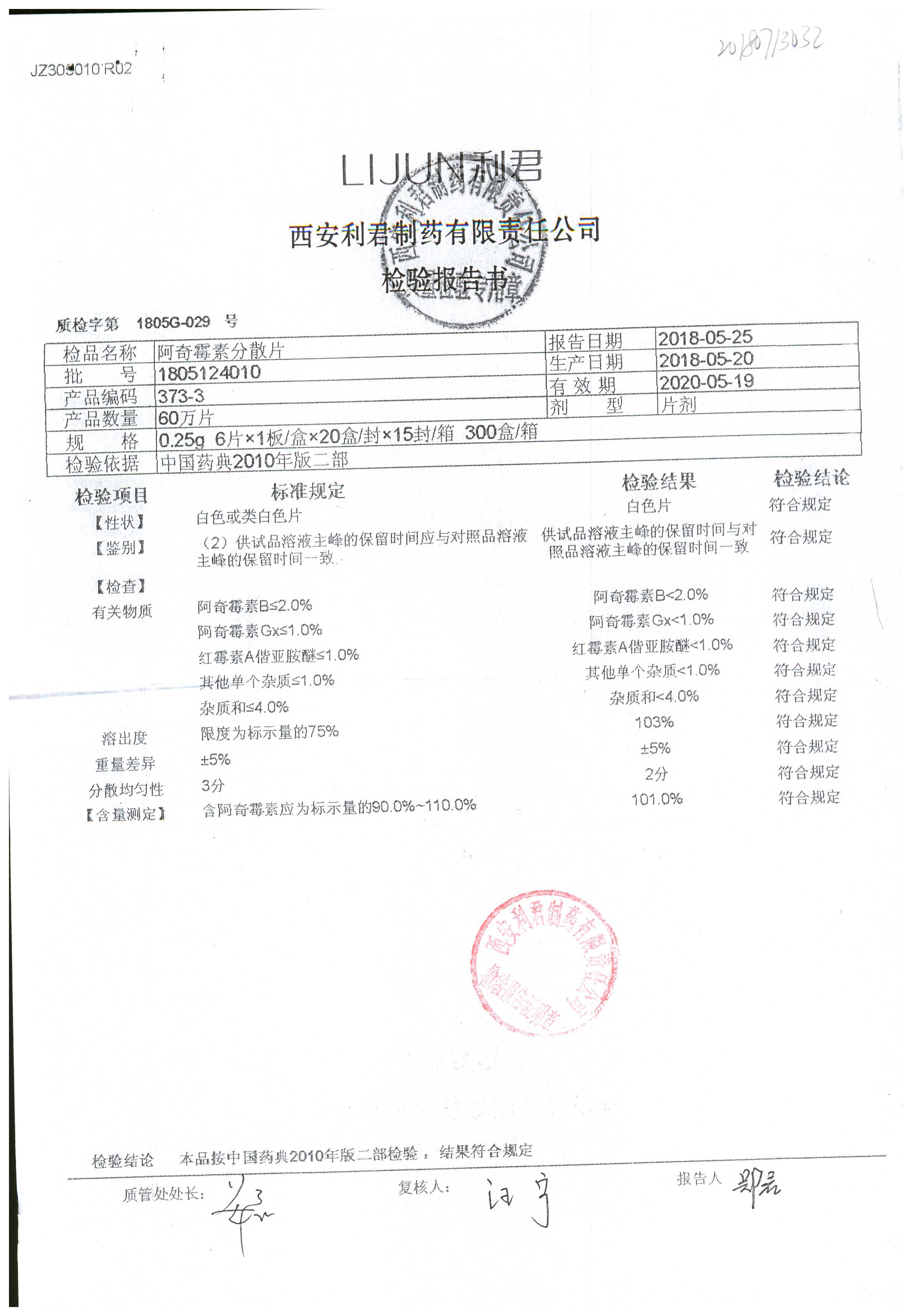 名称 | 规格 | 批号 | 药检报告 |