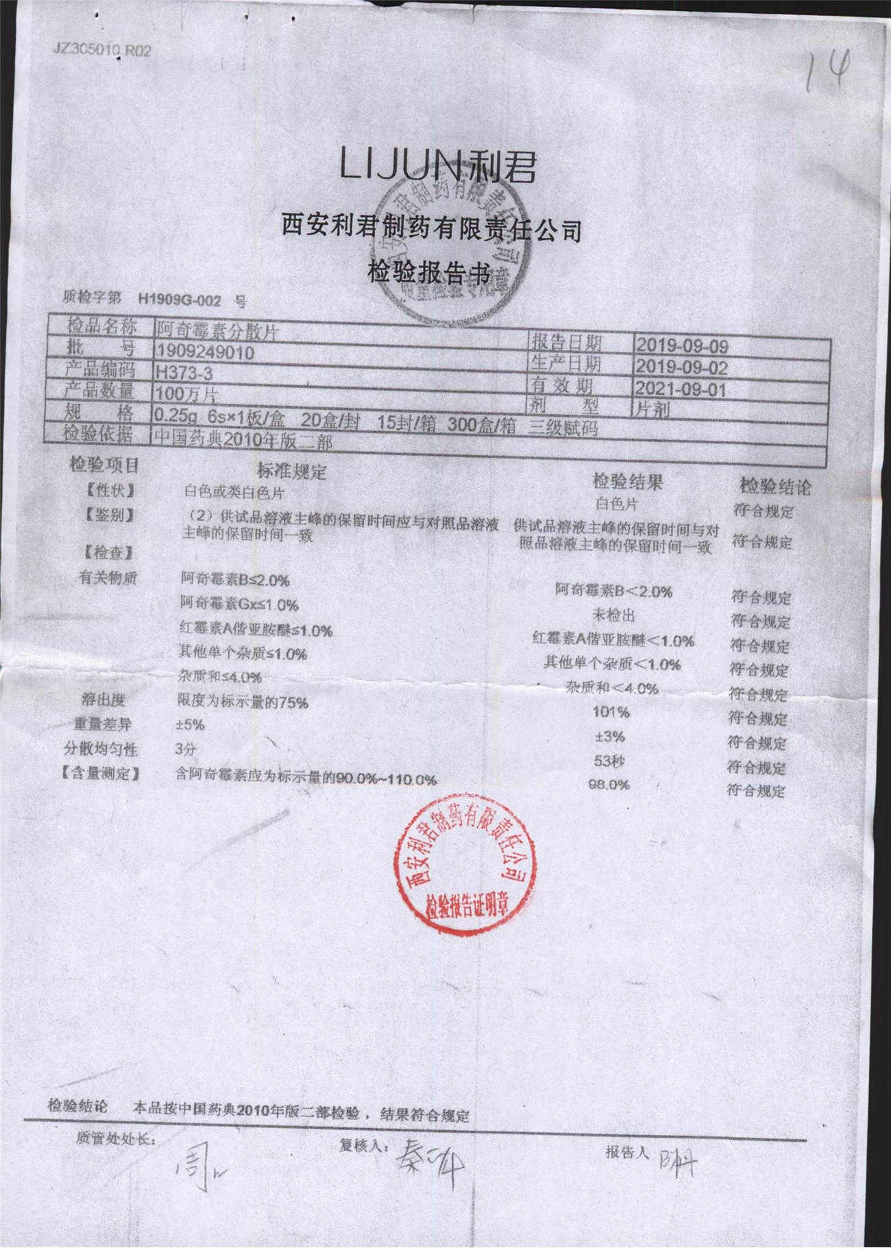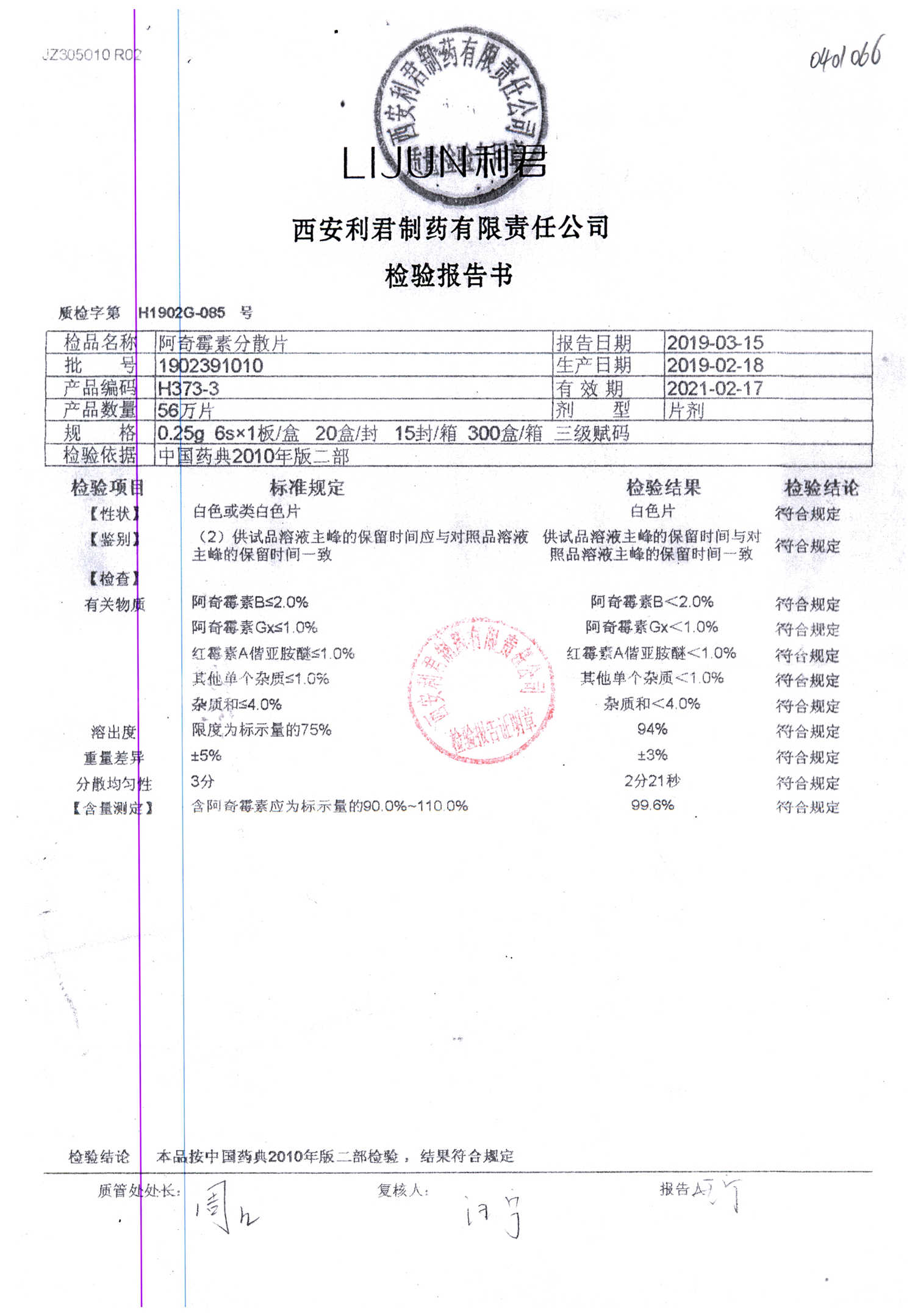 阿奇霉素分散片 | 0.25g*6片 | 1902391010 | 查看详情 |