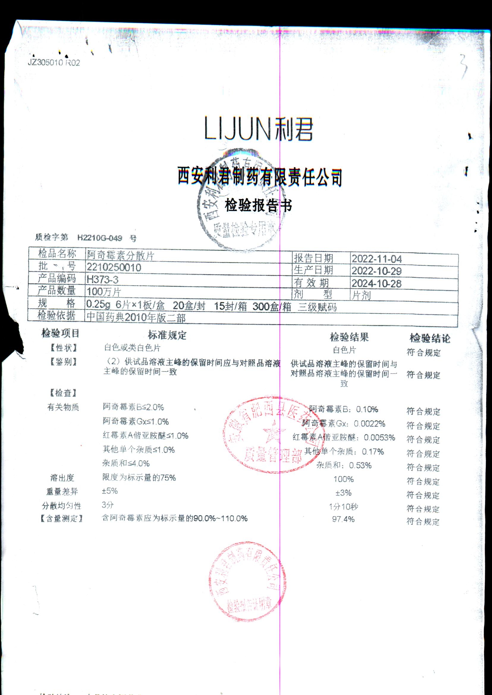 阿奇霉素分散片 | 0.25g*6片 | 2210250010 | 查看详情 |