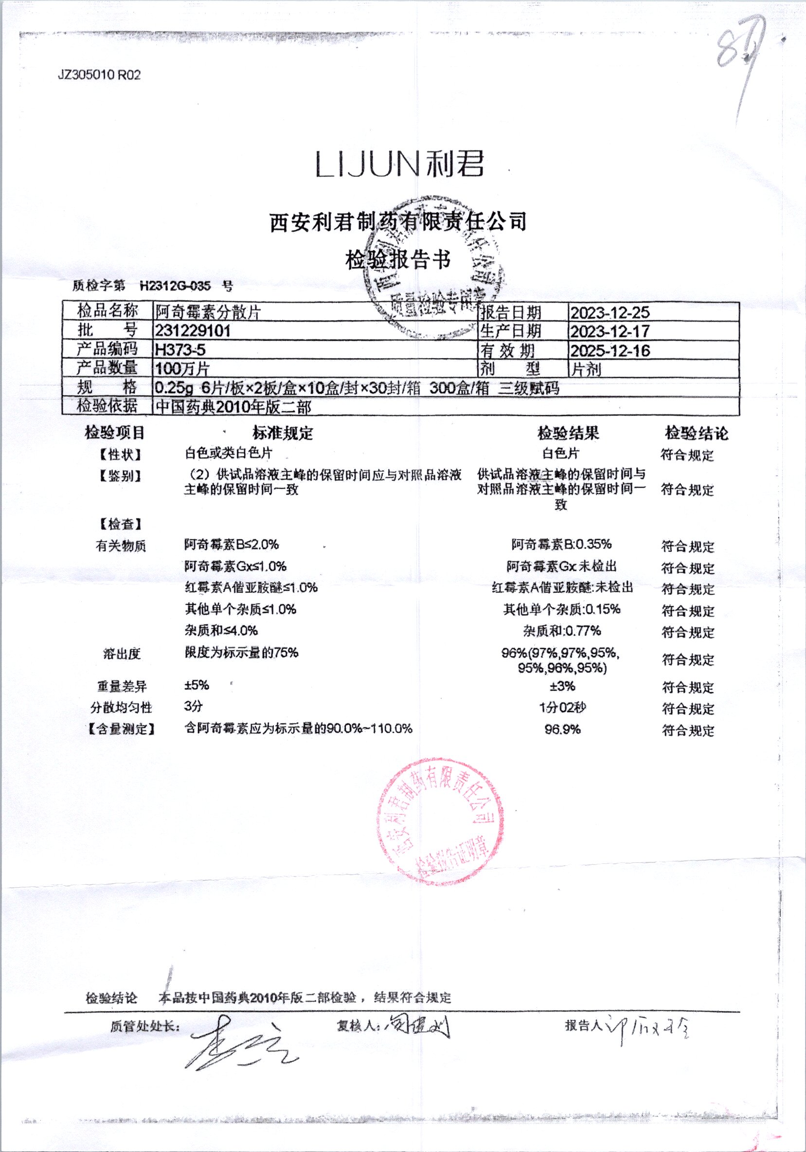阿奇霉素分散片 | 0.25g*6片 | 2011201011 | 查看详情 |