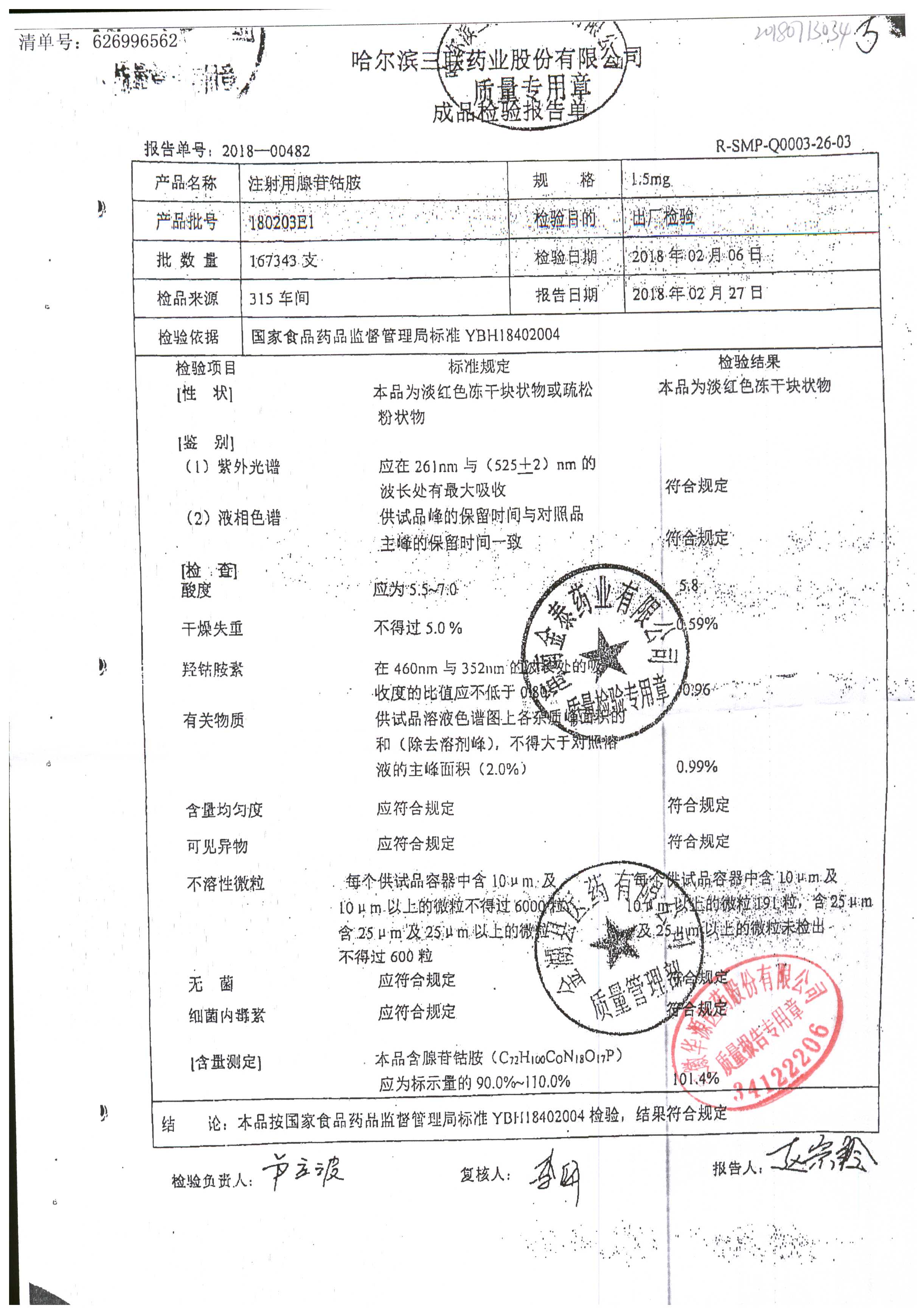 药检报告