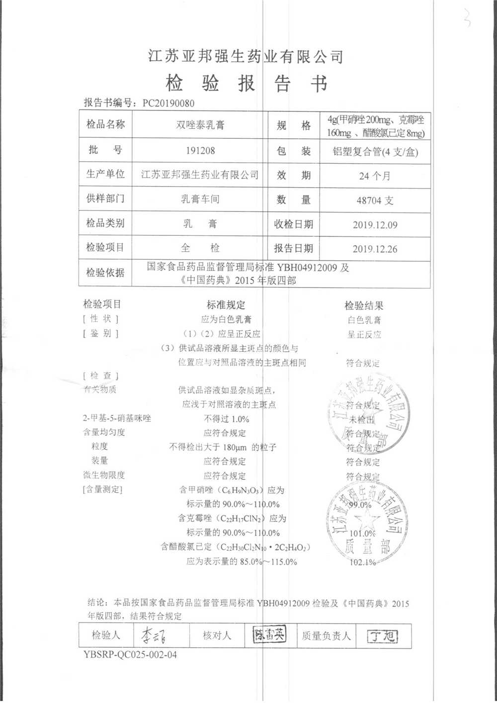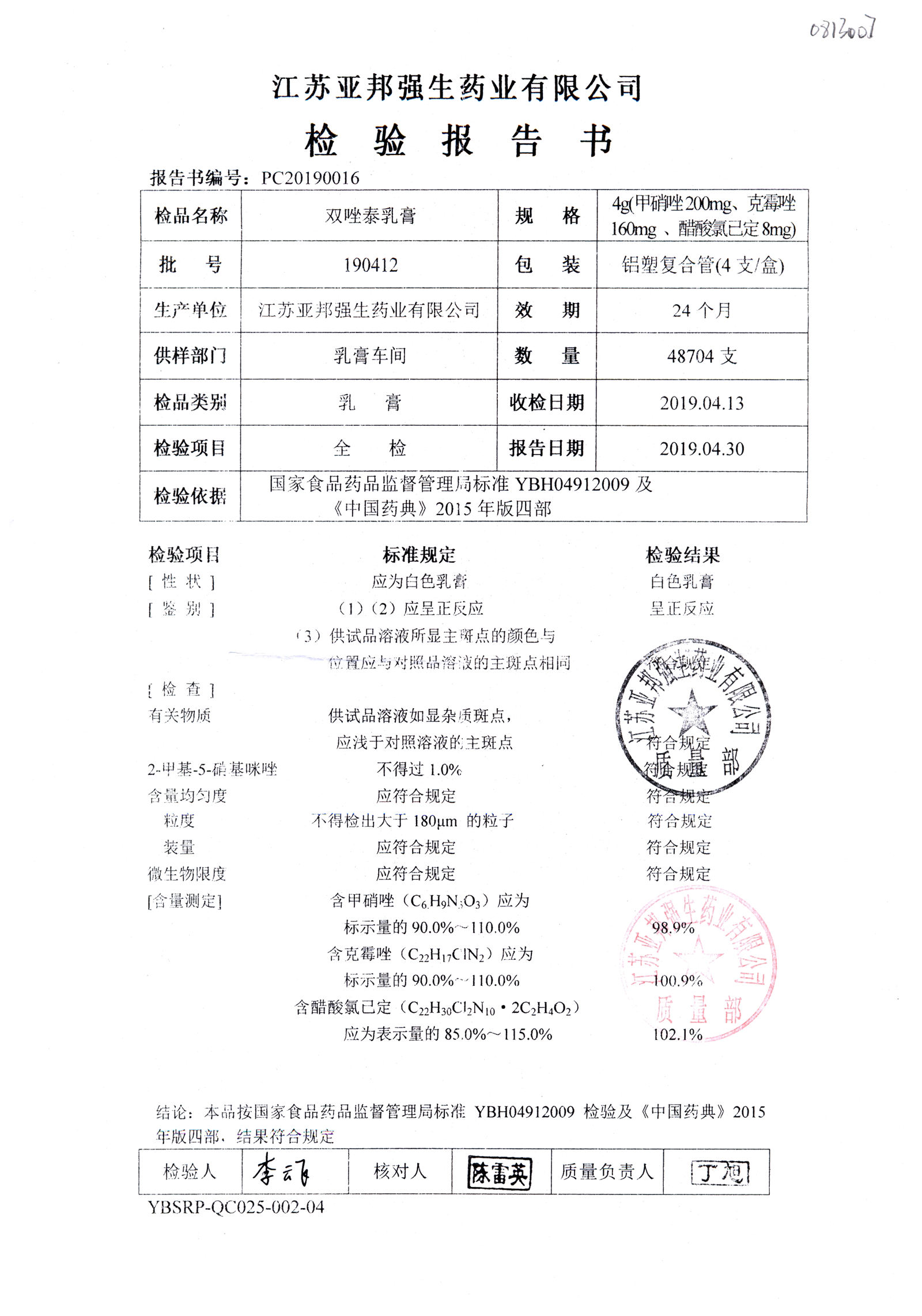 双唑泰软膏 | 4g | 190412 | 查看详情 |