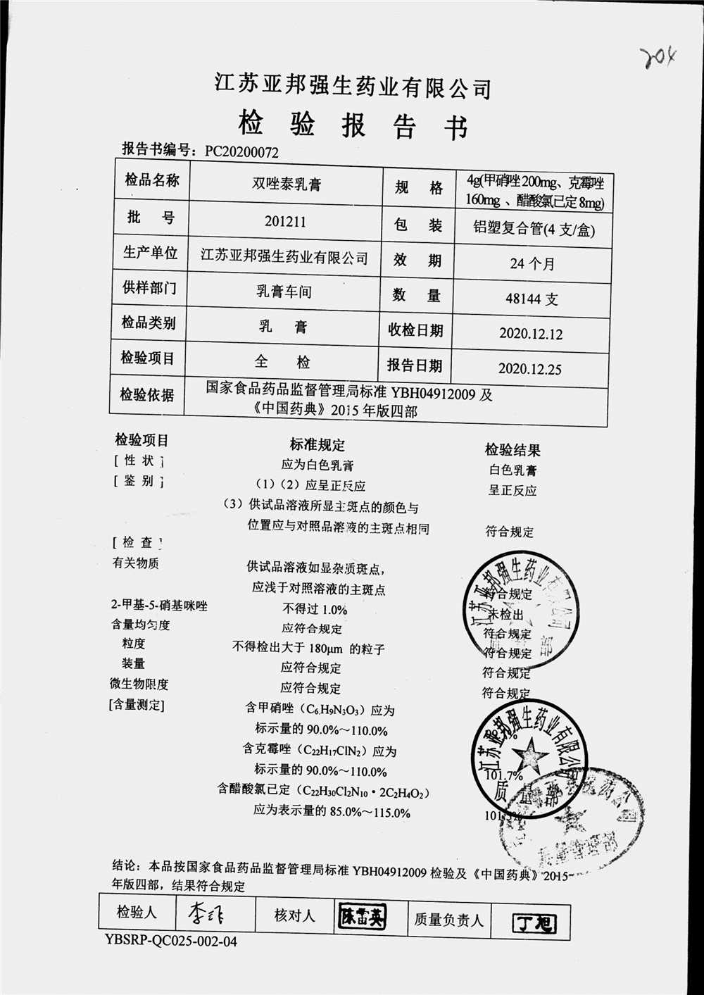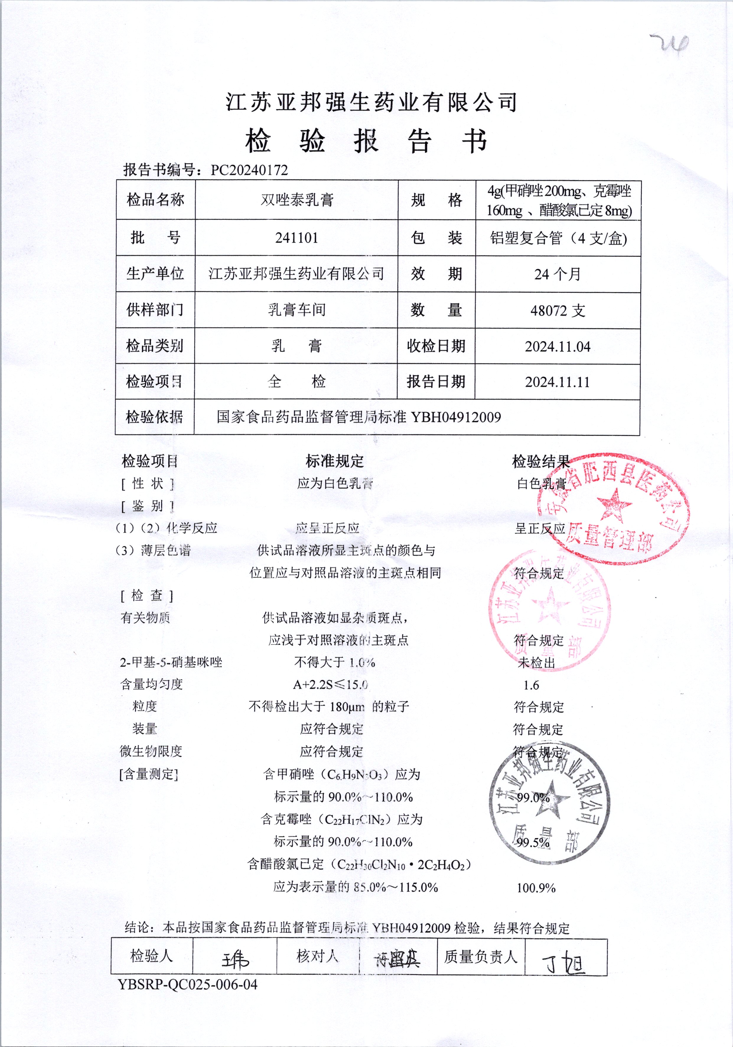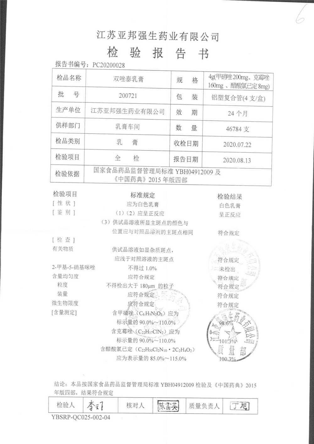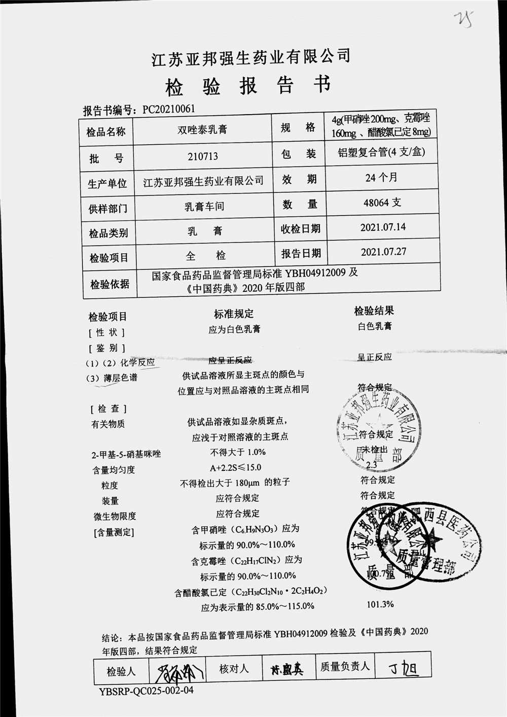 双唑泰软膏 | 4g | 200721 | 查看详情 |