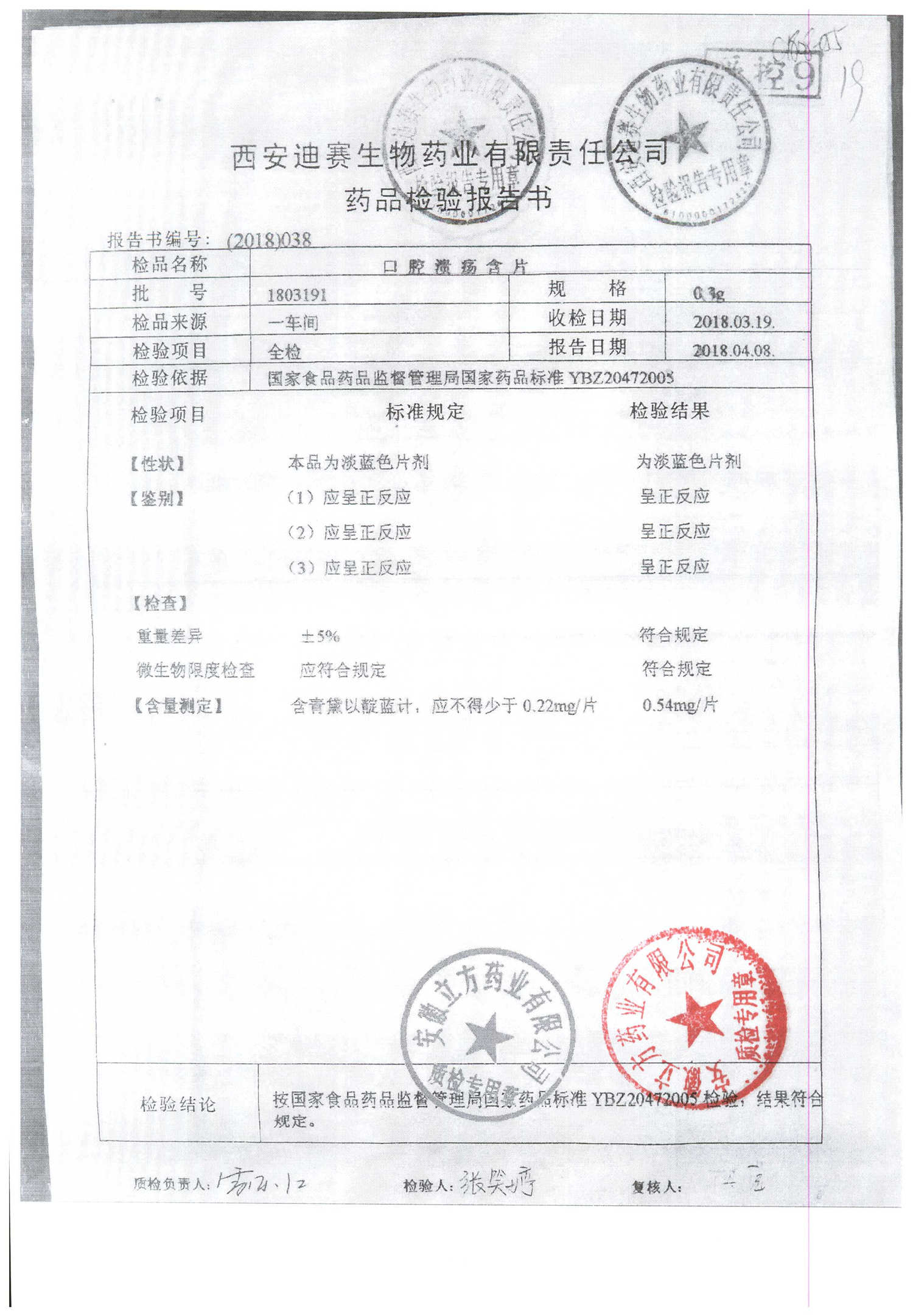 口腔溃疡含片 | 0.3g | 1803191 | 查看详情 |
