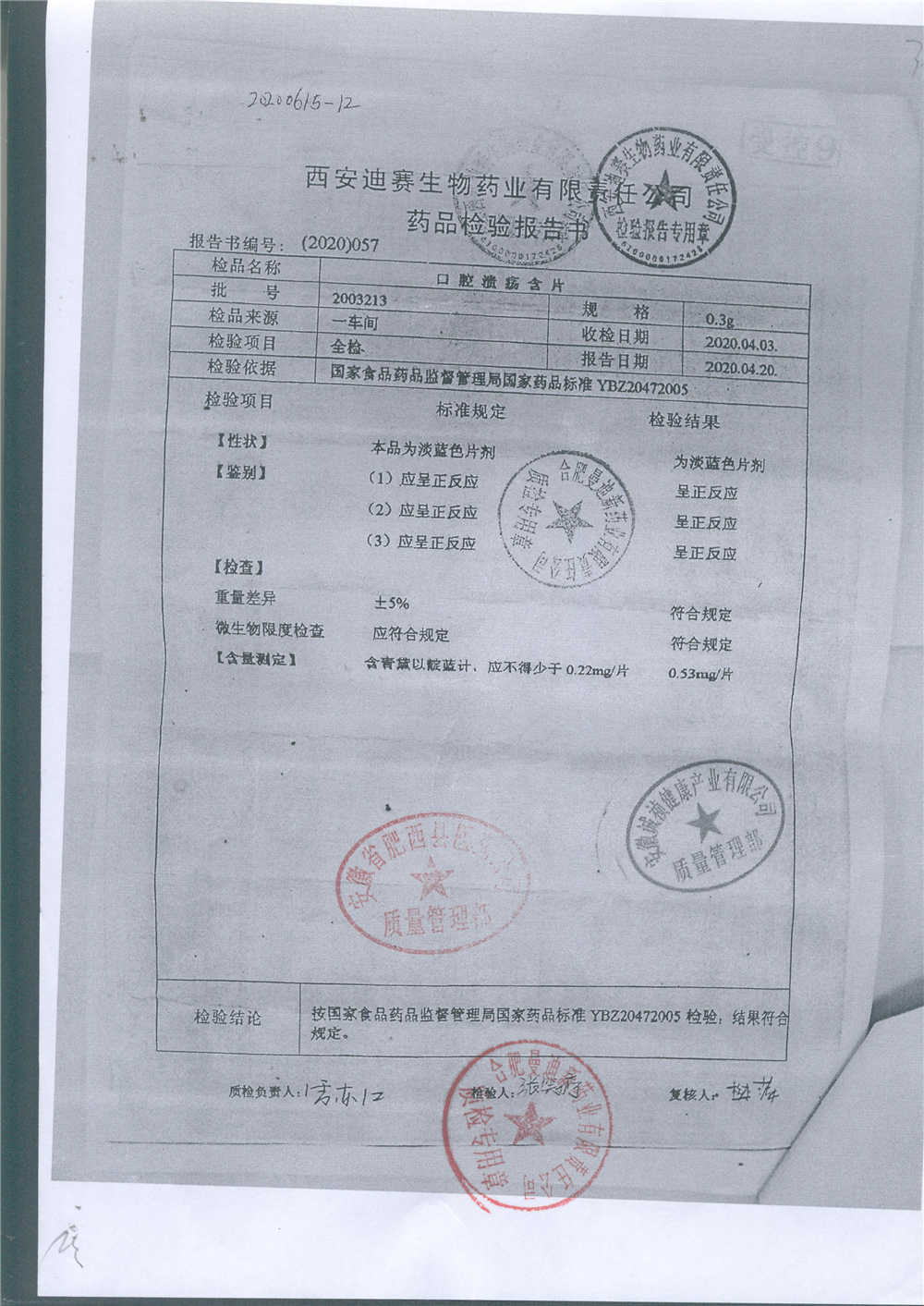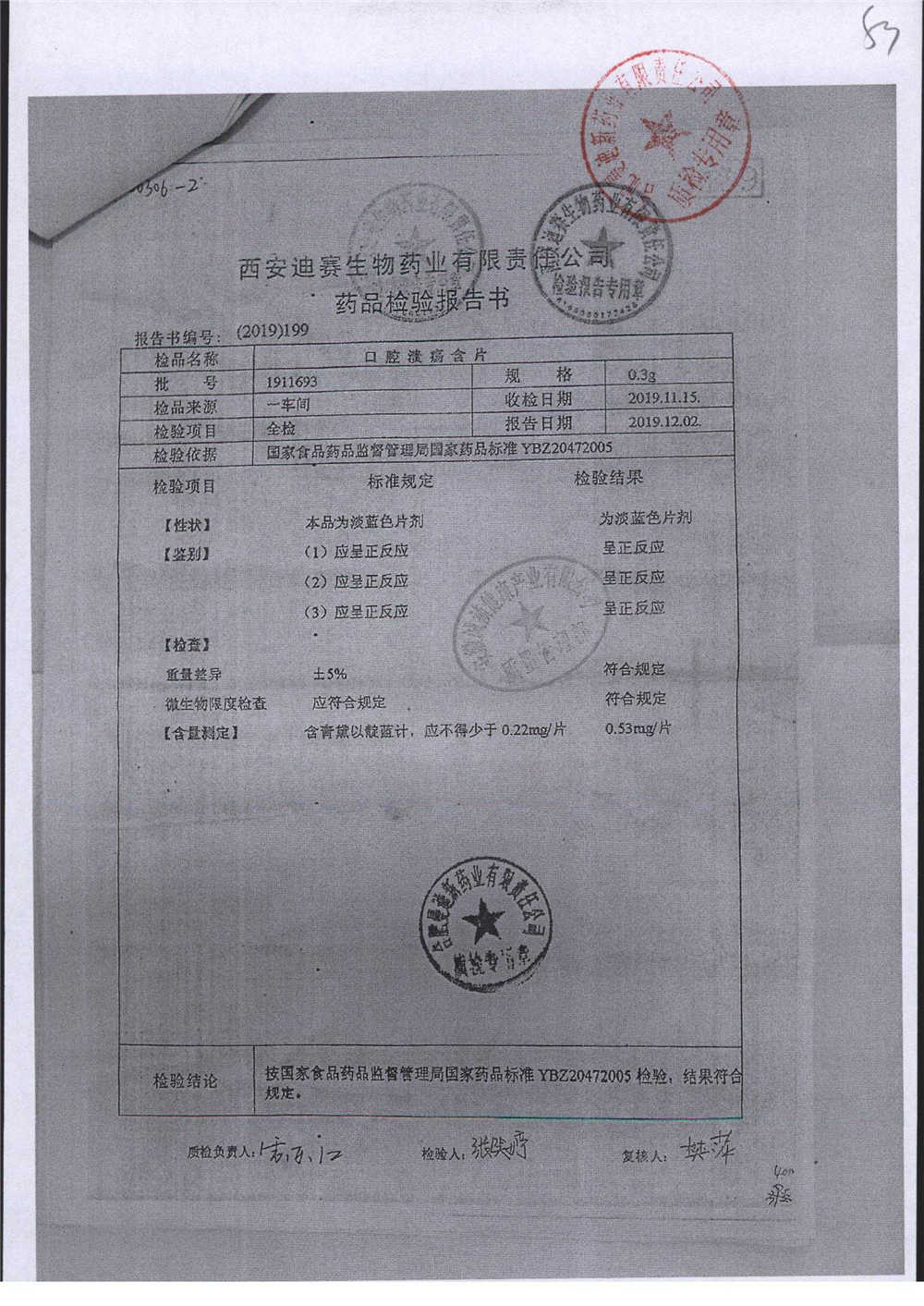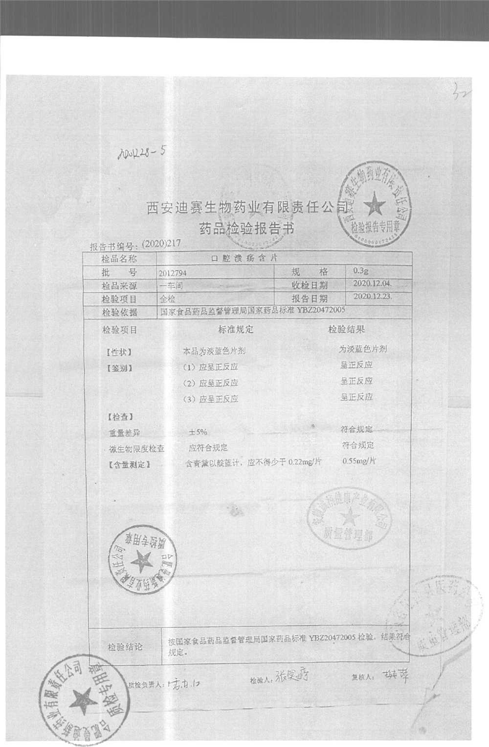 口腔溃疡含片 | 0.3g | 2012806 | 查看详情 |