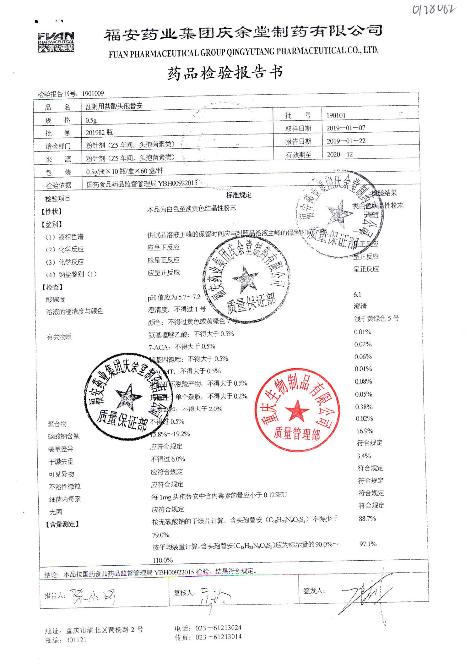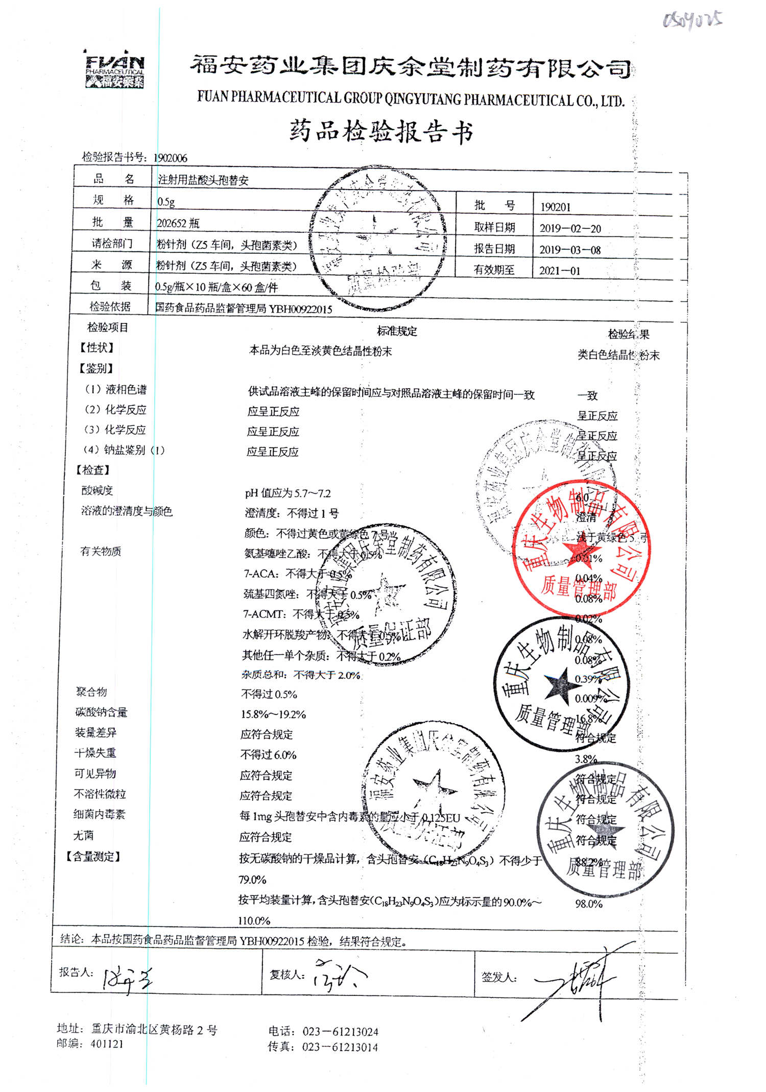 注射用盐酸头孢替安 | 0.5g | 190201 | 查看详情 |