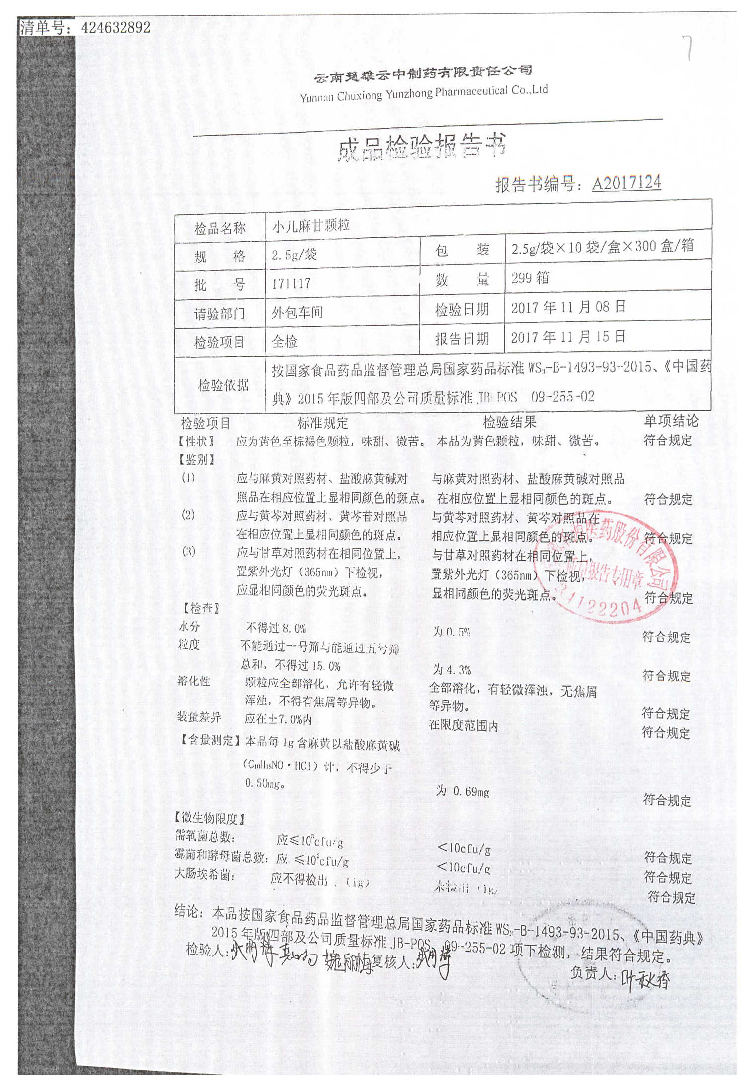 小儿麻甘颗粒 | 2.5g*10袋 | 171117 | 查看详情 |
