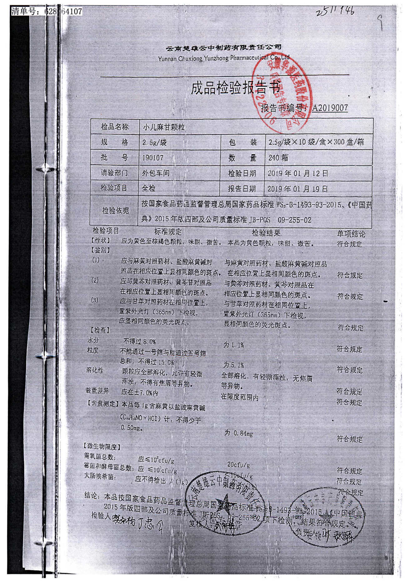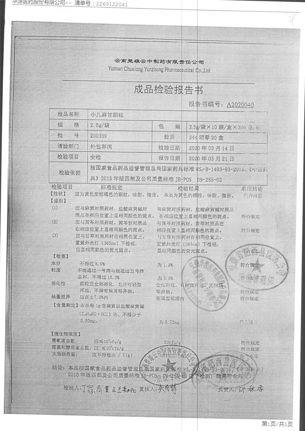 小儿麻甘颗粒 | 2.5g*10袋 | 190107 | 查看详情 |