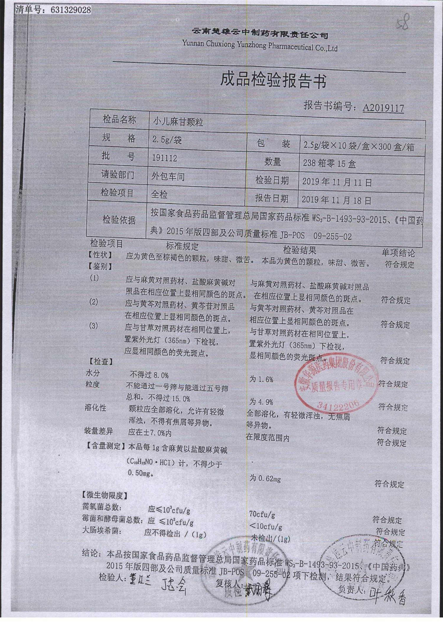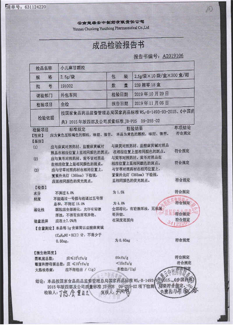 小儿麻甘颗粒 | 2.5g*10袋 | 191112 | 查看详情 |