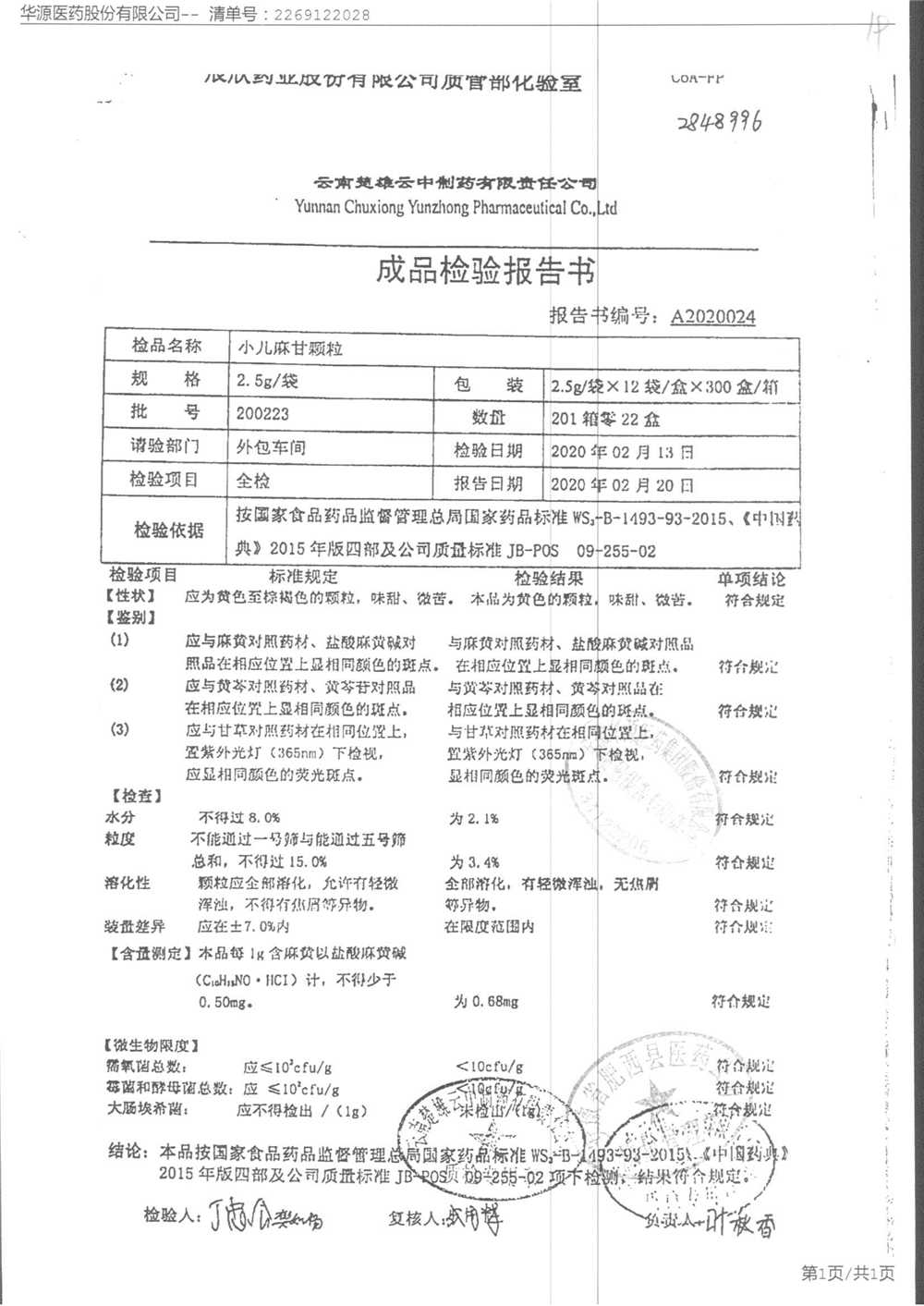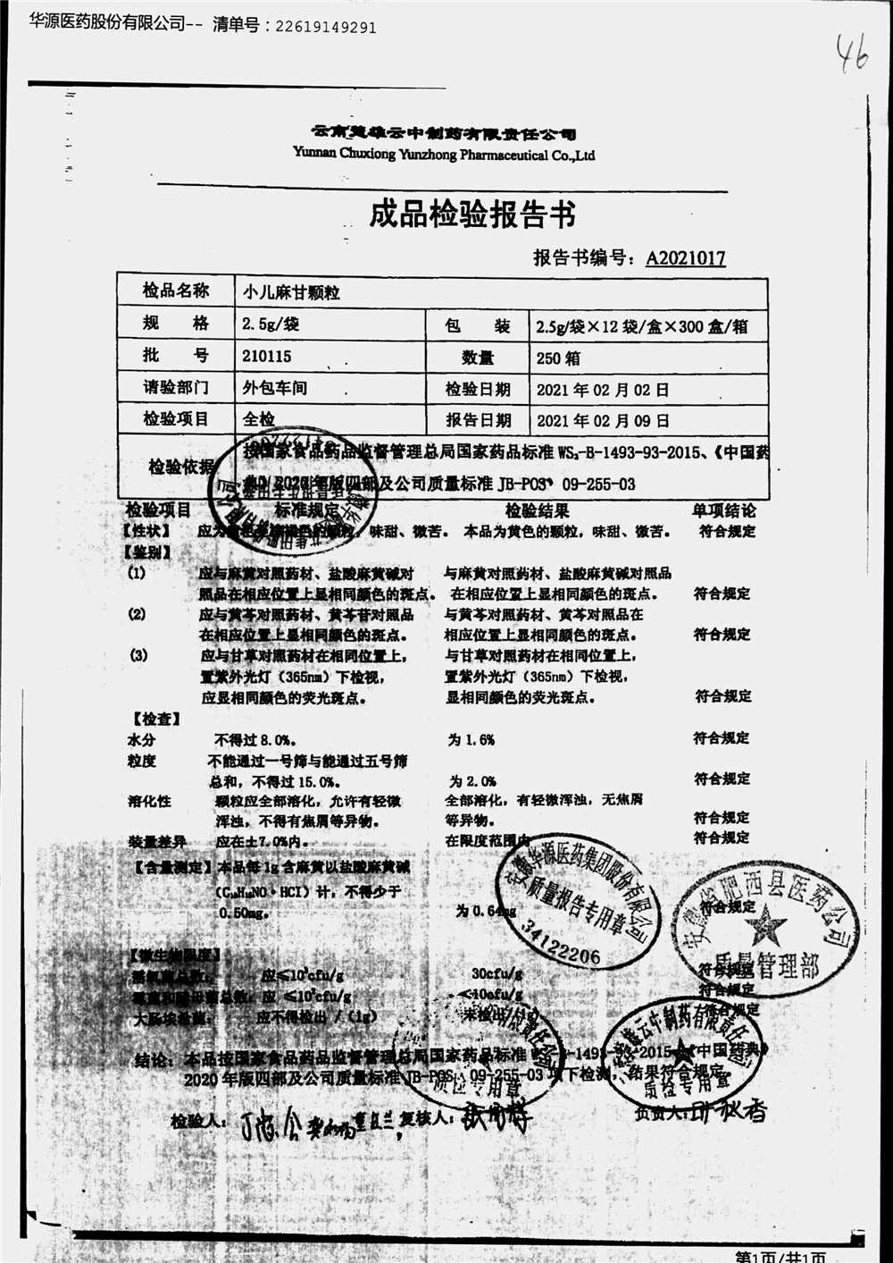 小儿麻甘颗粒 | 2.5g*10袋 | 210115 | 查看详情 |