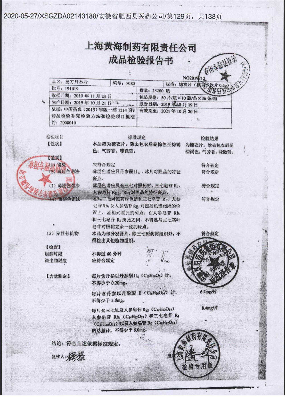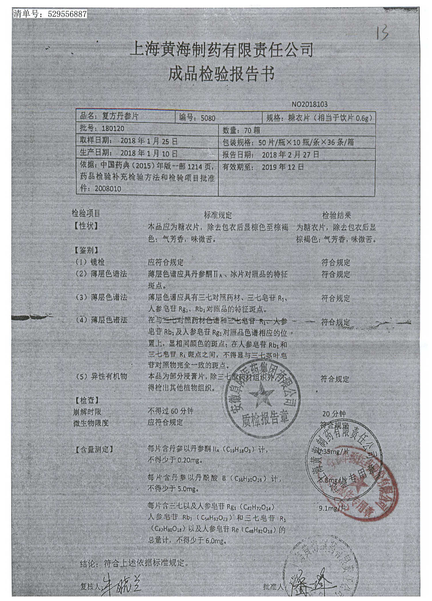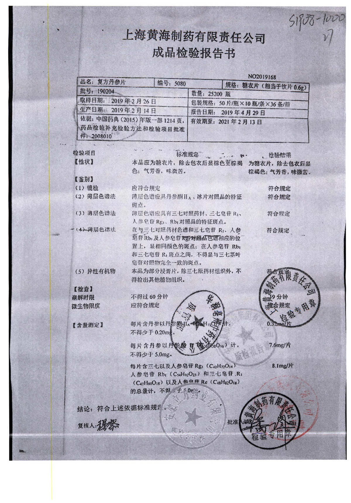 复方丹参片 | 50片 | 210315 | 查看详情 |