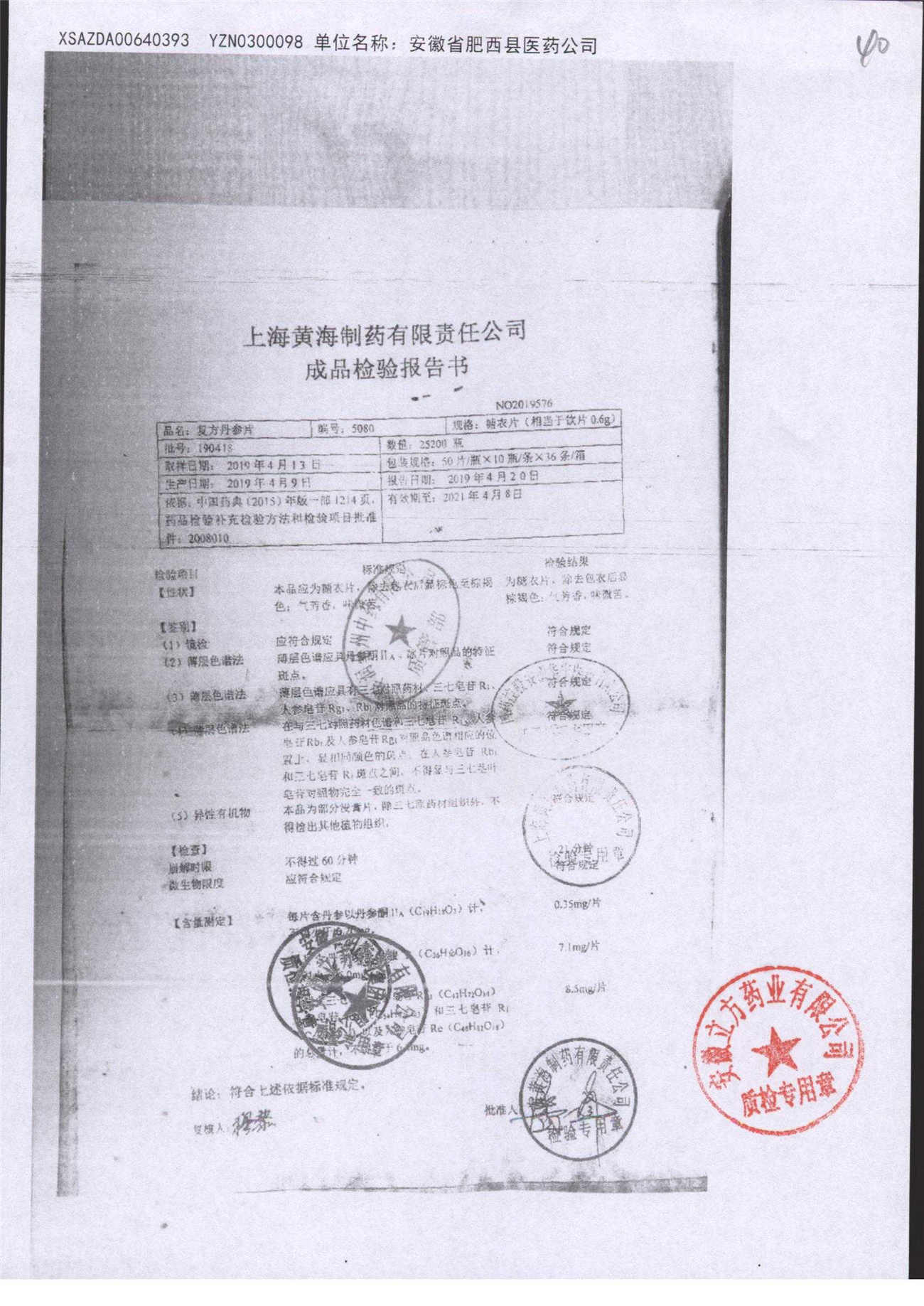 复方丹参片 | 50片 | 190418 | 查看详情 |
