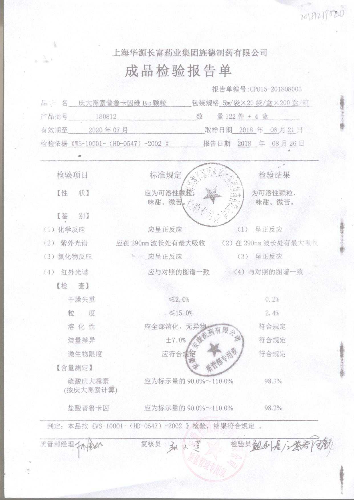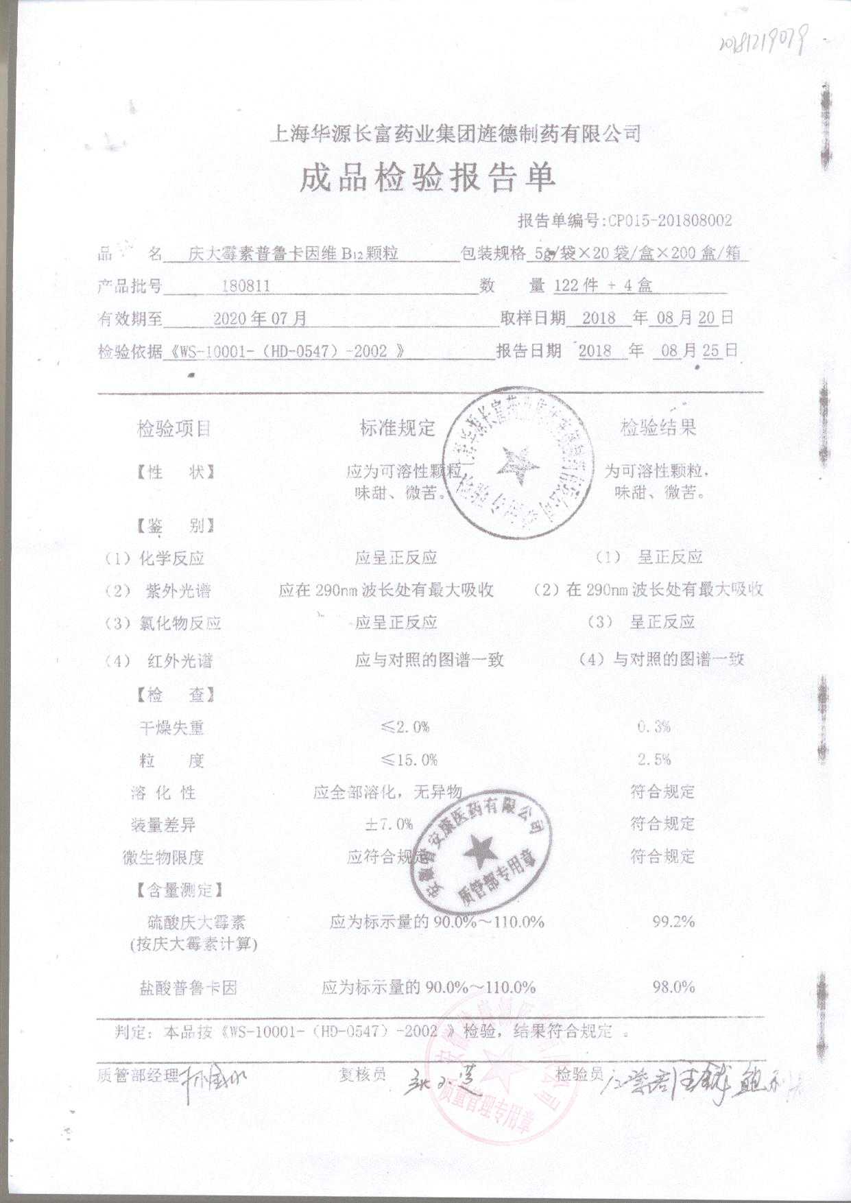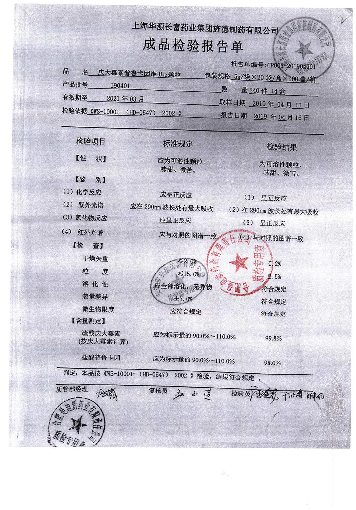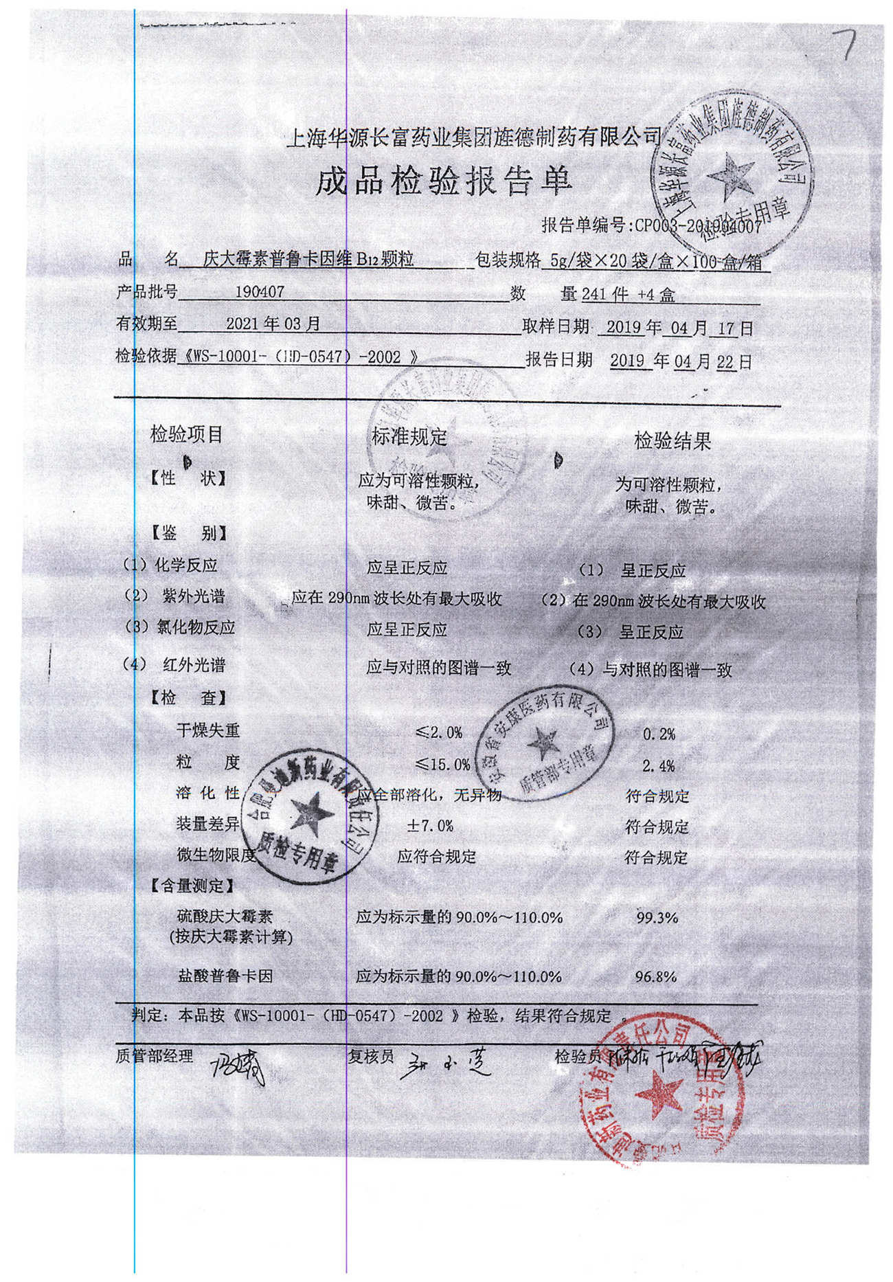 庆大霉素普鲁卡因维B12颗粒 | 5g*20袋 | 190401 | 查看详情 |