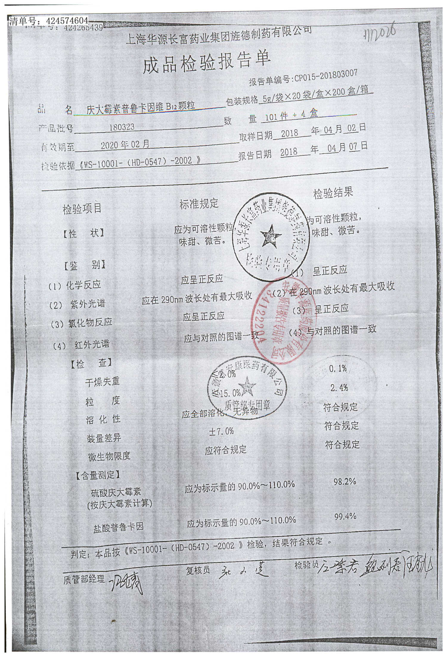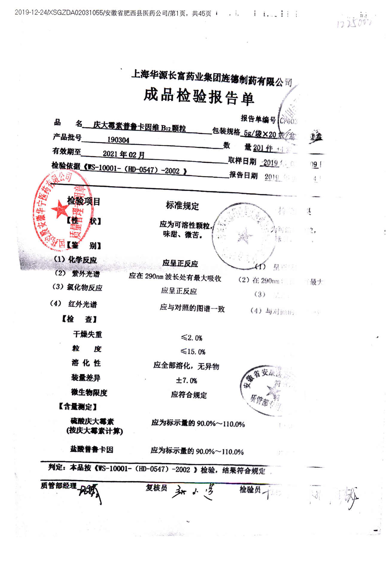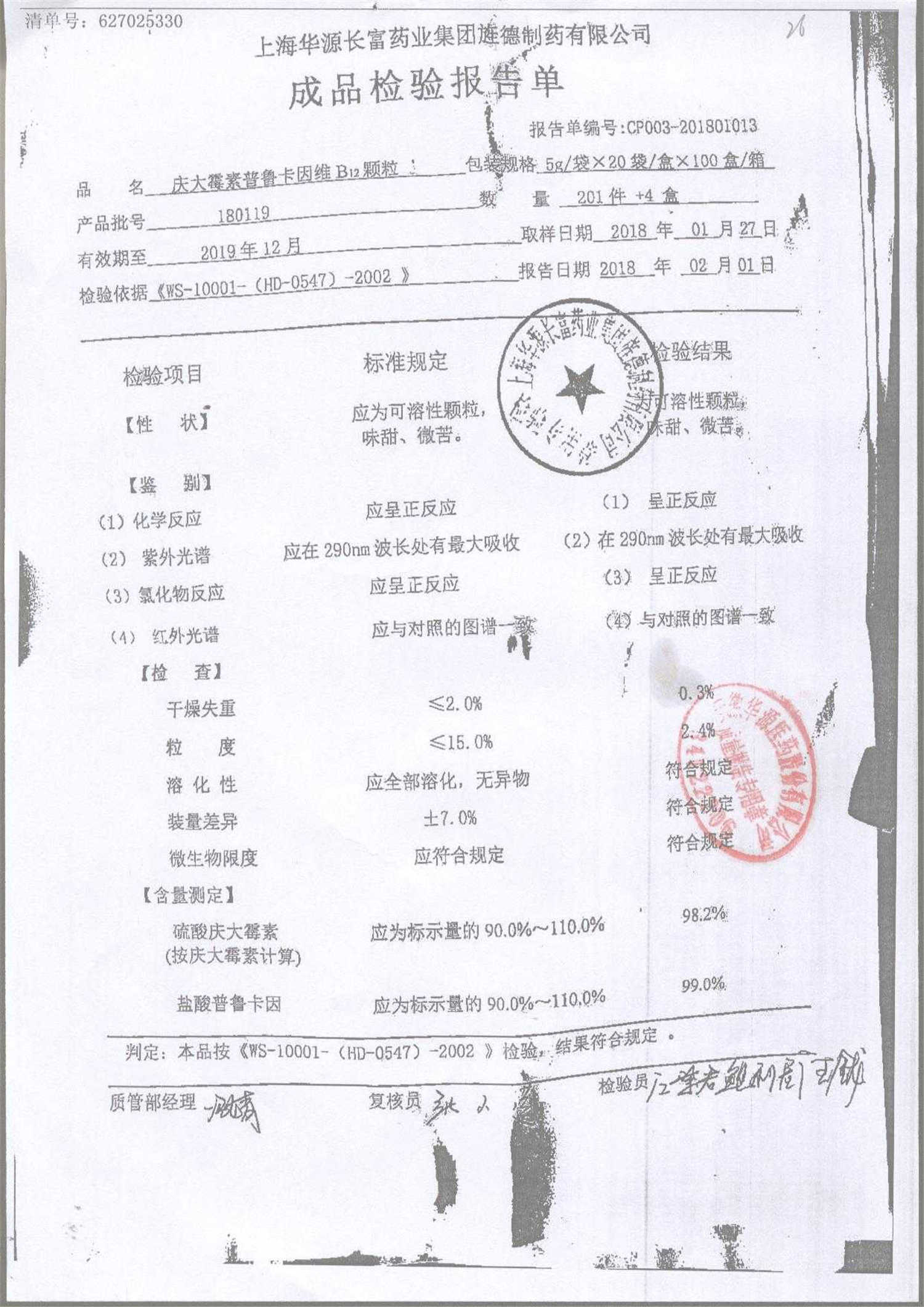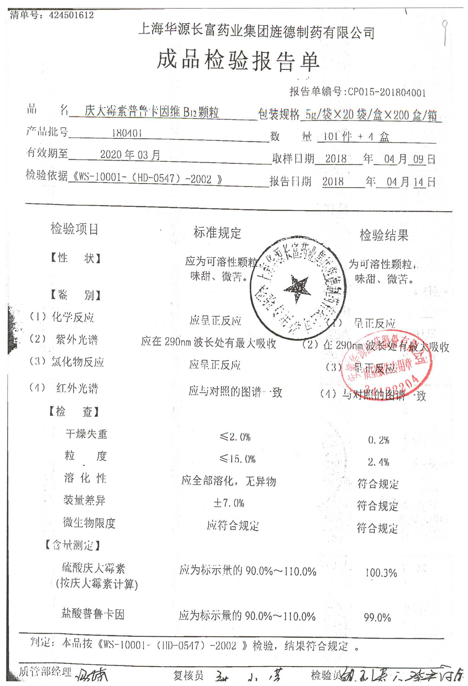庆大霉素普鲁卡因维B12颗粒 | 5g*20袋 | 190401 | 查看详情 |