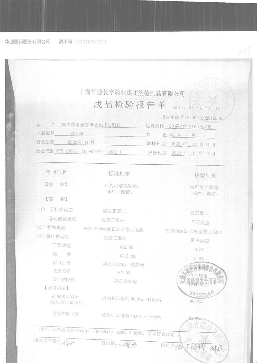 庆大霉素普鲁卡因维B12颗粒 | 5g*20袋 | 211118 | 查看详情 |