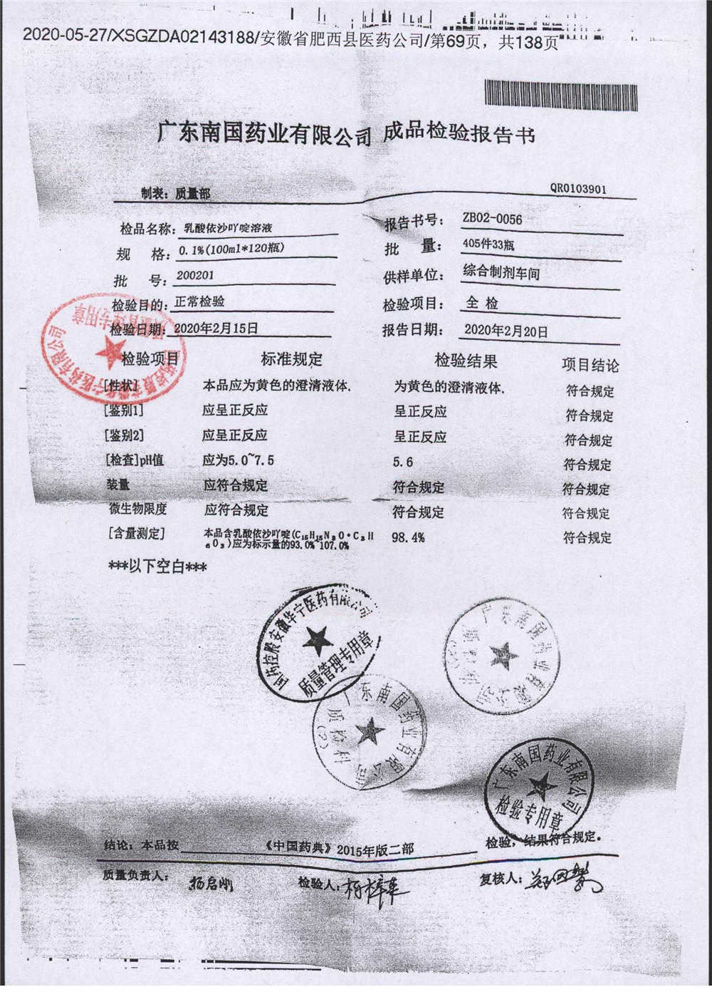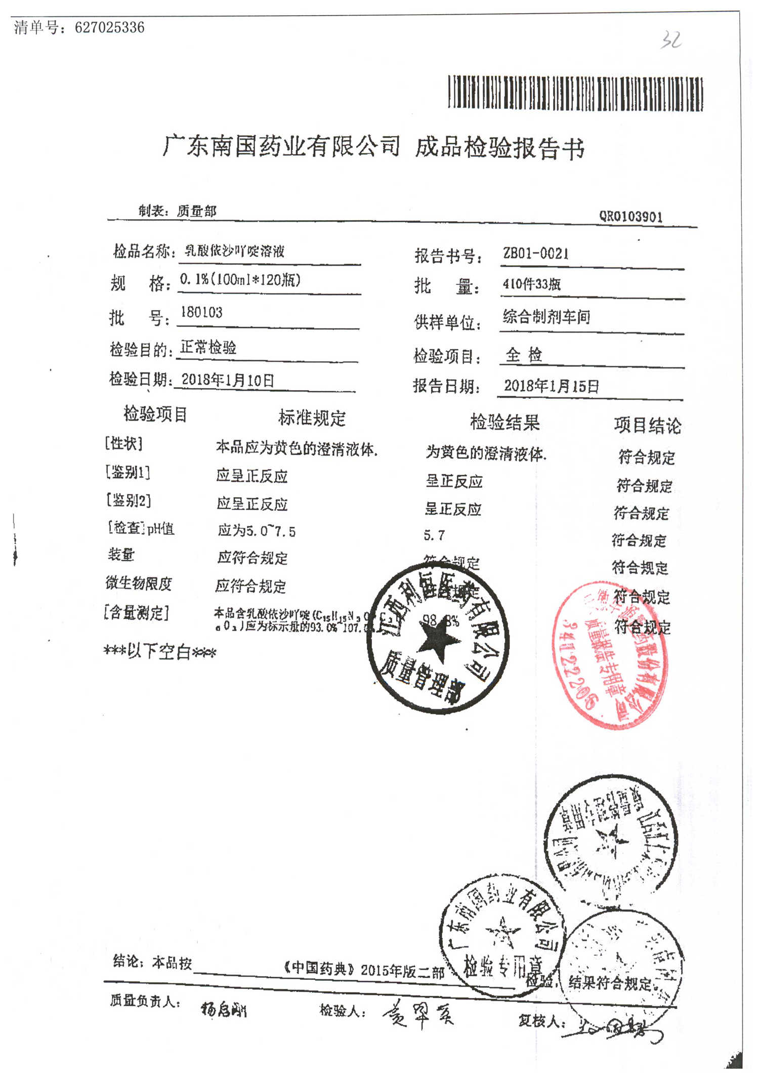 药检报告