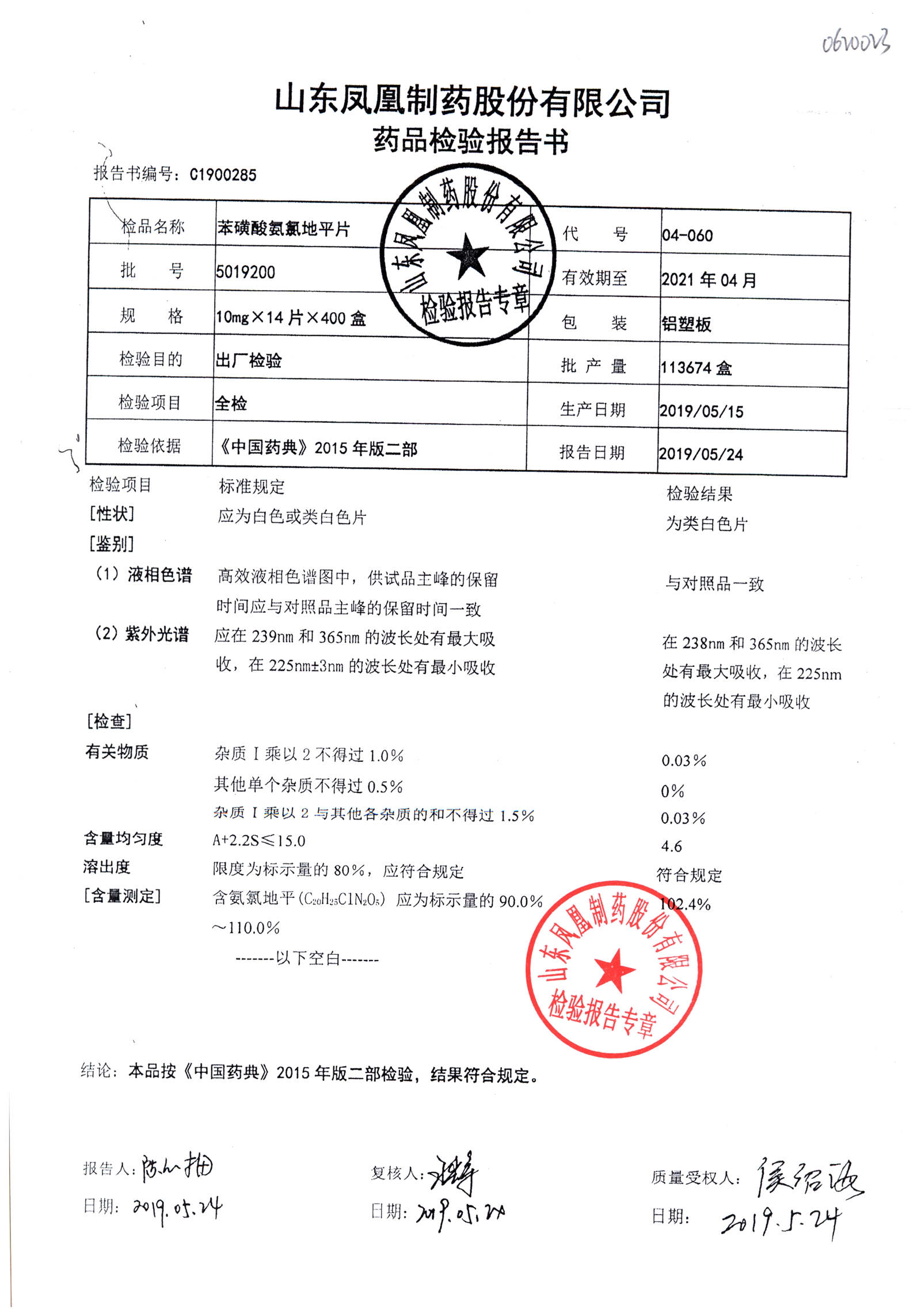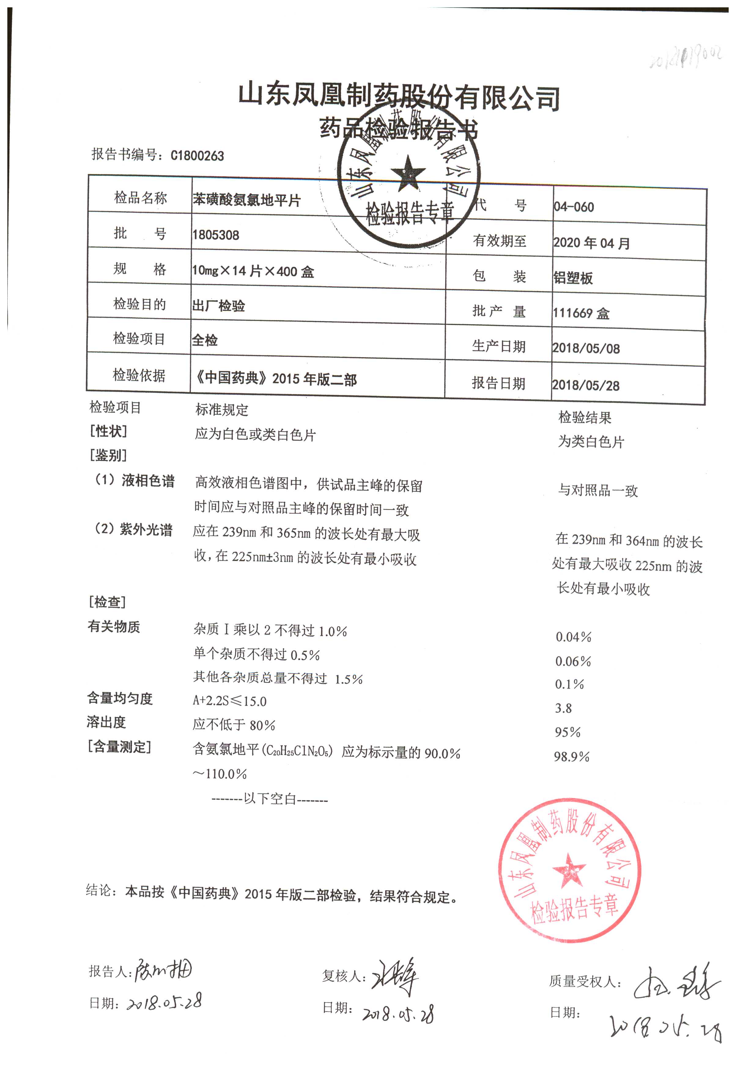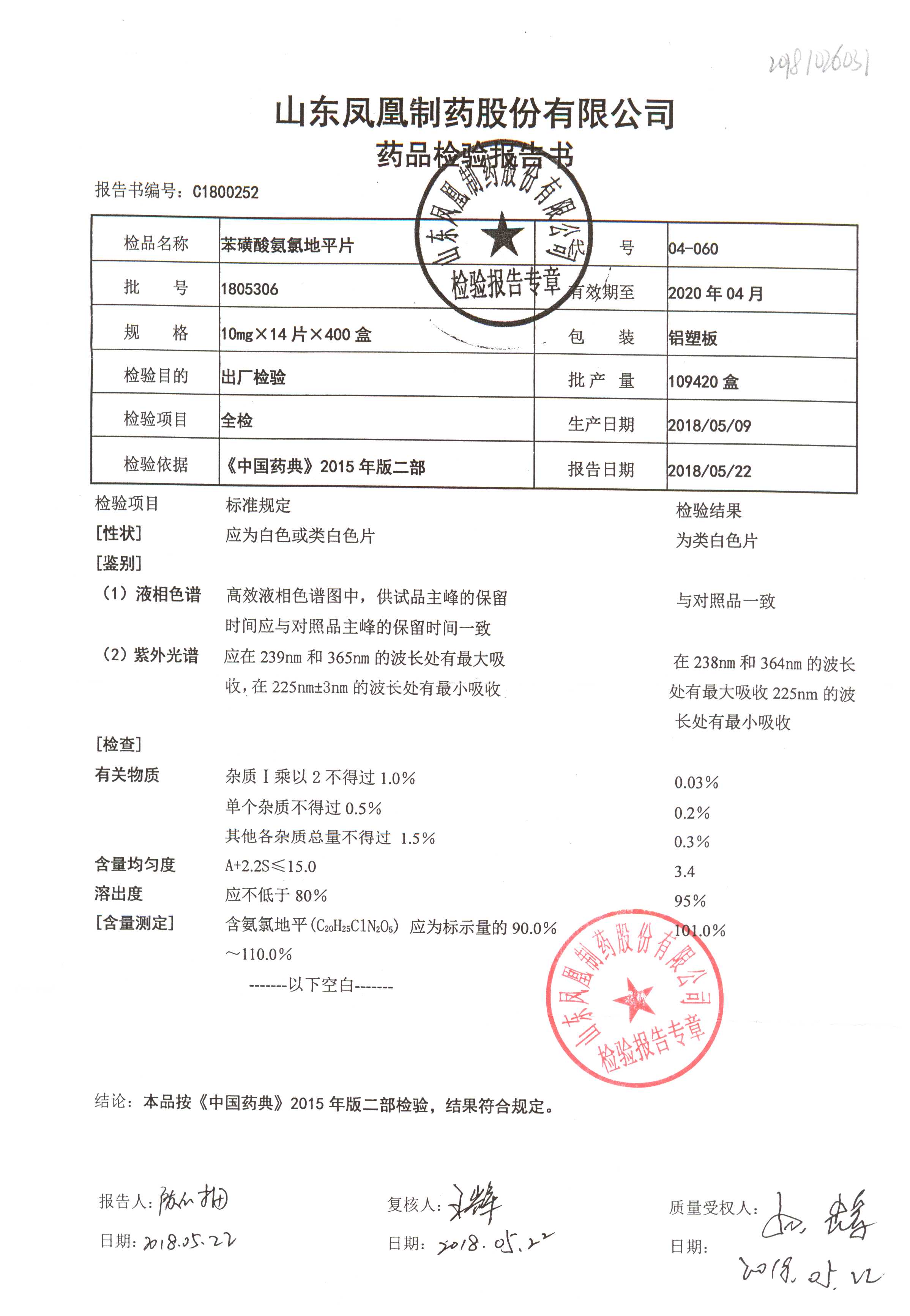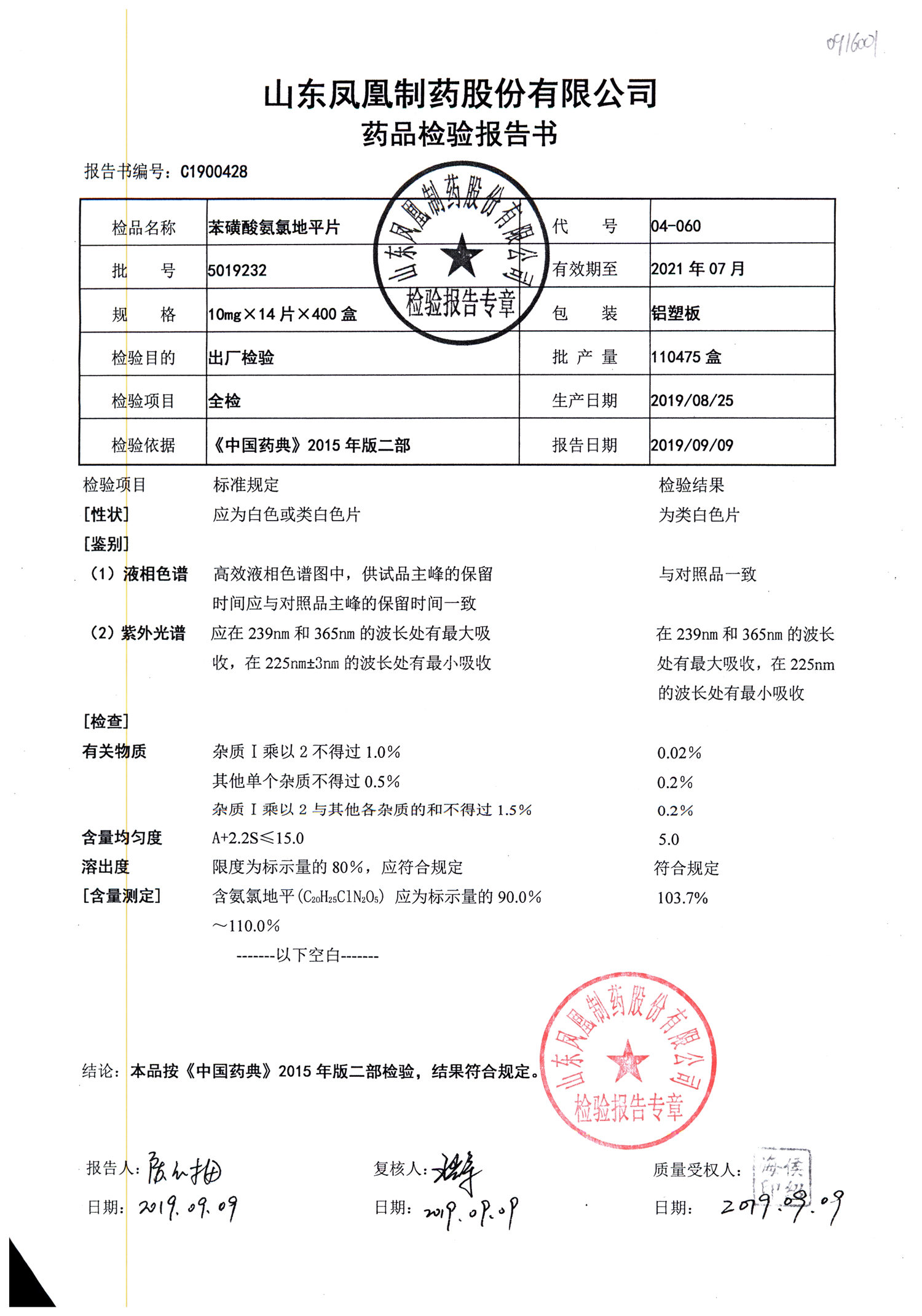 苯磺酸氨氯地平片 | 10mg*14片 | 5019025-2 | 查看详情 |