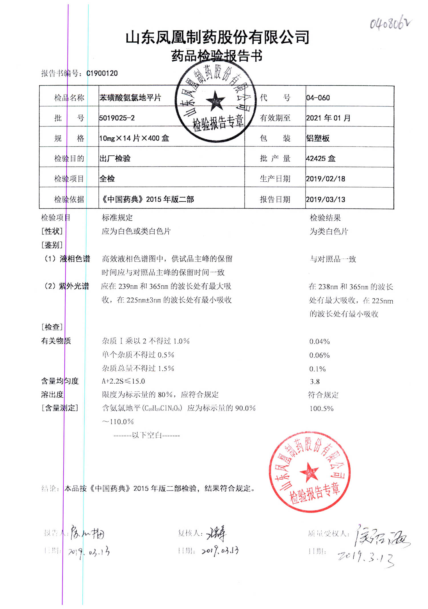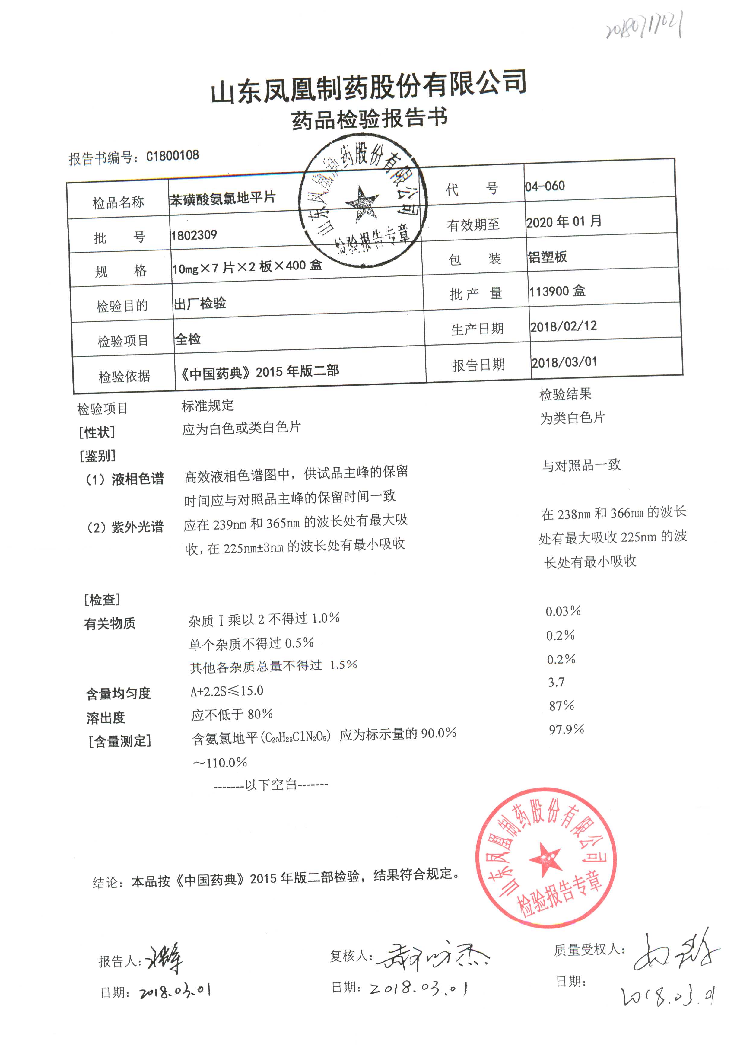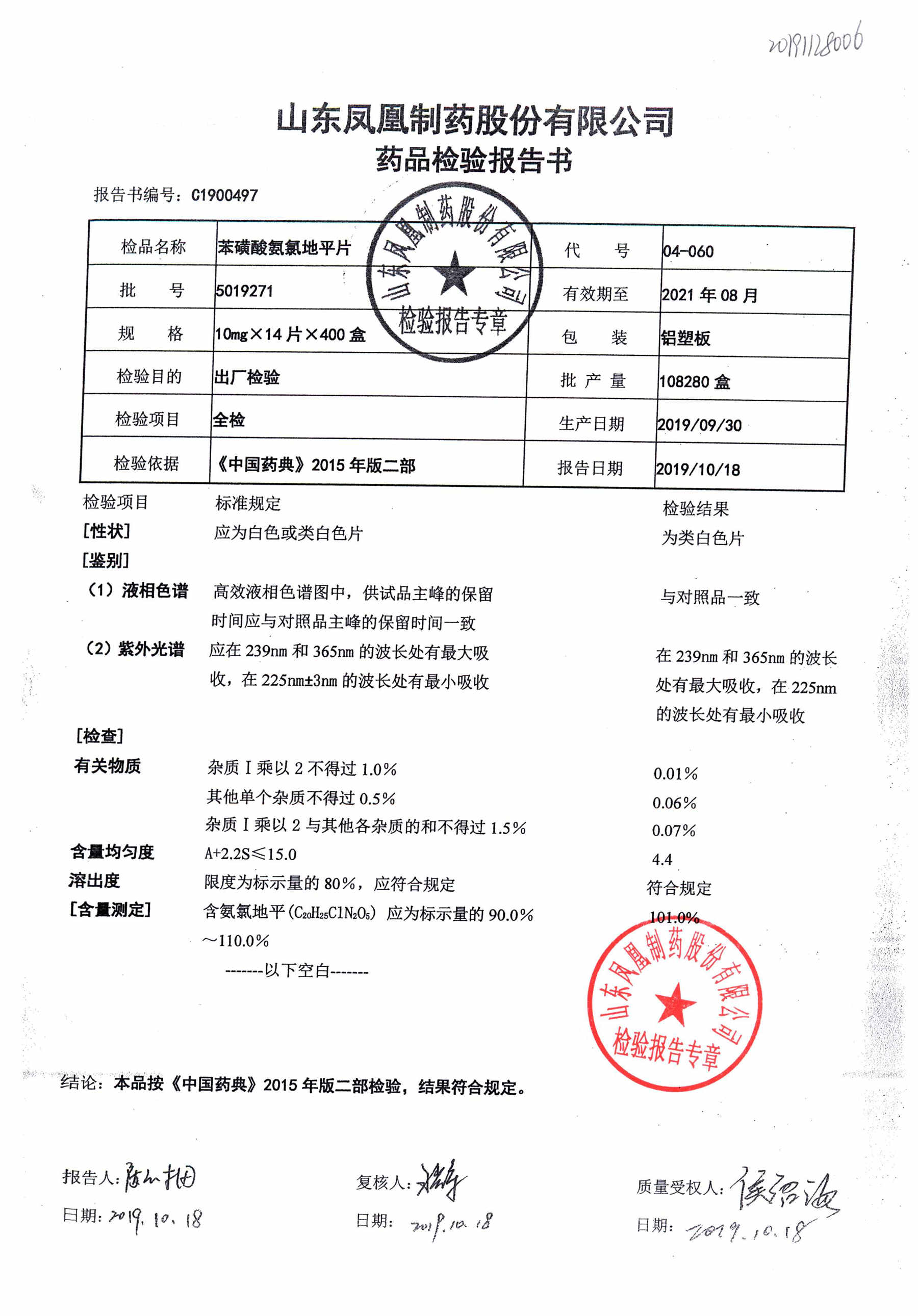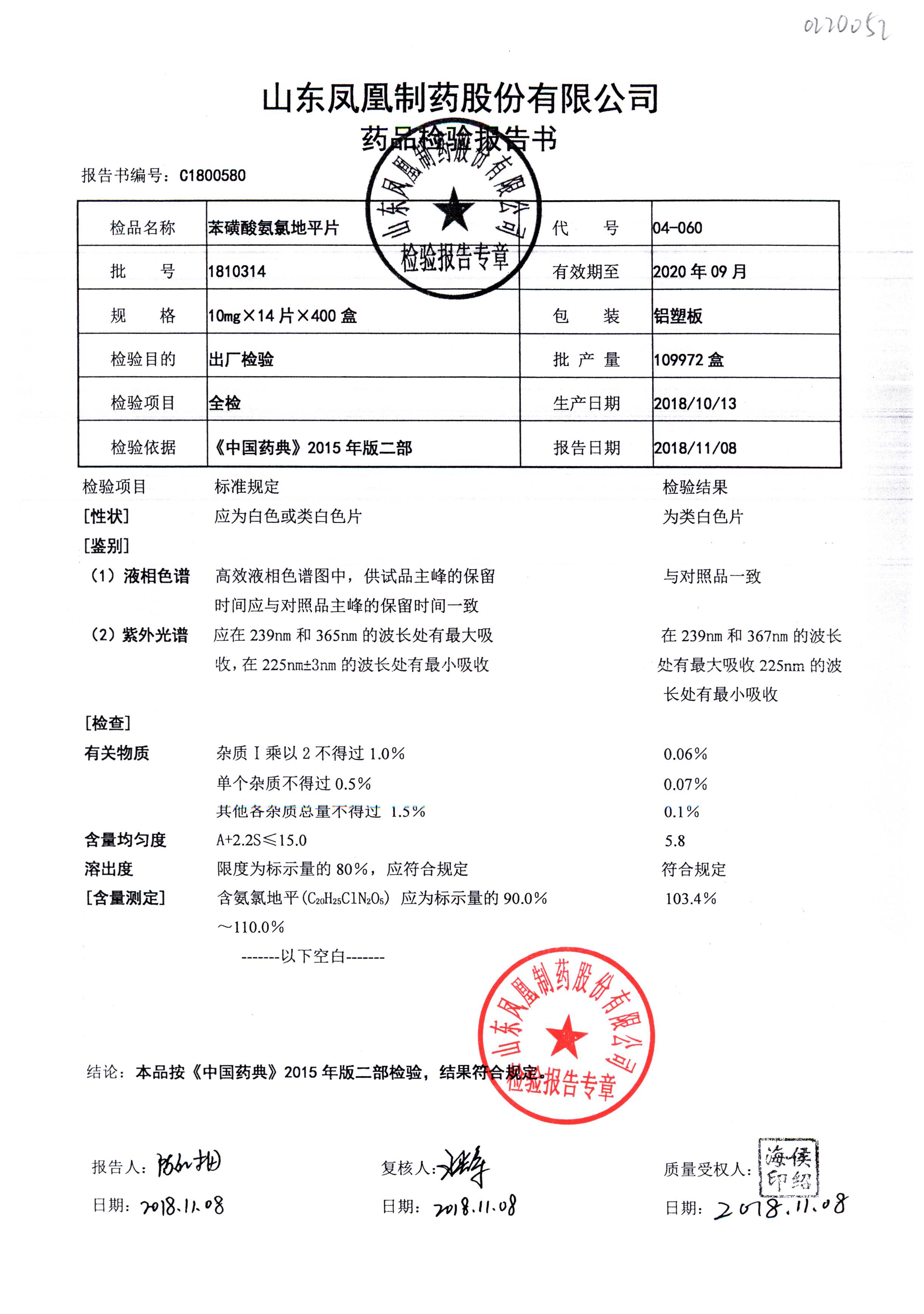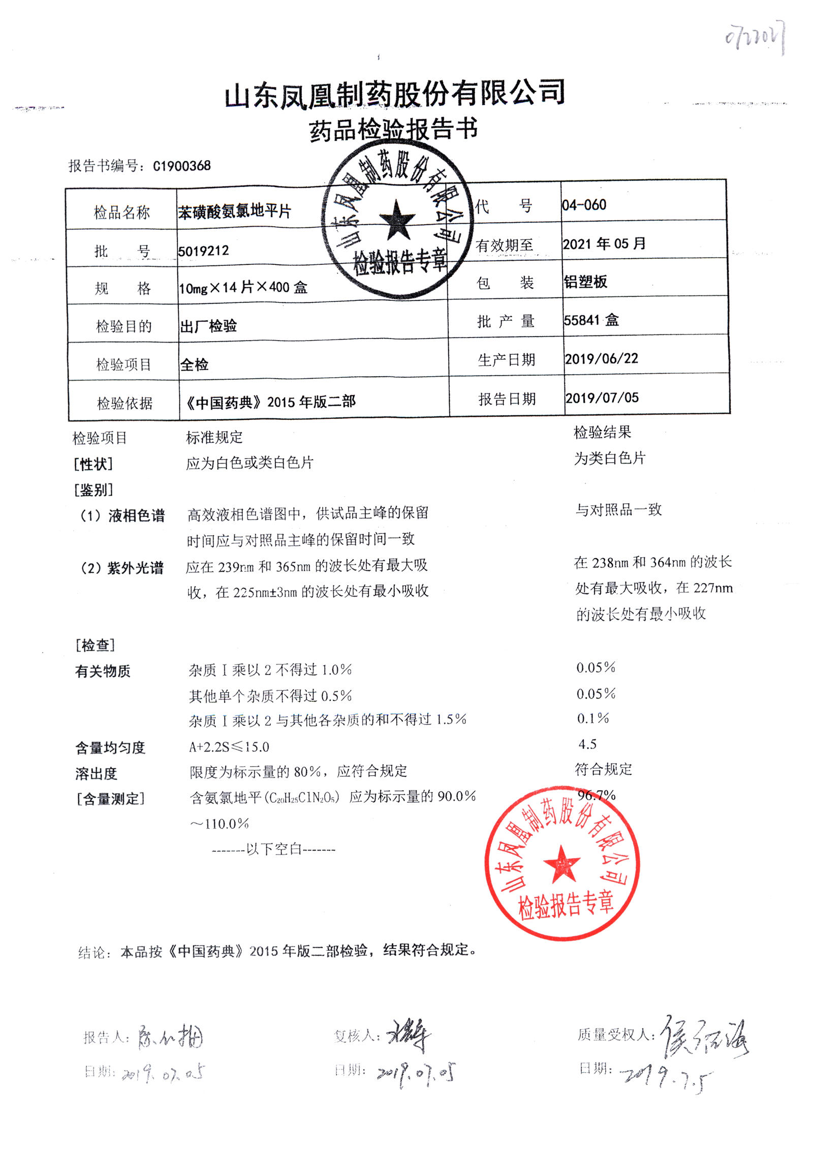 苯磺酸氨氯地平片 | 10mg*14片 | 5019025-2 | 查看详情 |