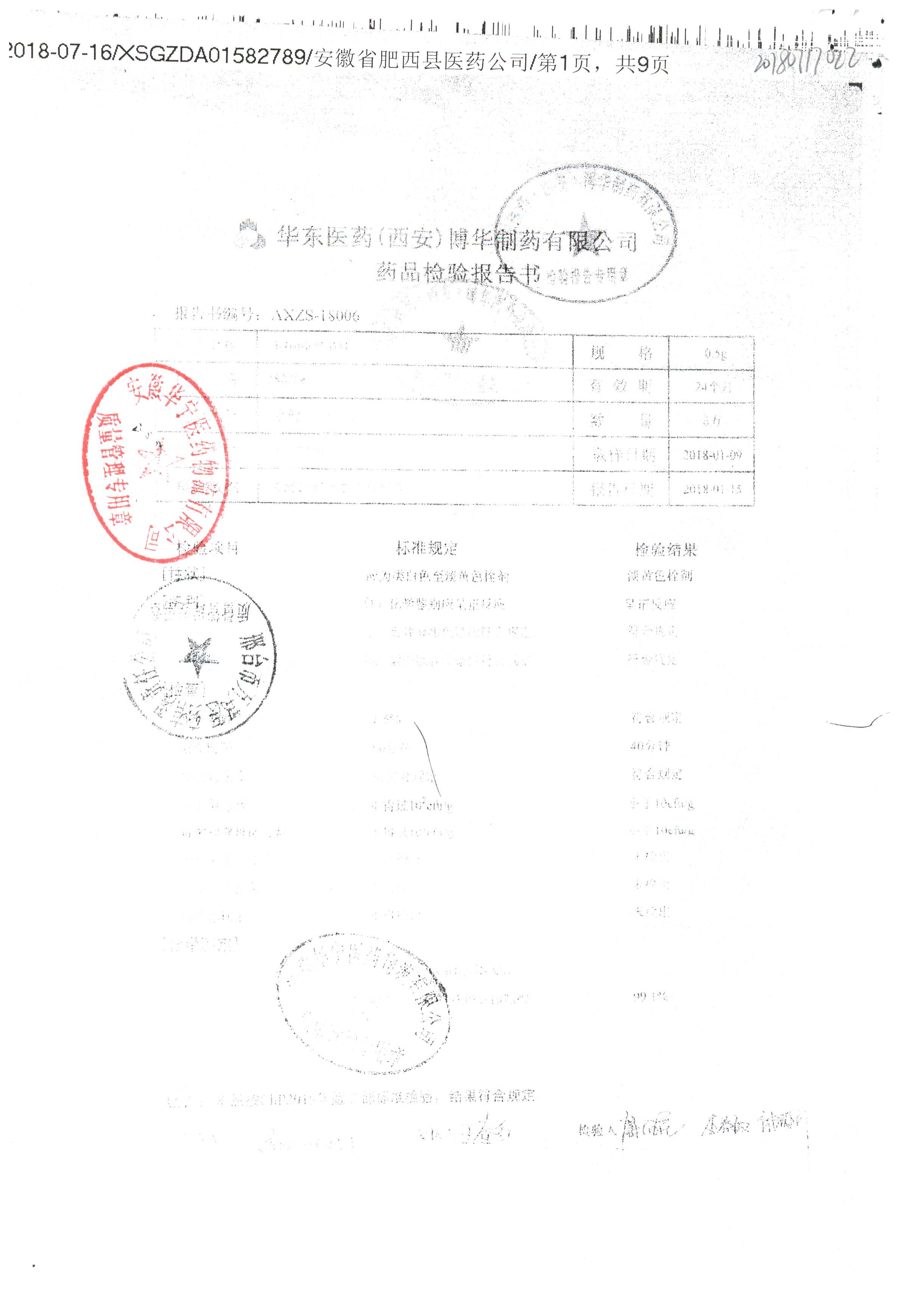 药检报告