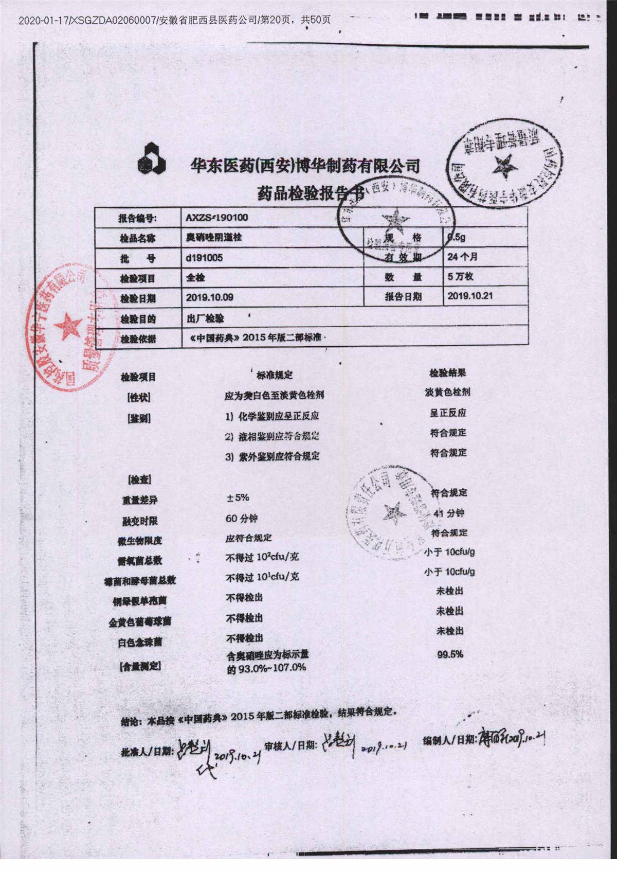 奥硝唑阴道栓