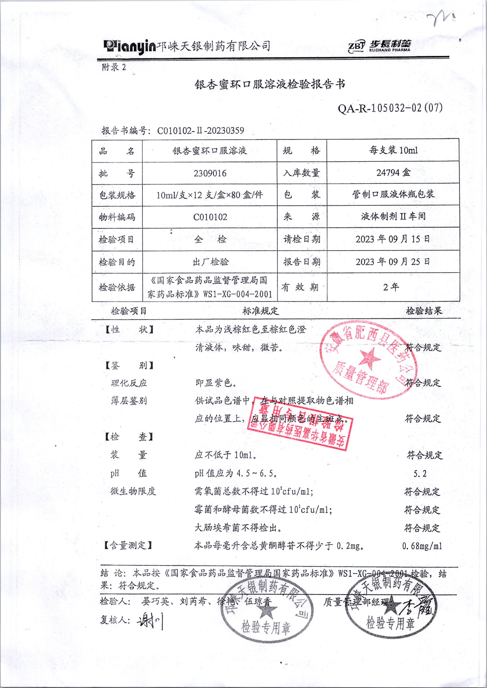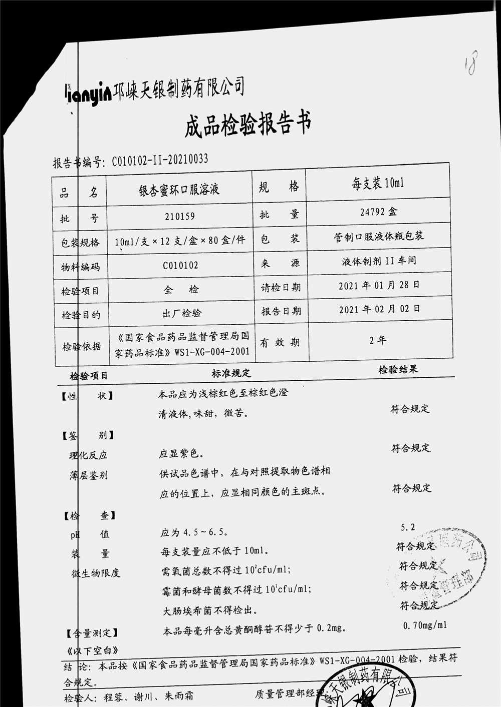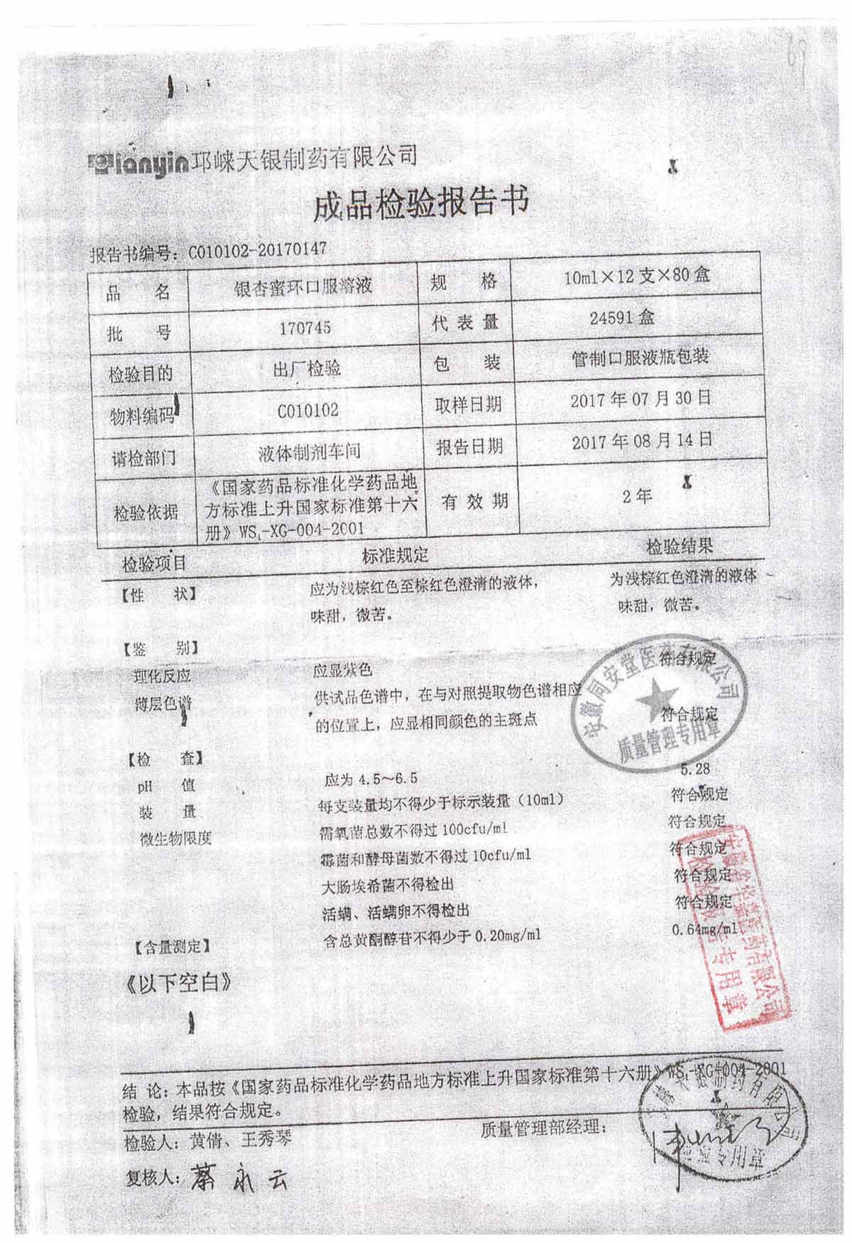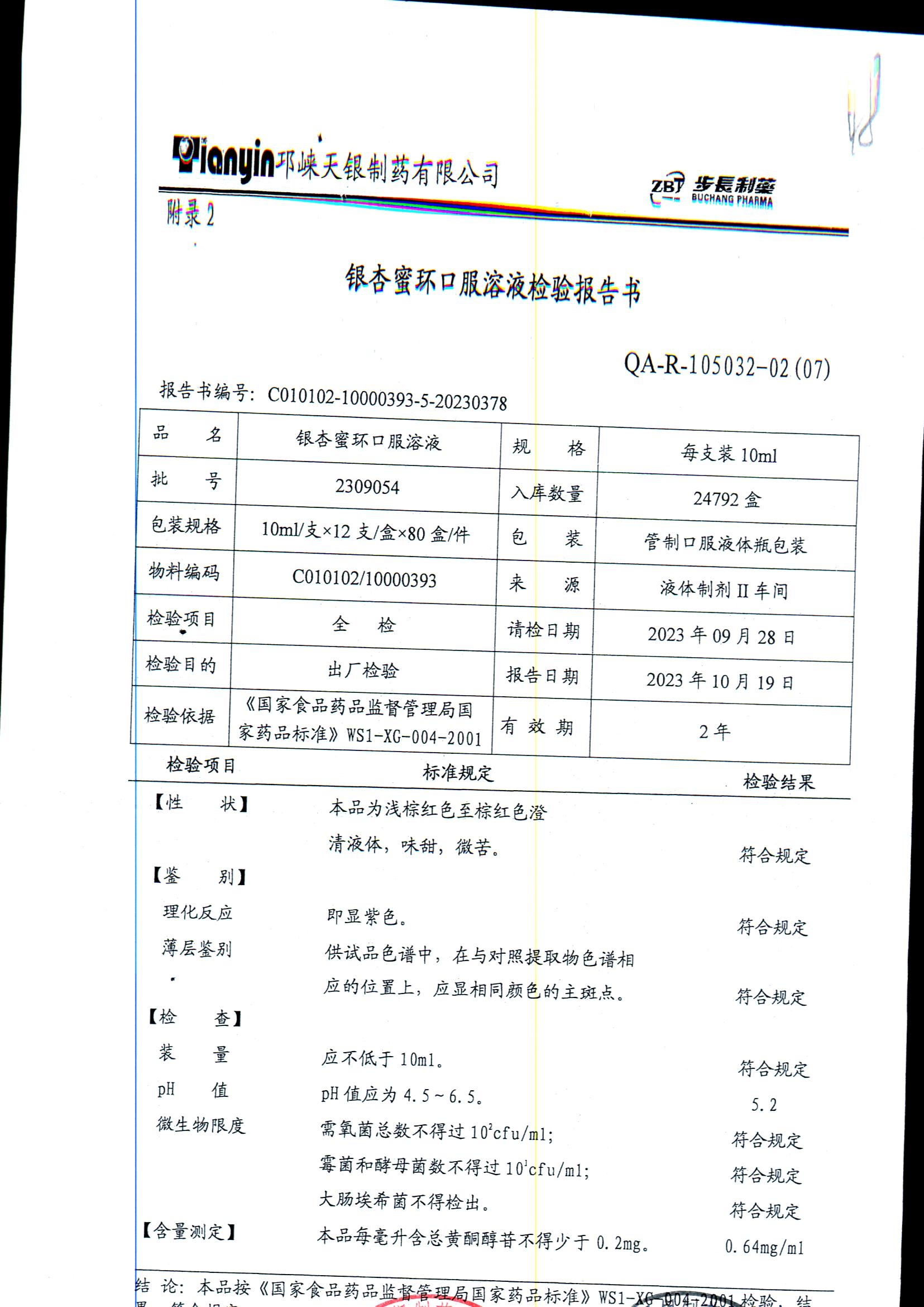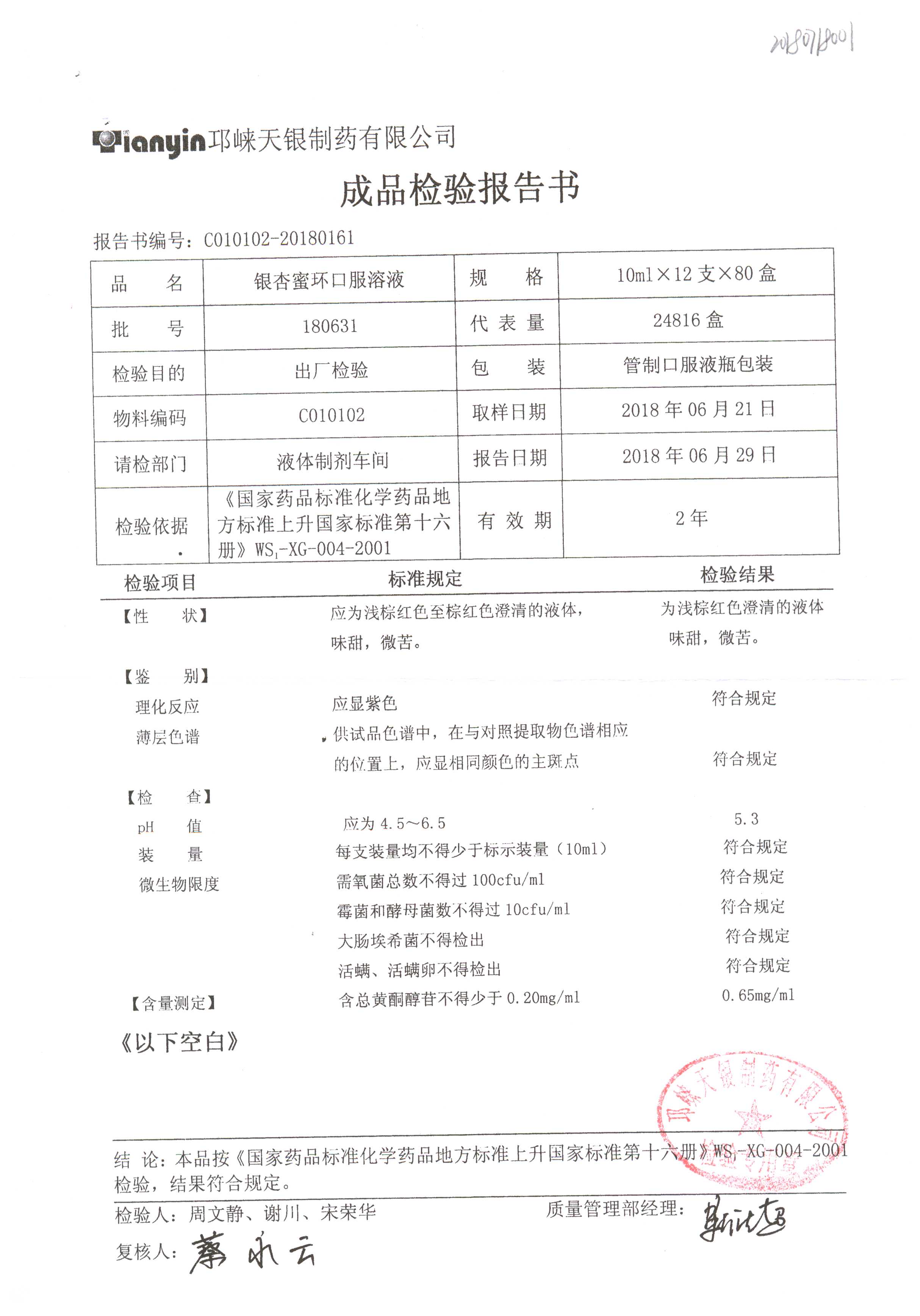 银杏蜜环口服溶液 | 10ml*12支 | 180631(3/4) | 查看详情 |