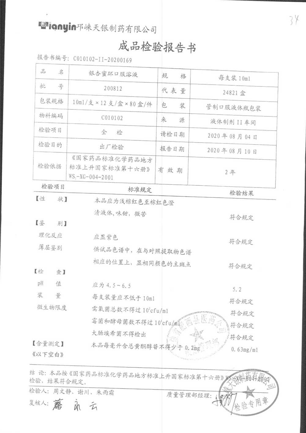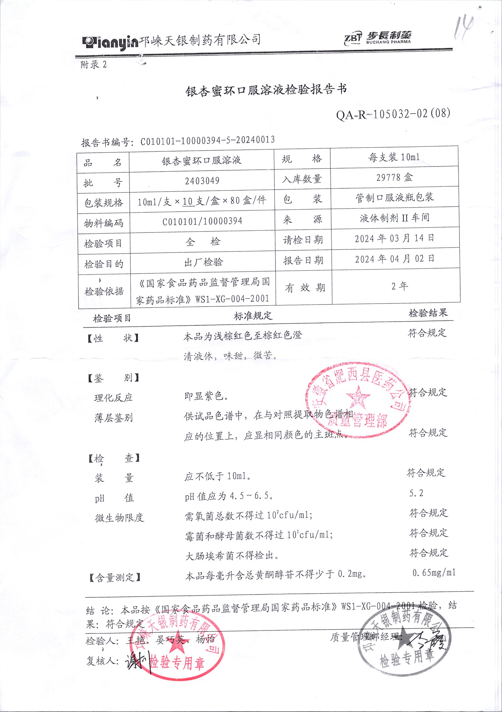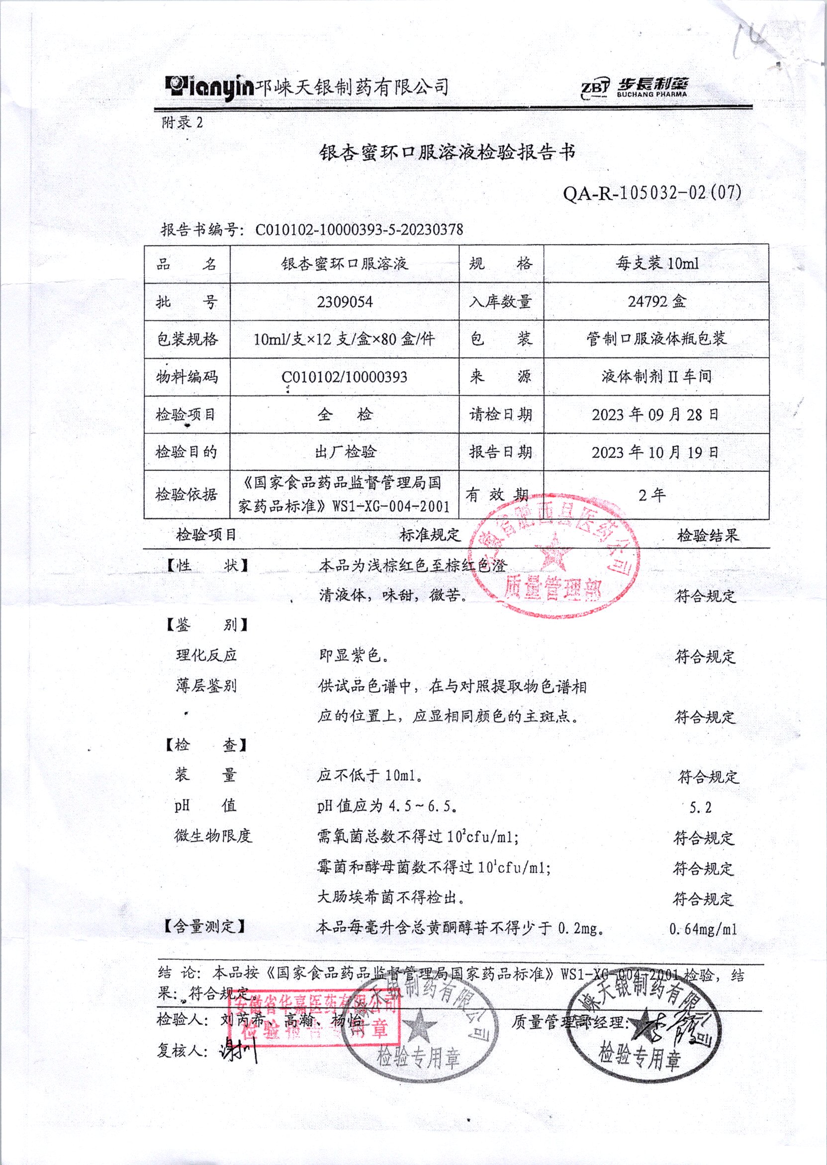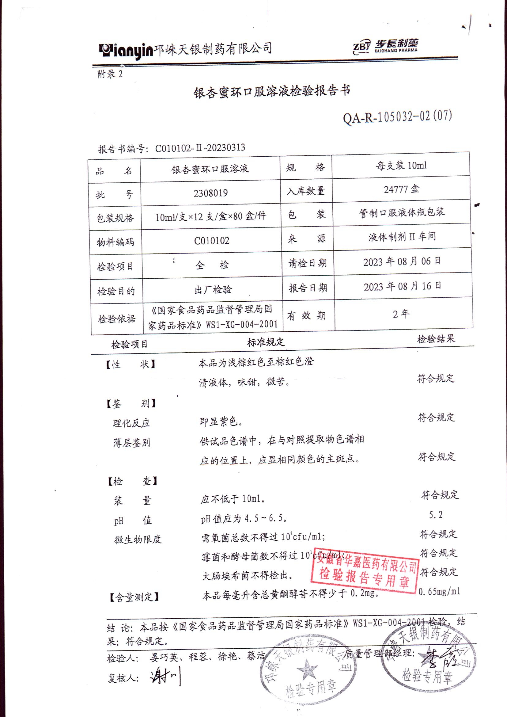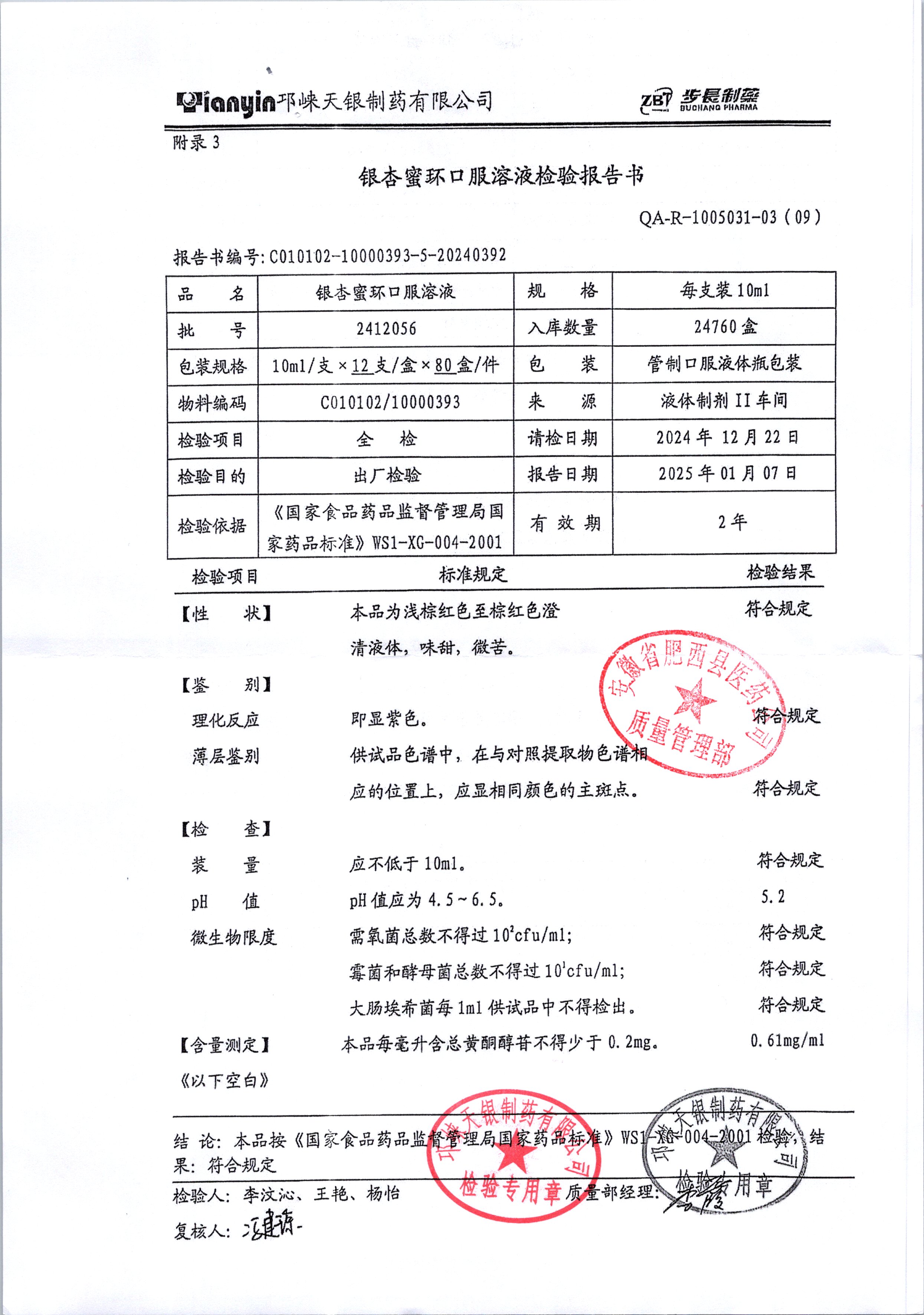 银杏蜜环口服溶液 | 10ml*12支 | 180631(3/4) | 查看详情 |