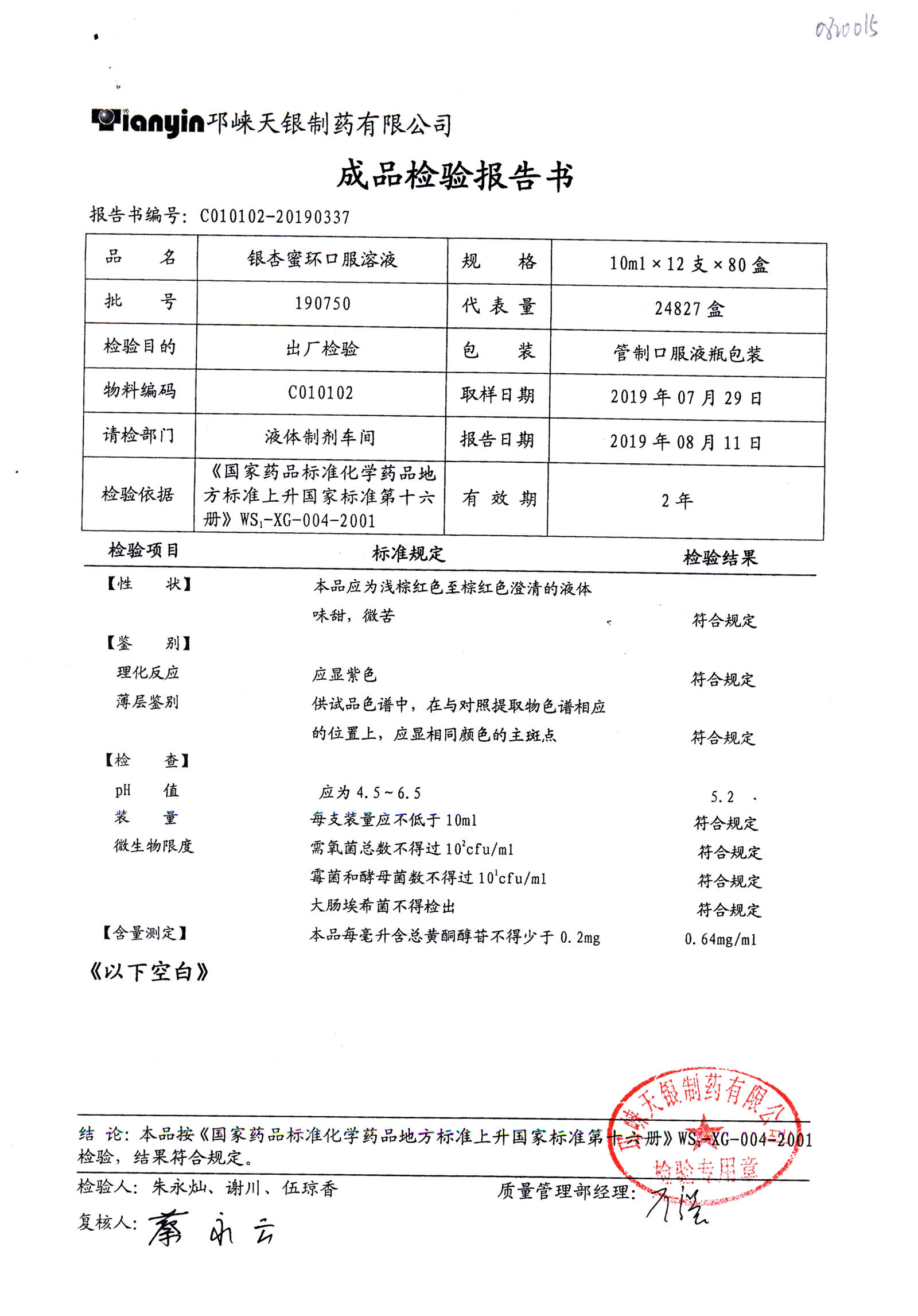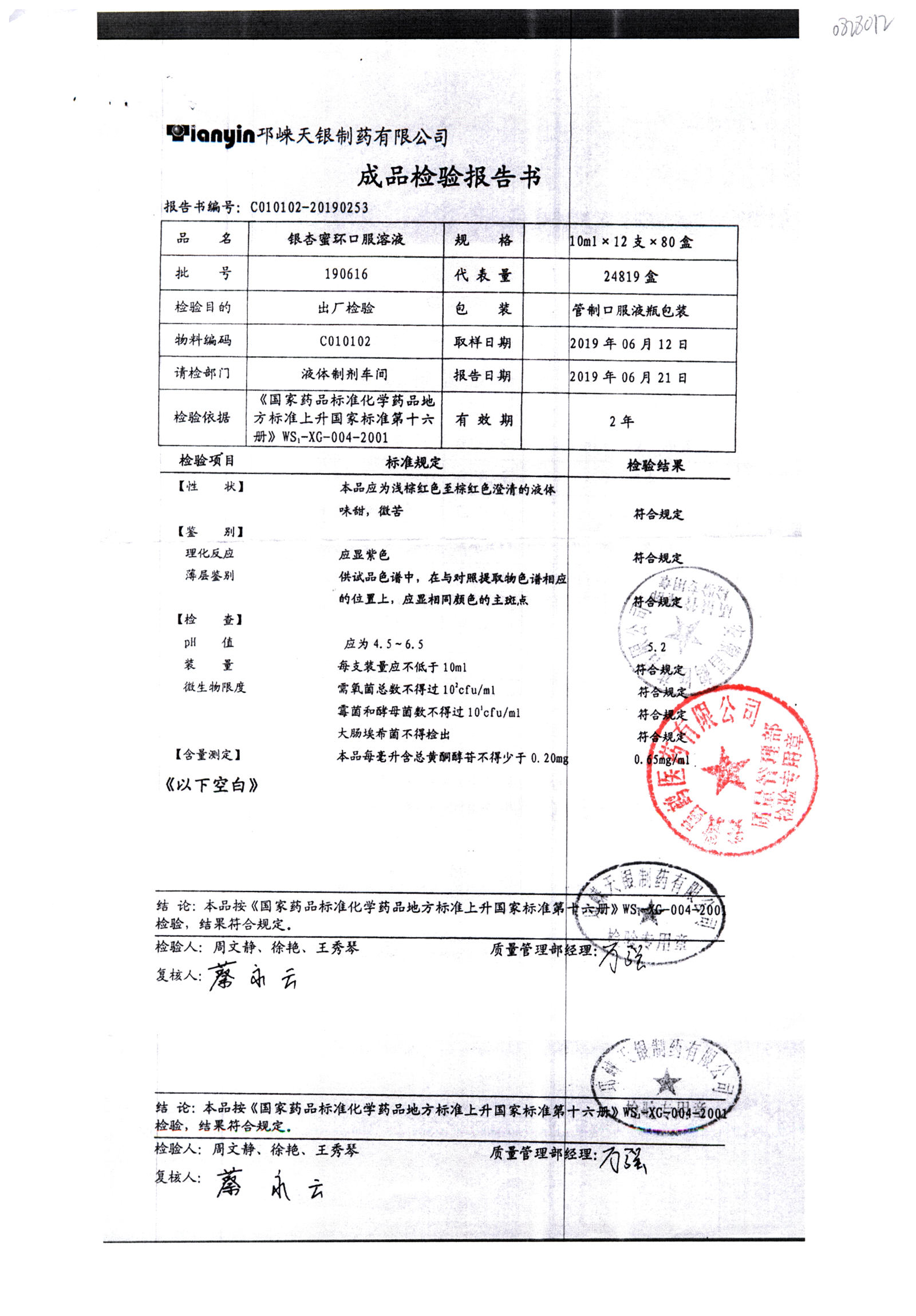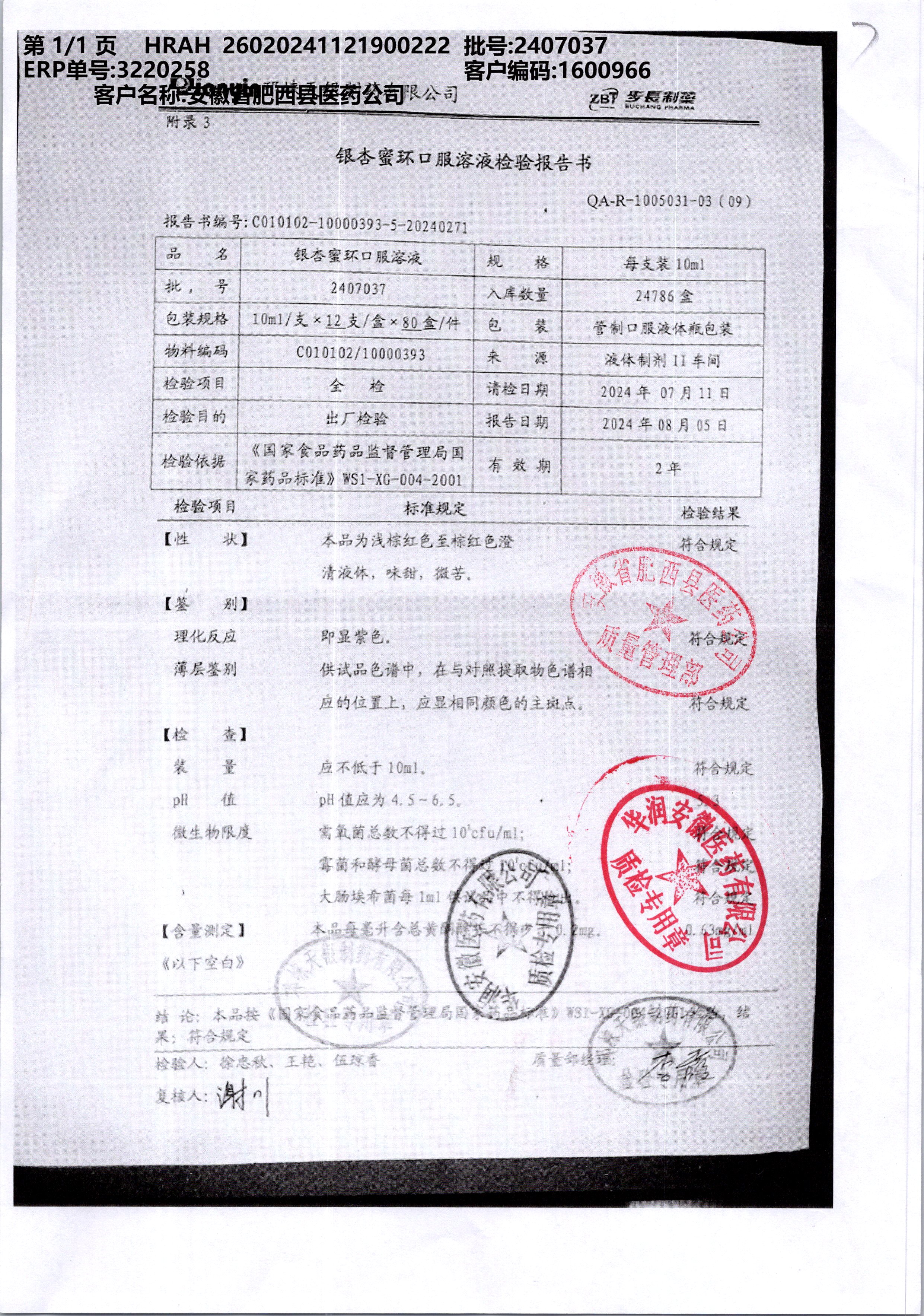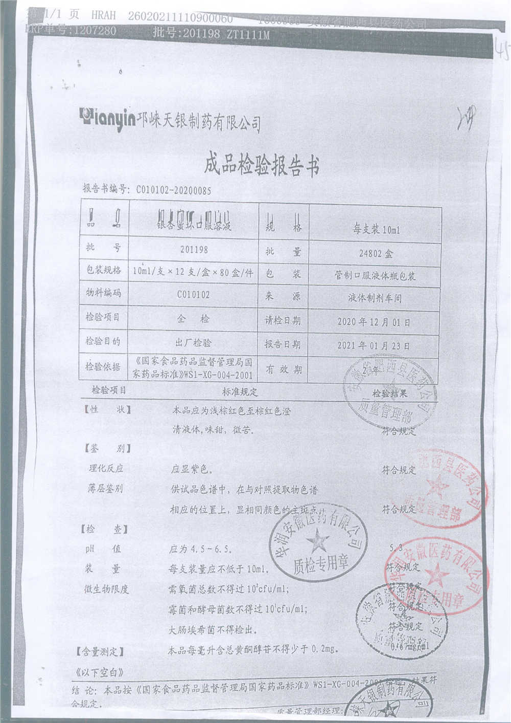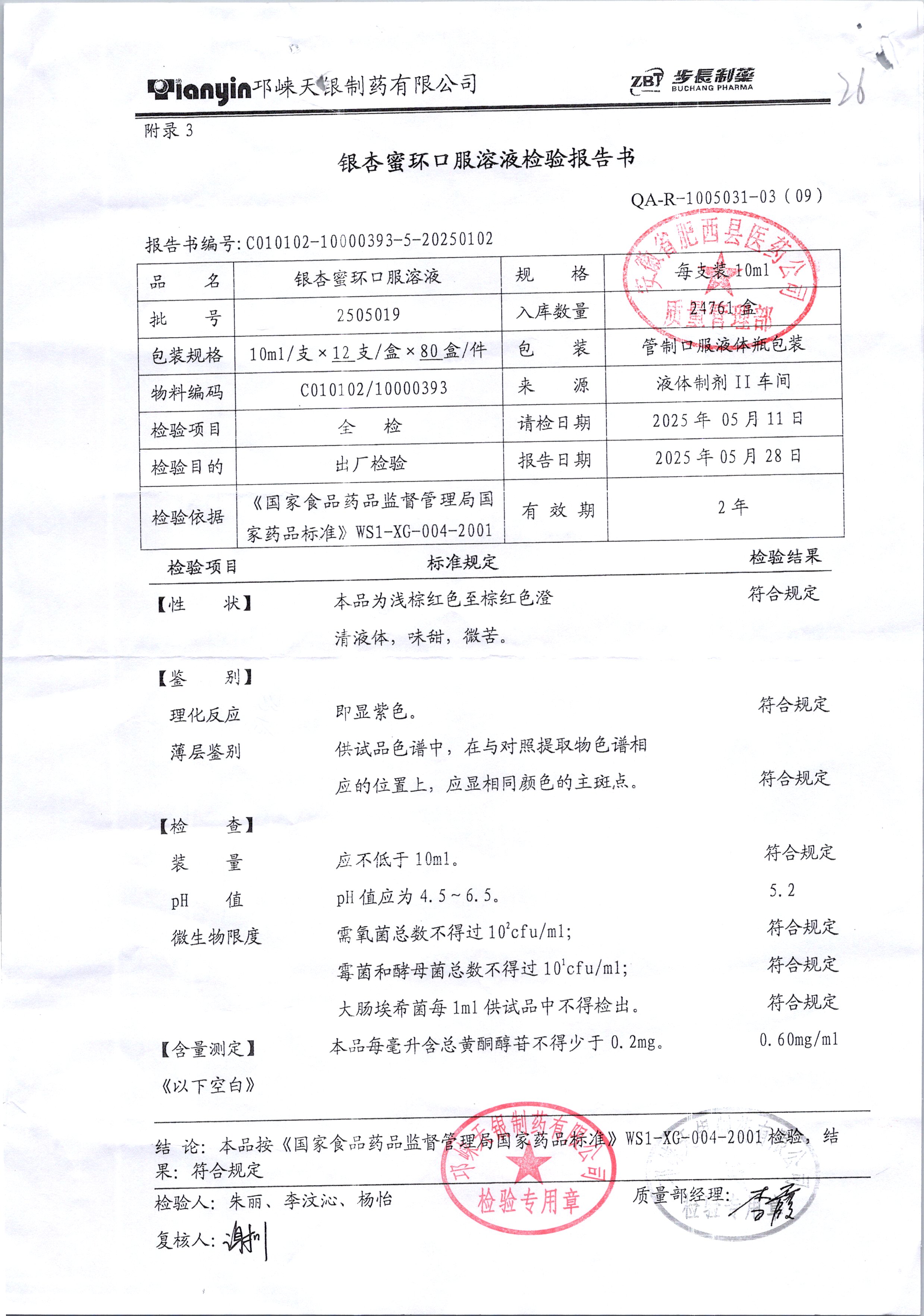 银杏蜜环口服溶液 | 10ml*12支 | 180631(3/4) | 查看详情 |