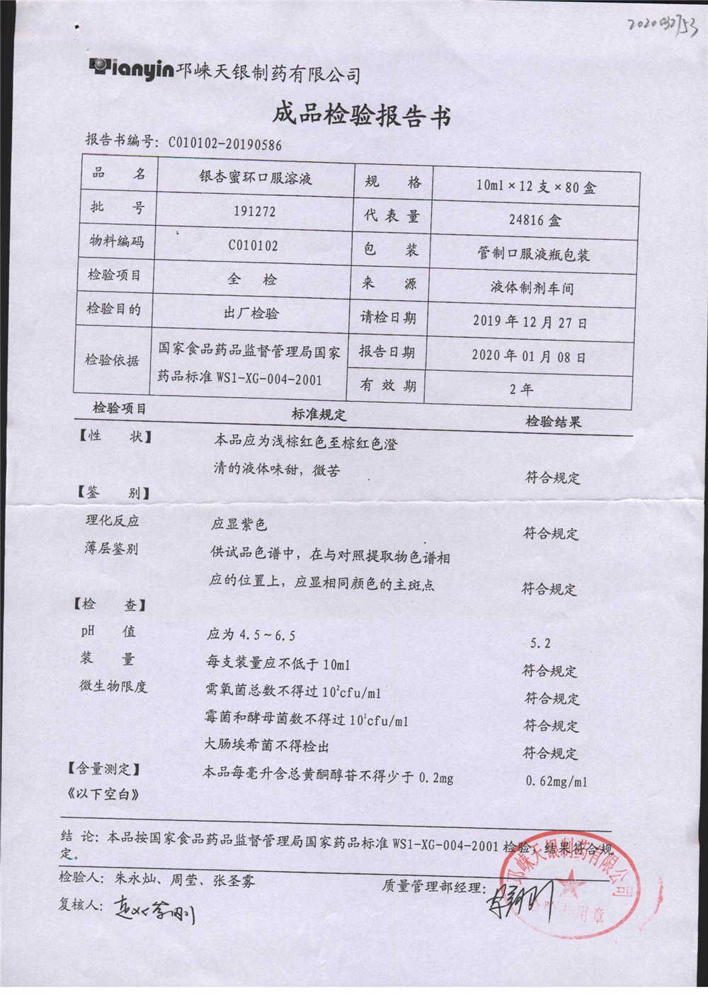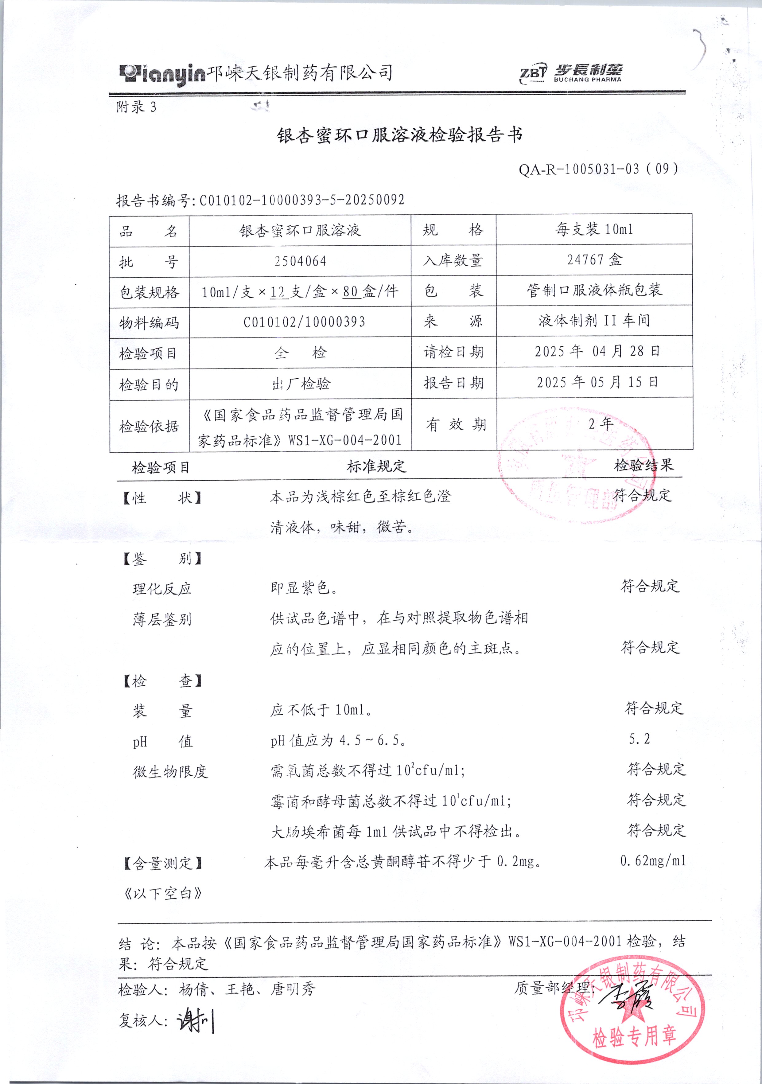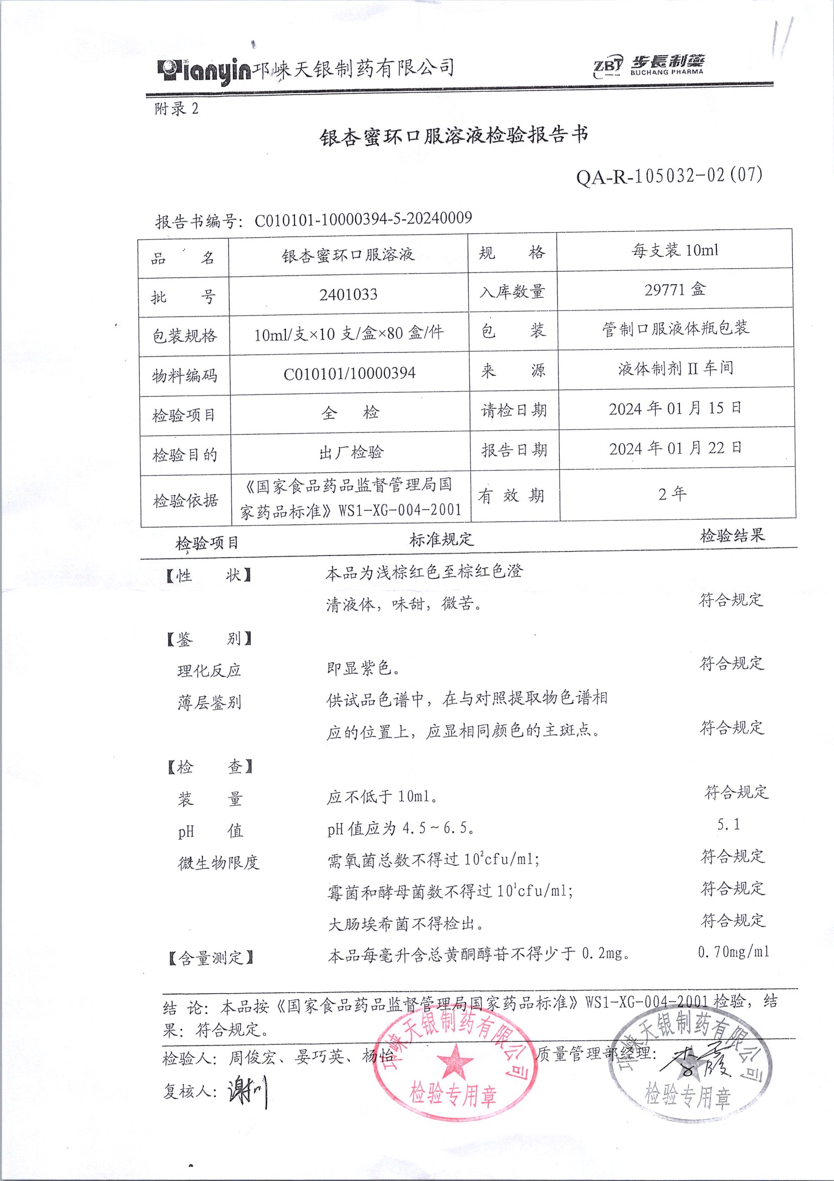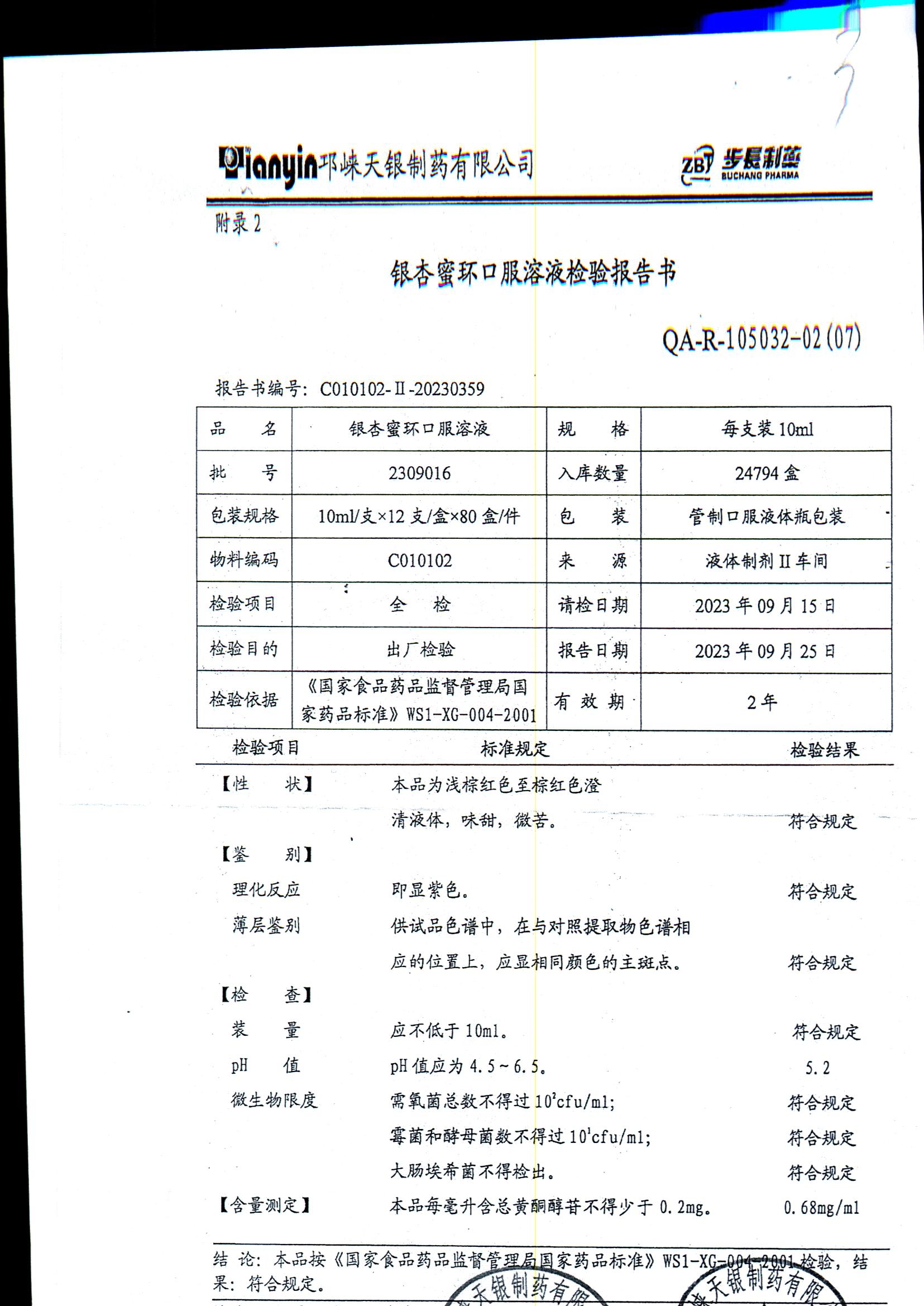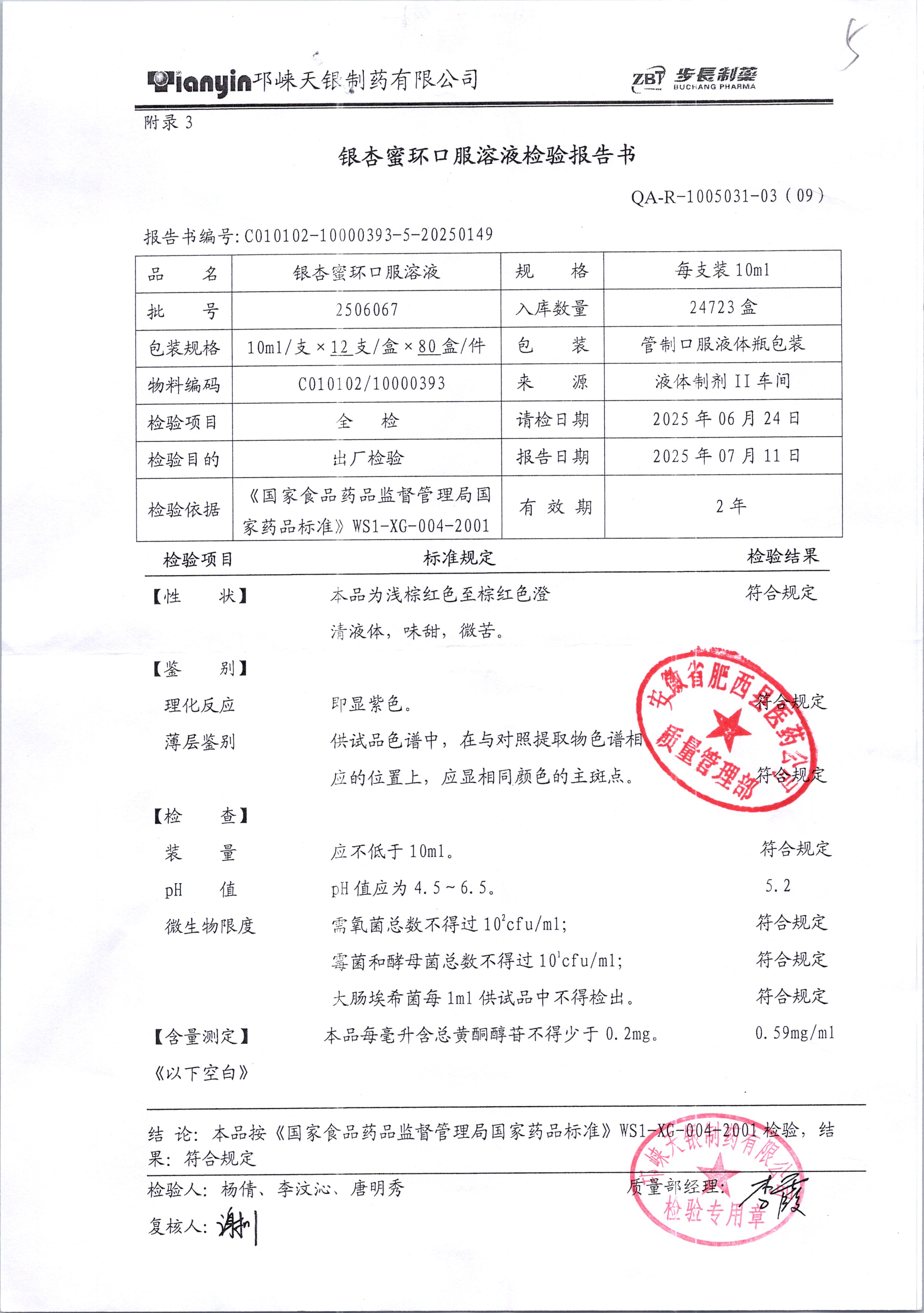 银杏蜜环口服溶液 | 10ml*12支 | 180631(3/4) | 查看详情 |