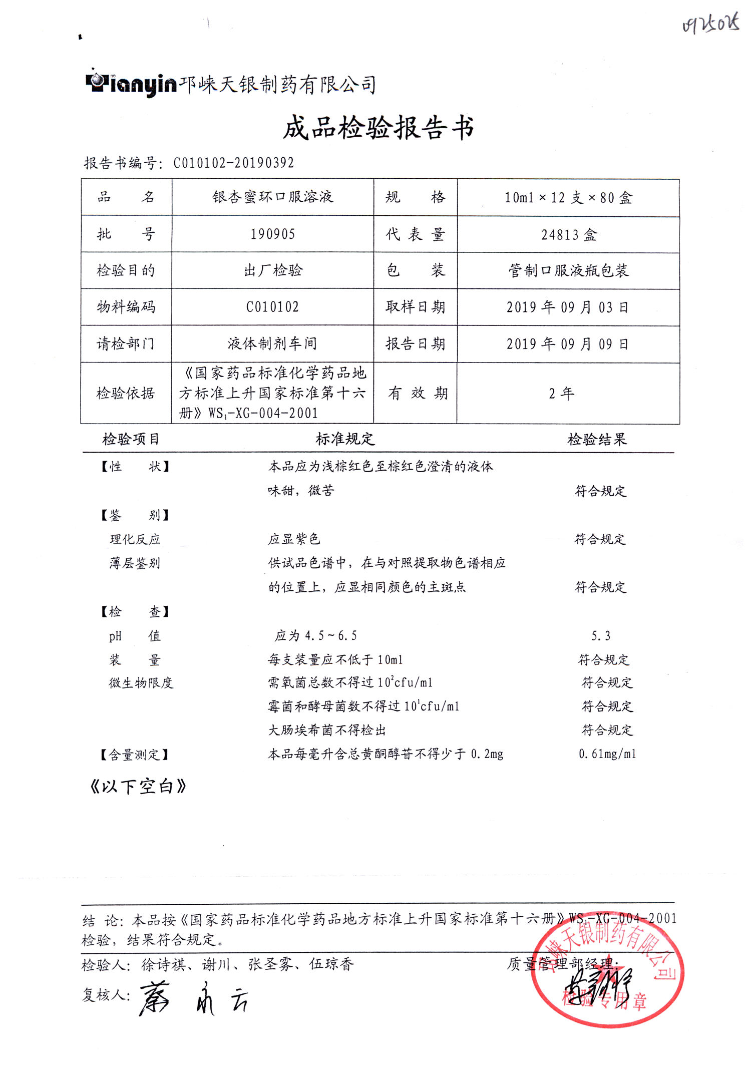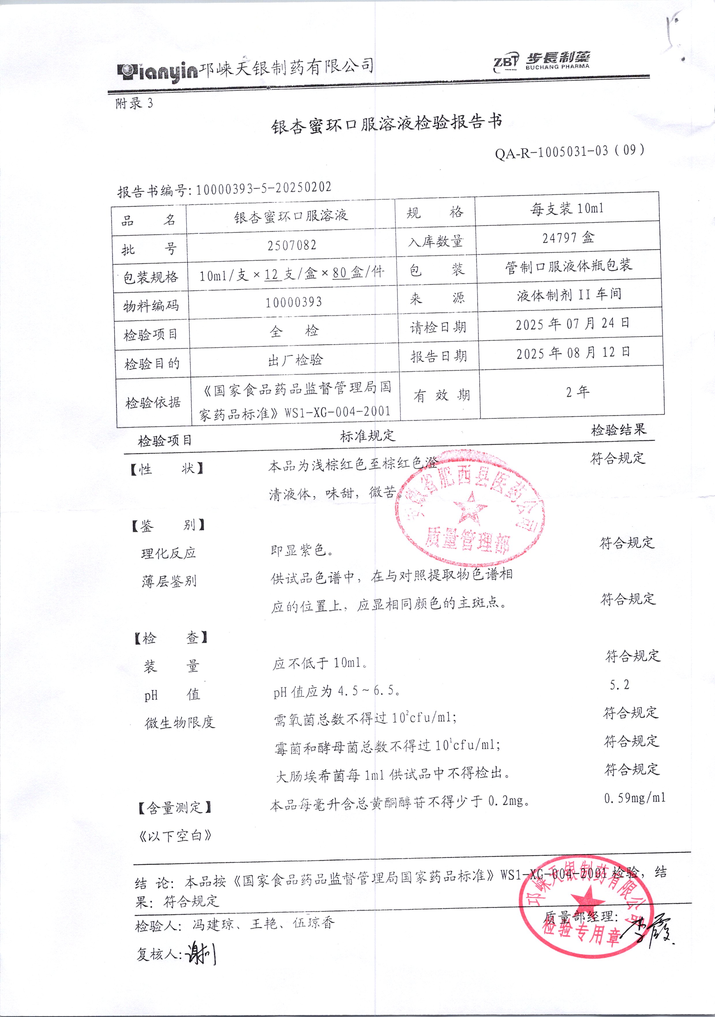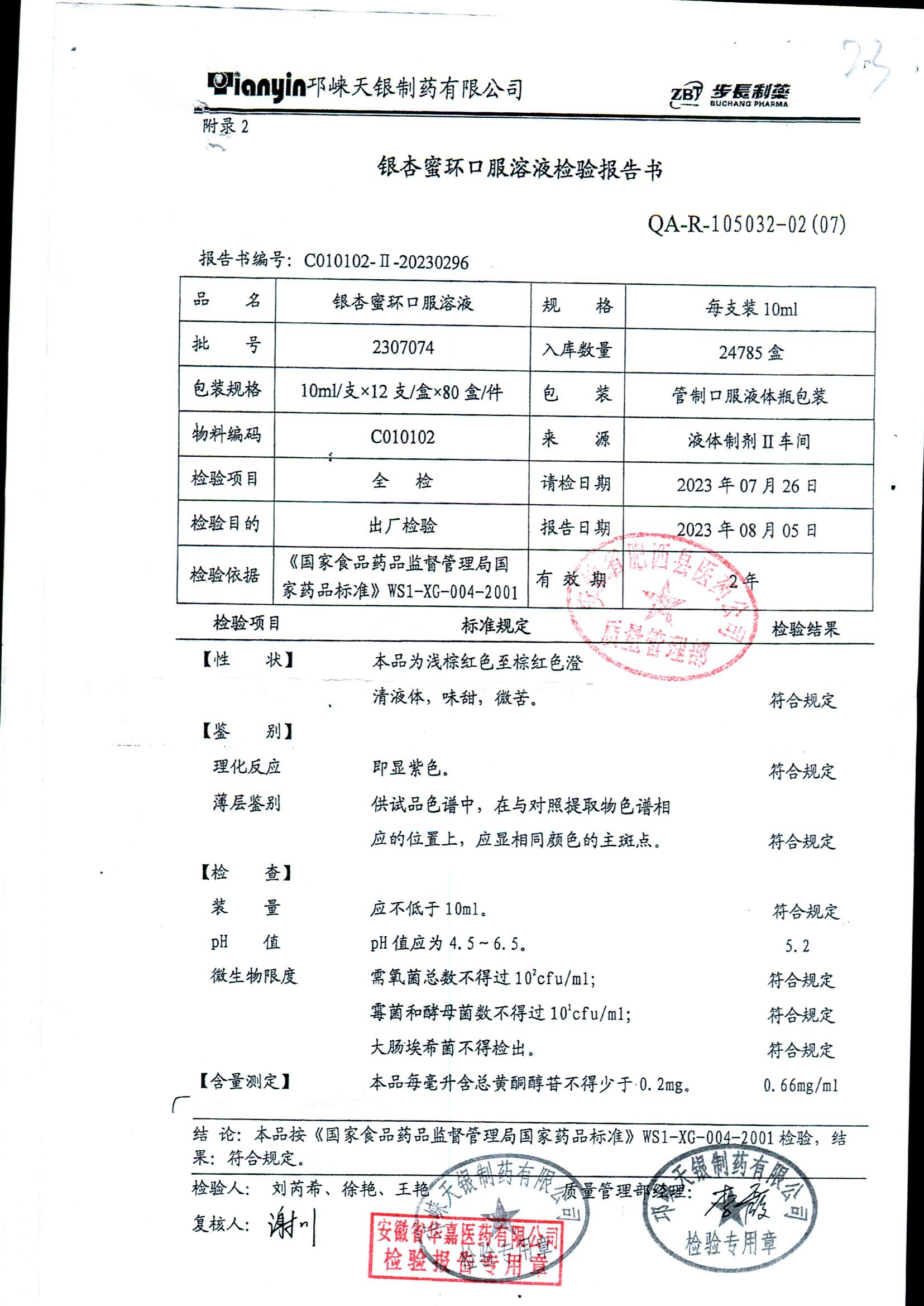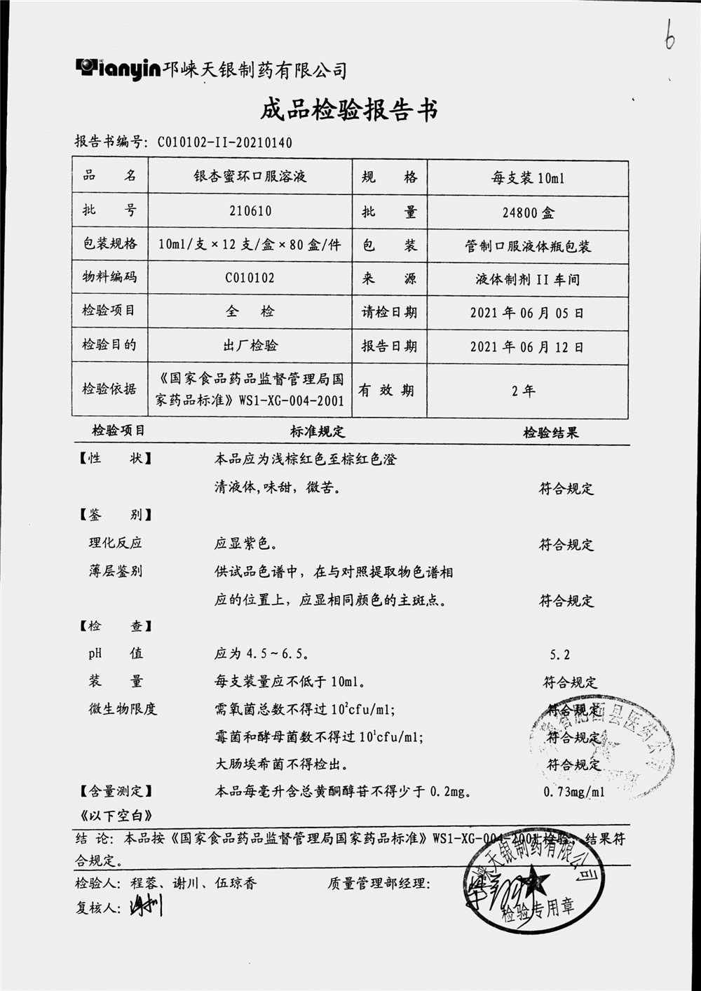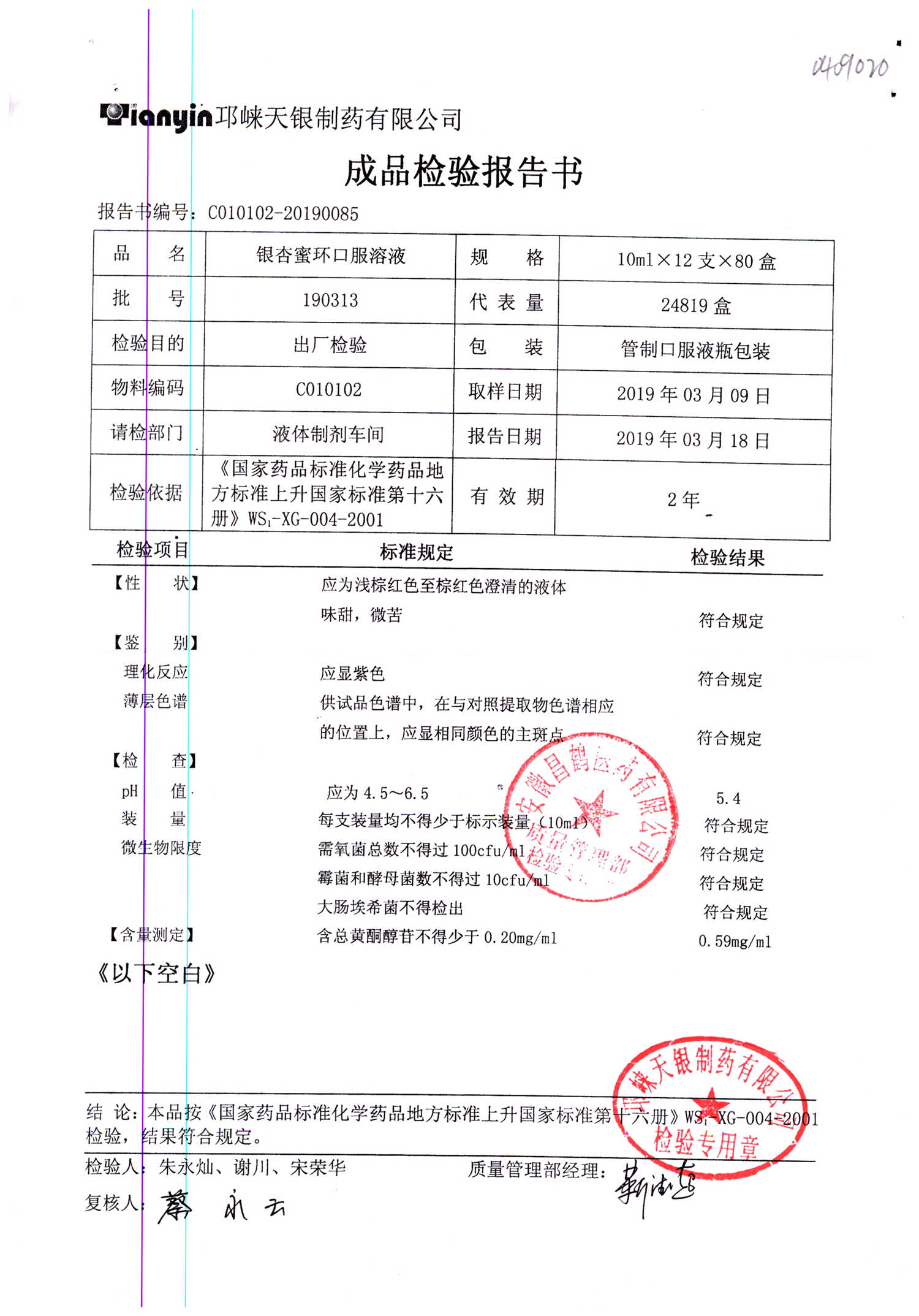 银杏蜜环口服溶液 | 10ml*12支 | 180631(3/4) | 查看详情 |