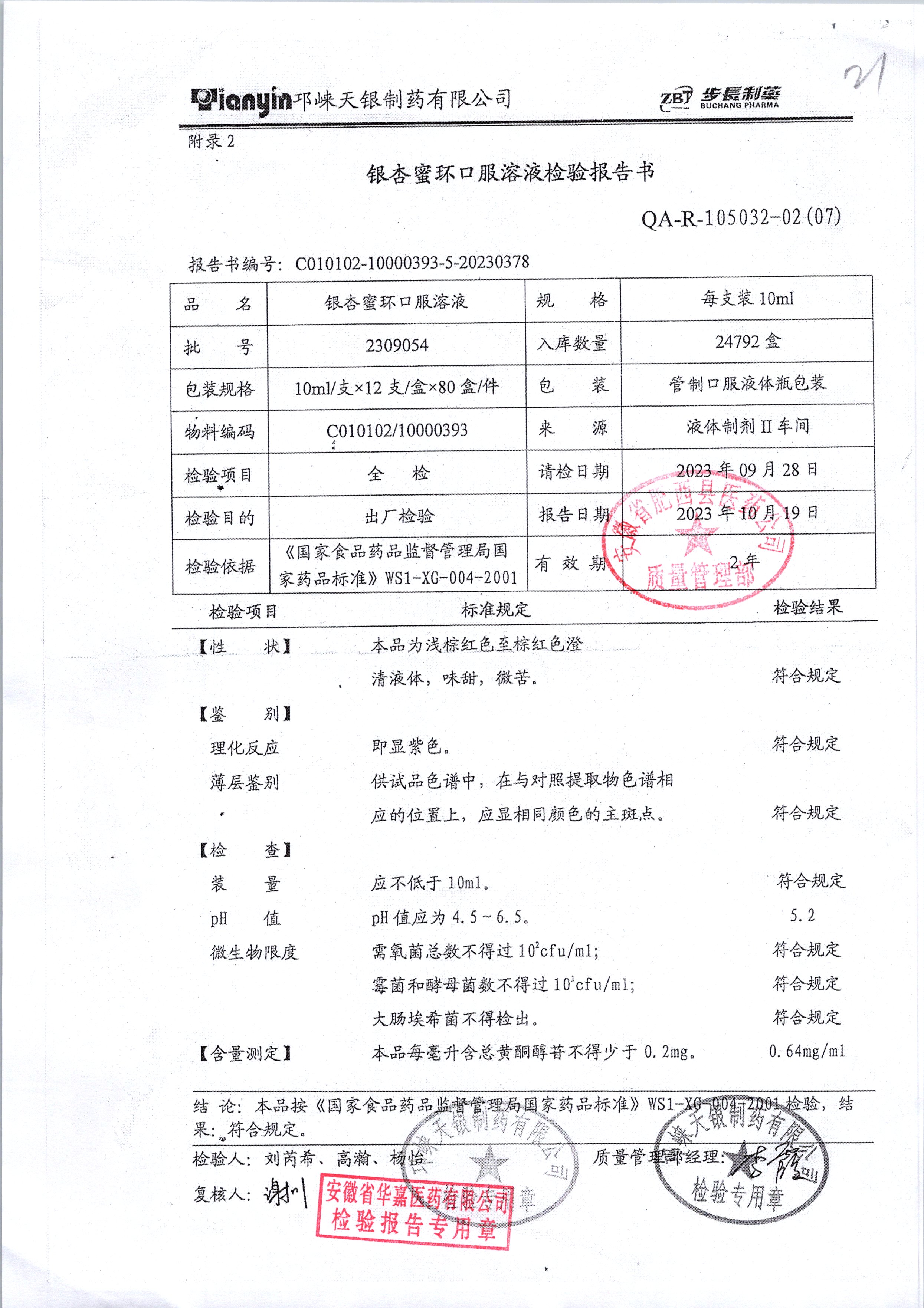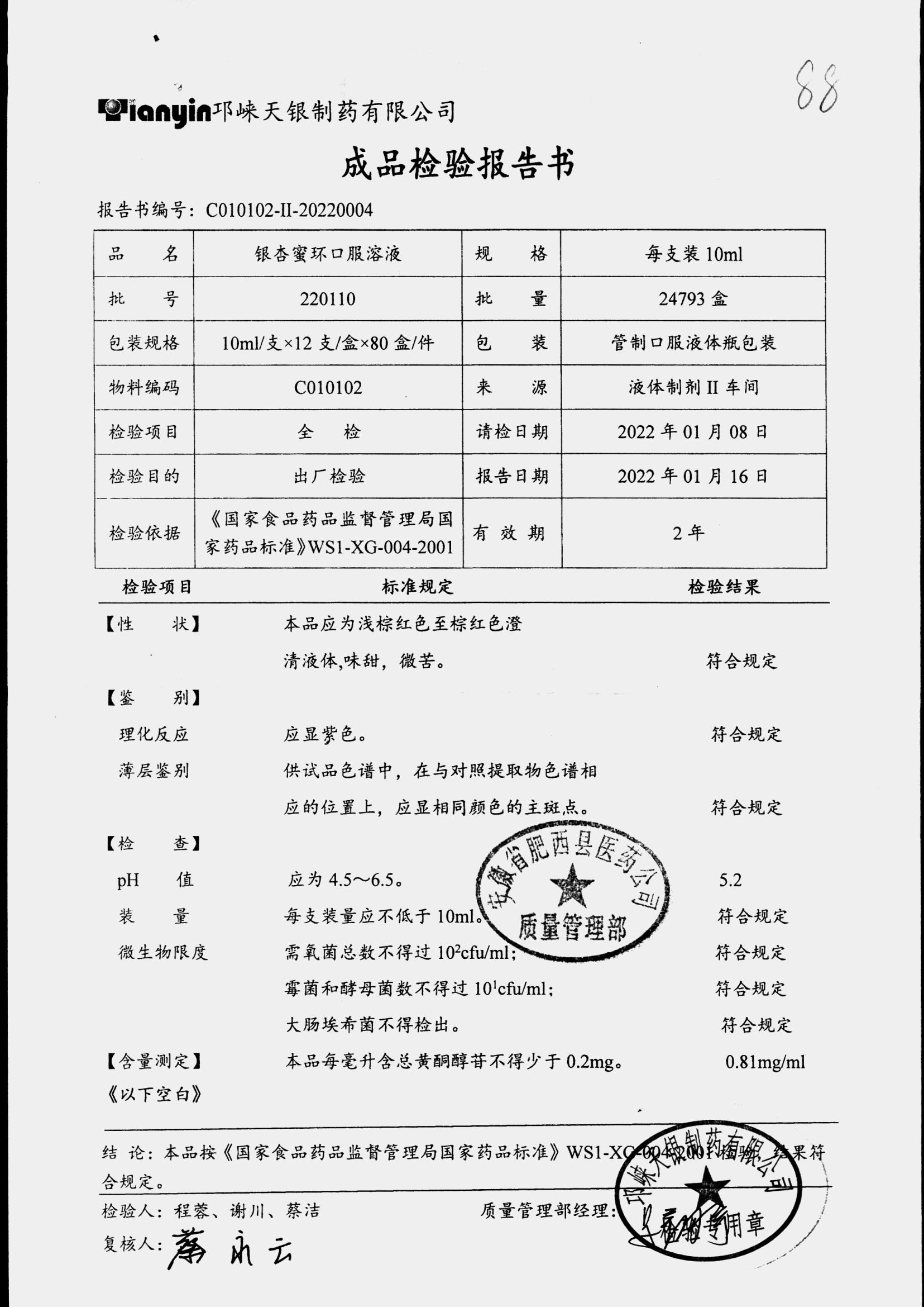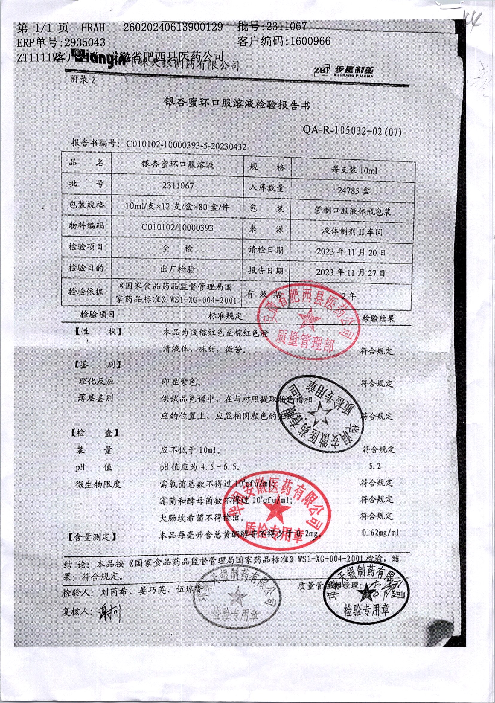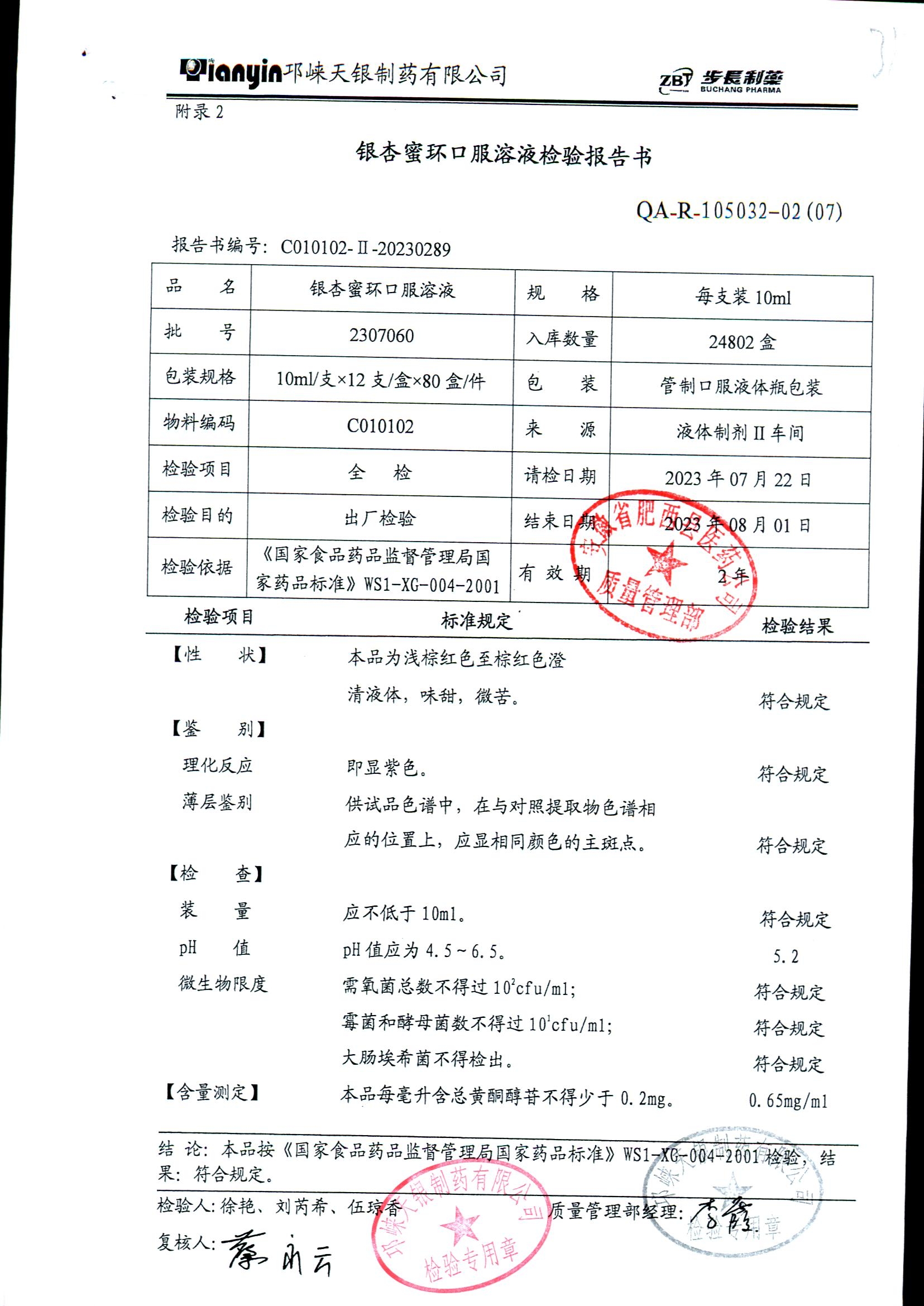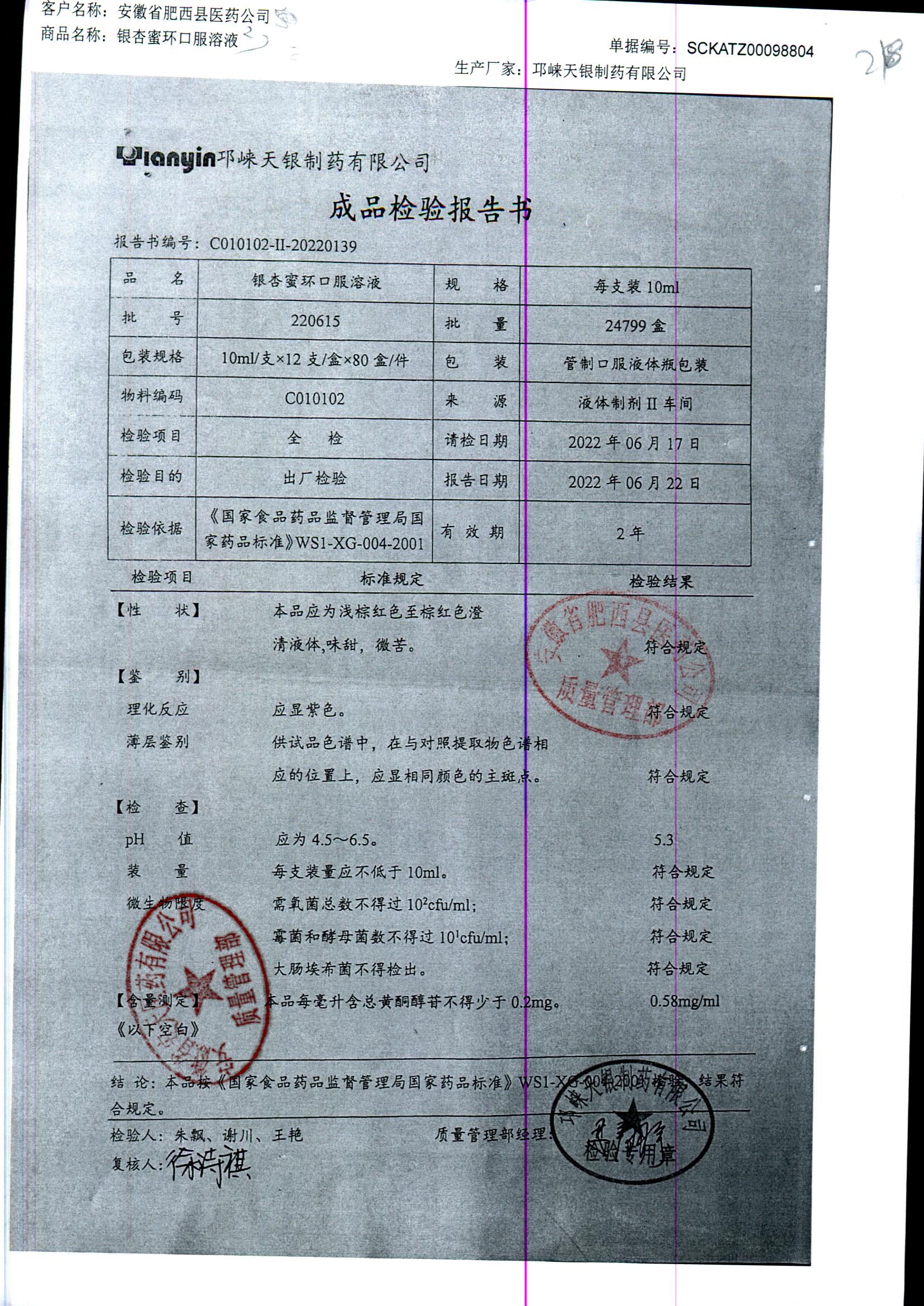 银杏蜜环口服溶液 | 10ml*12支 | 180631(3/4) | 查看详情 |