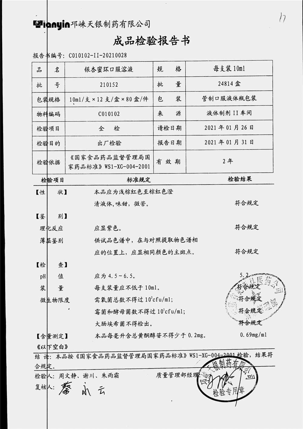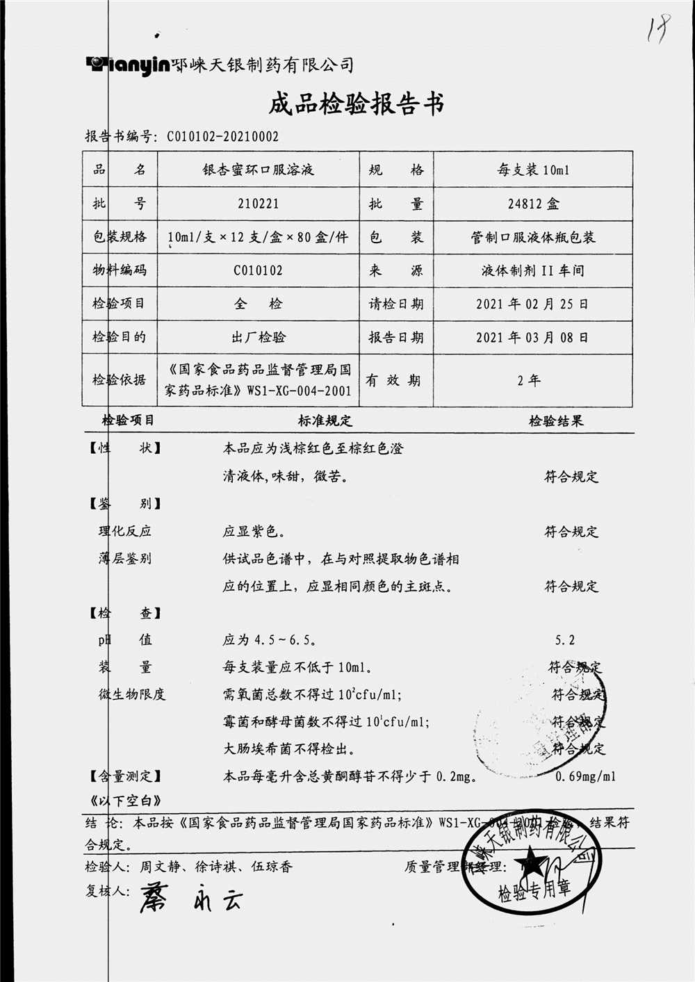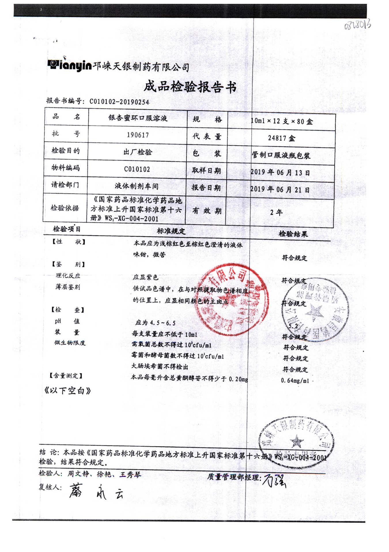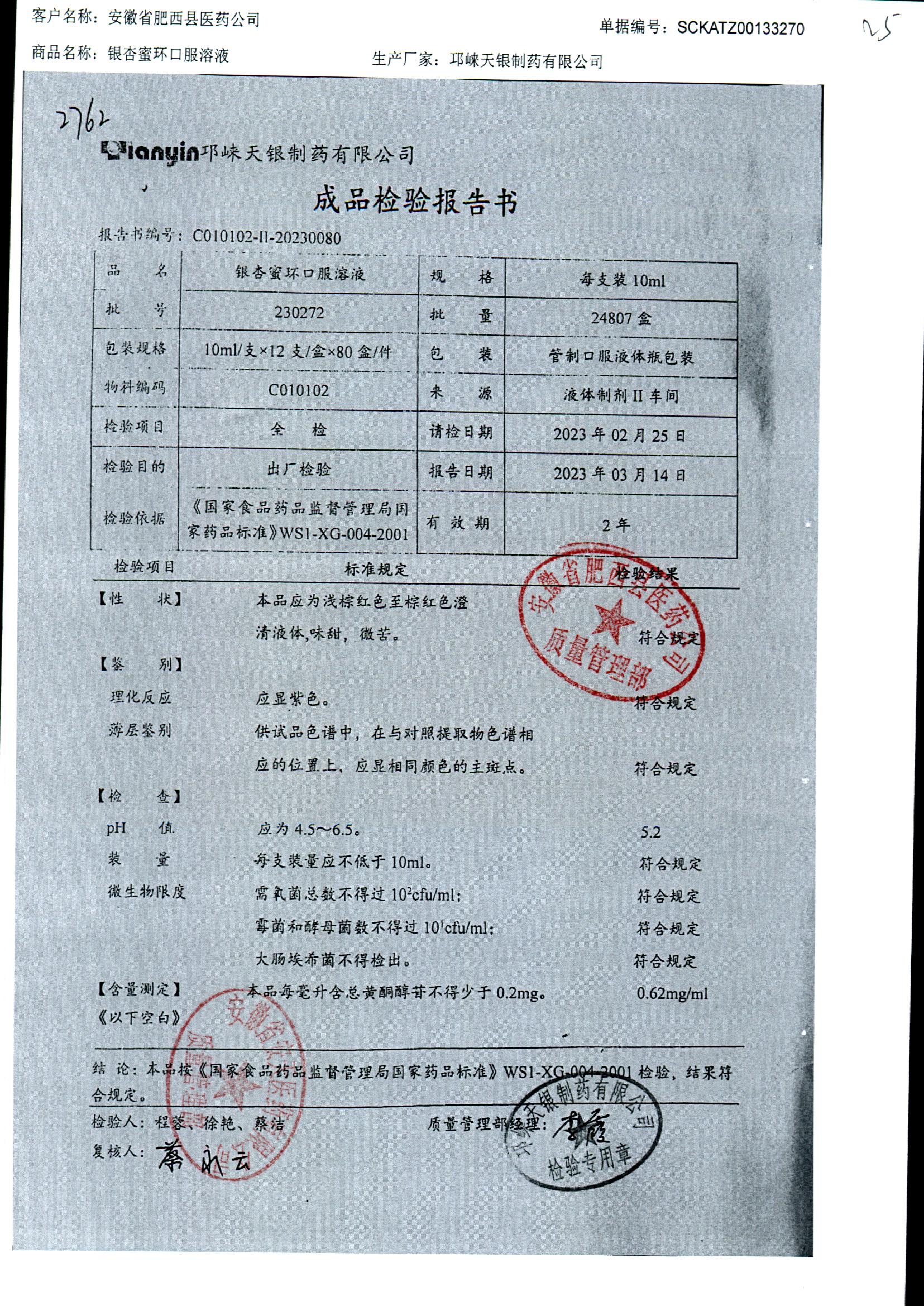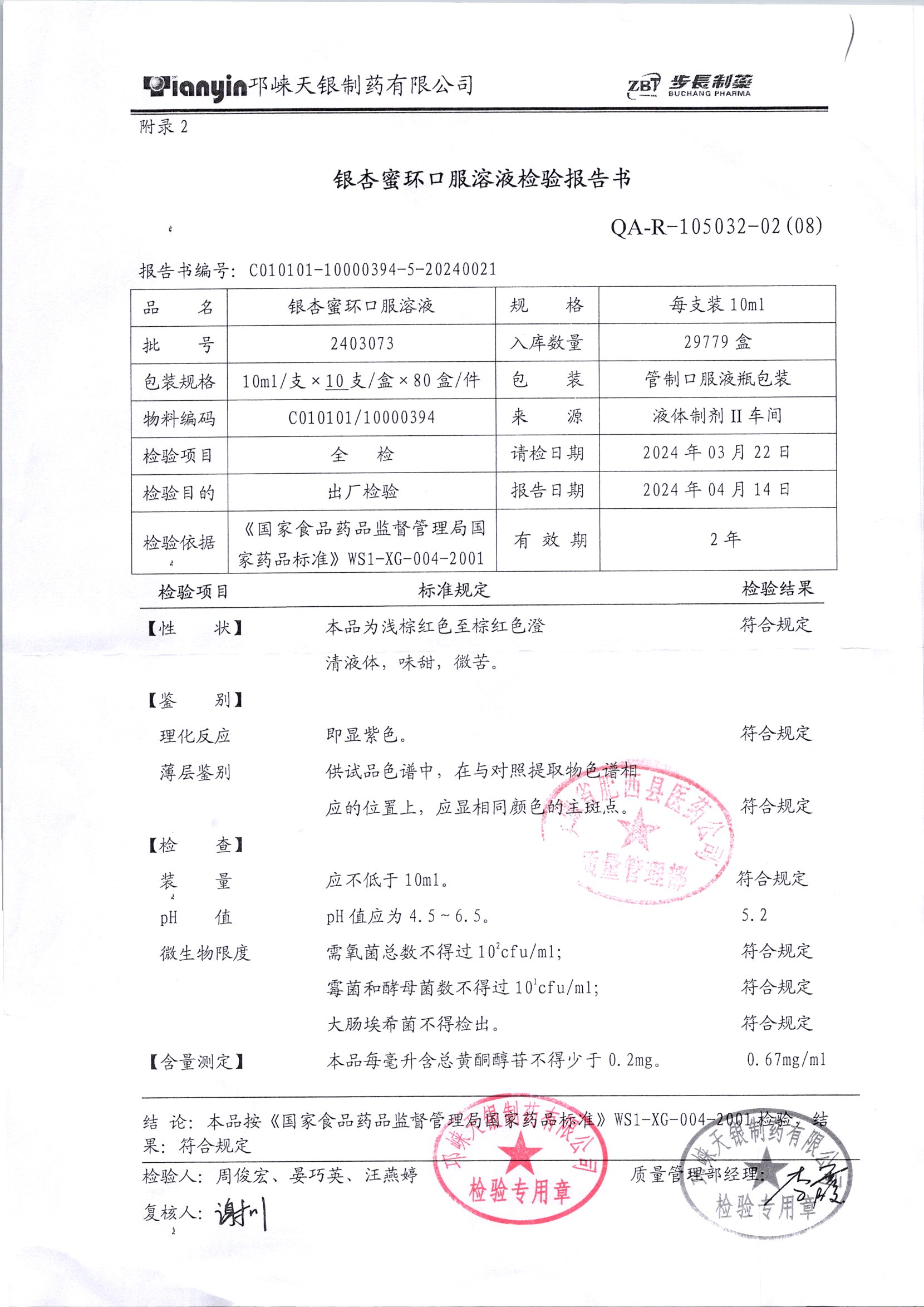 银杏蜜环口服溶液 | 10ml*12支 | 180631(3/4) | 查看详情 |