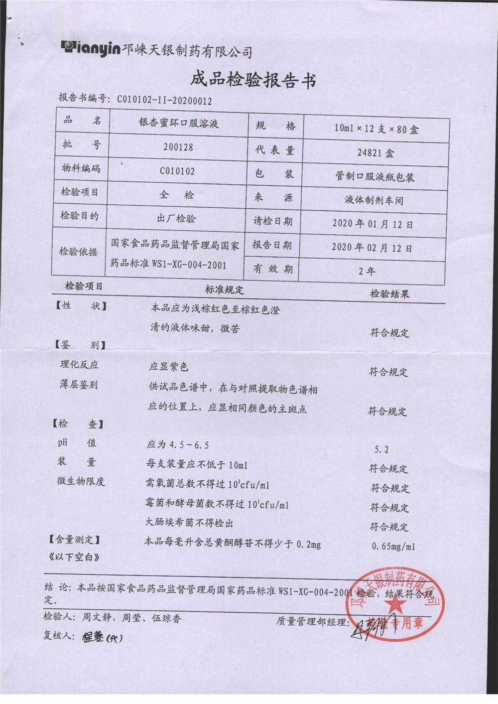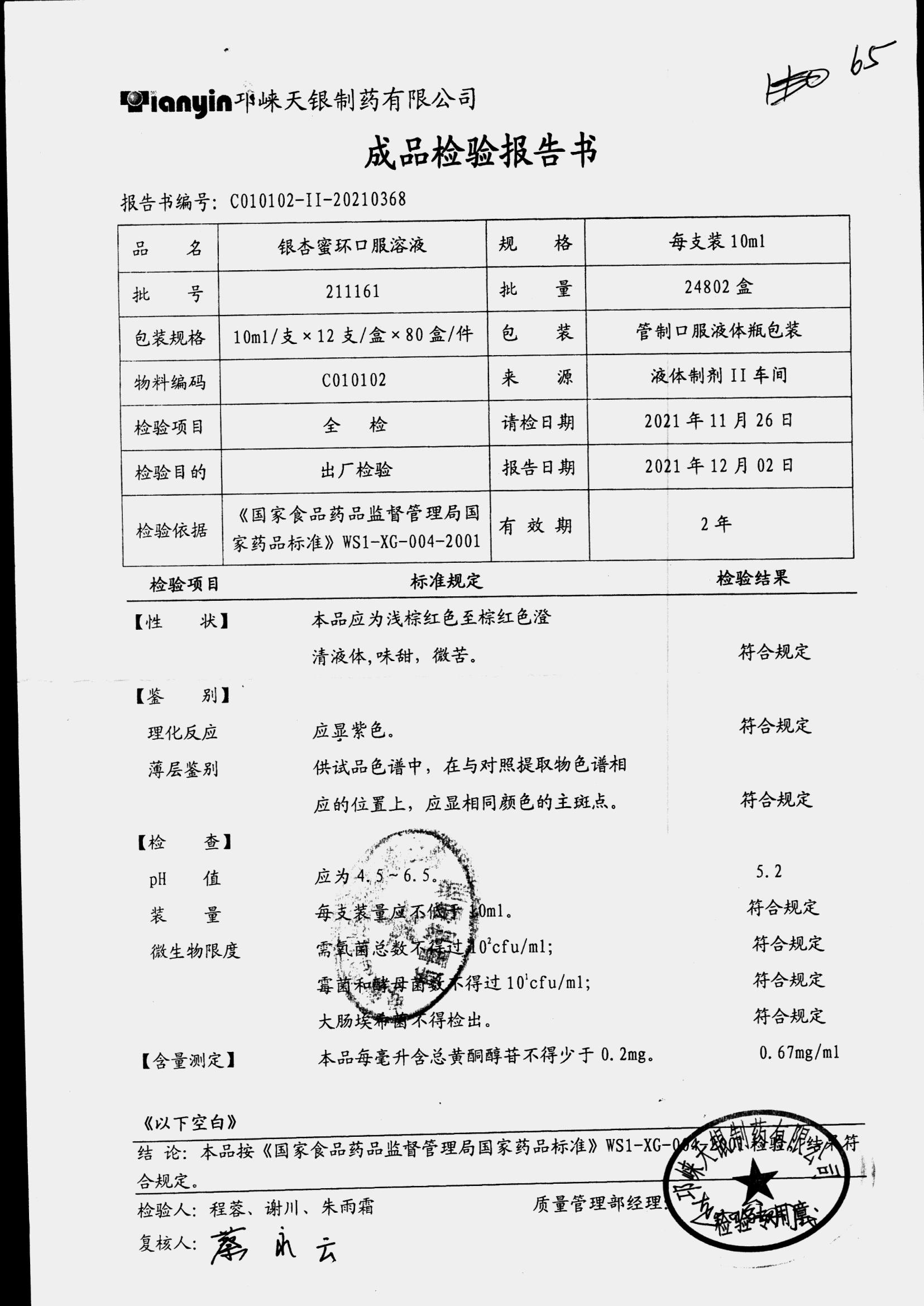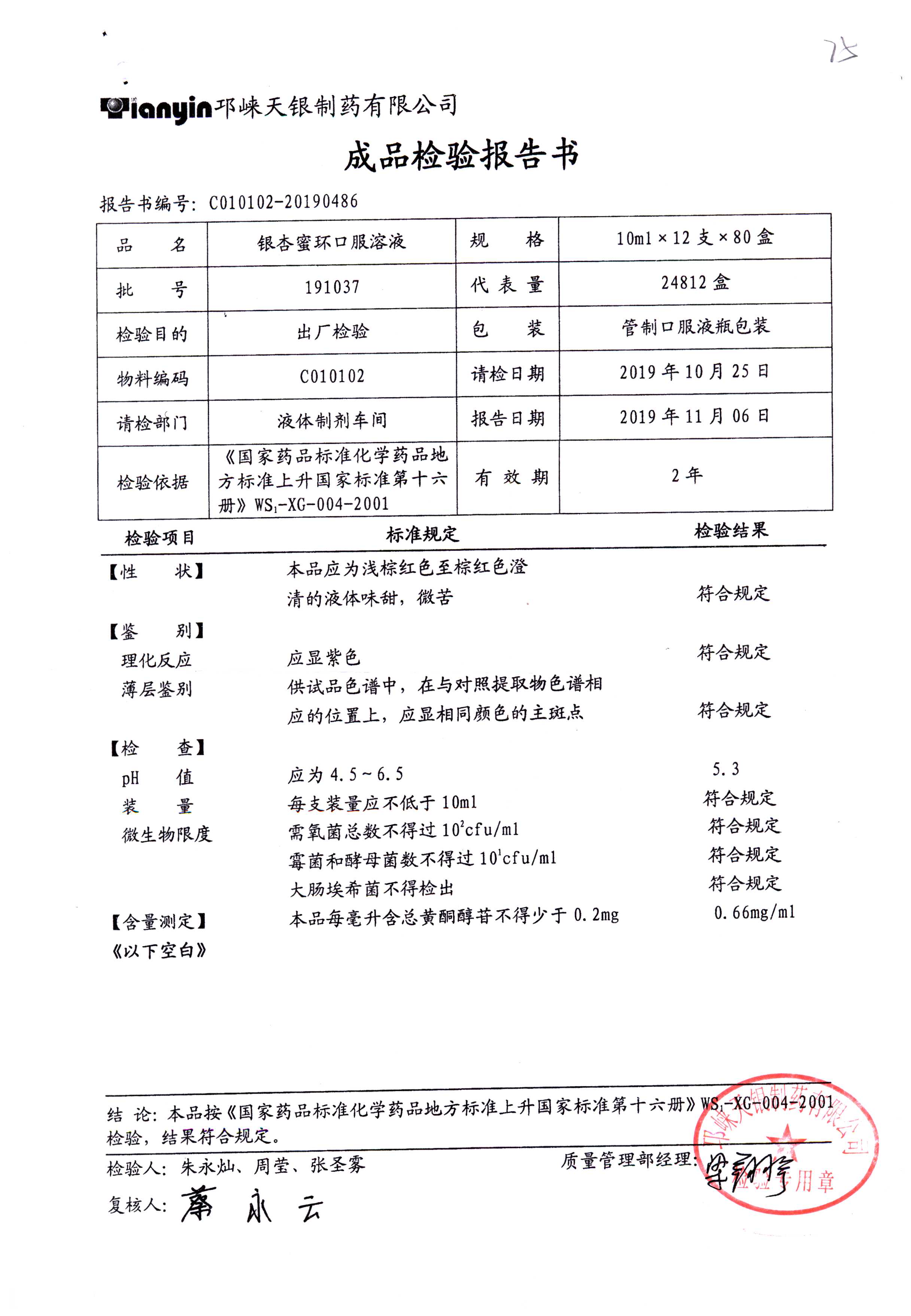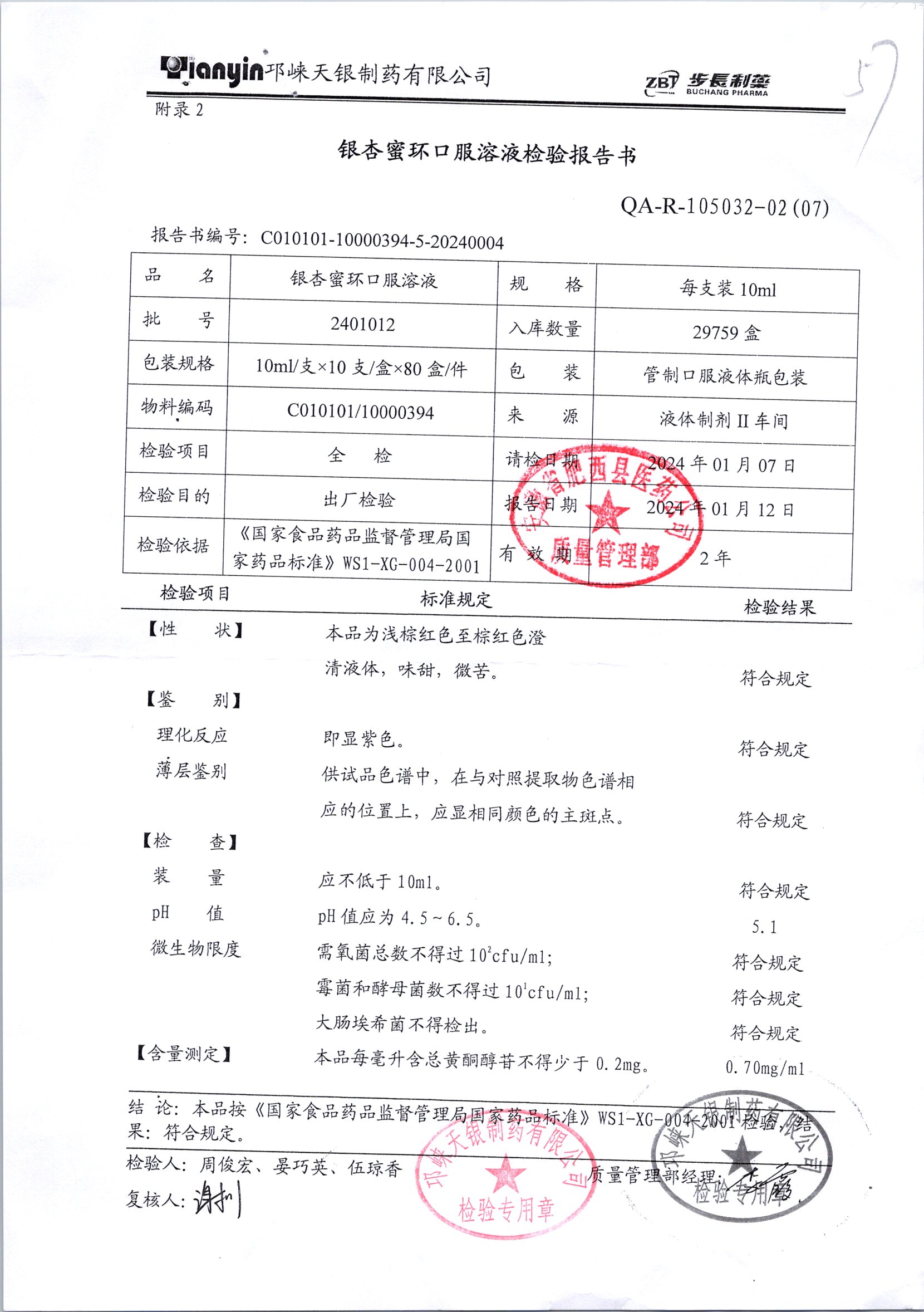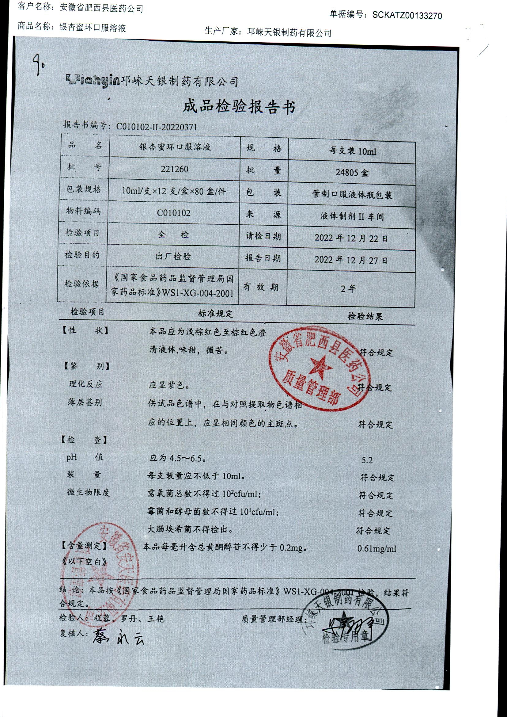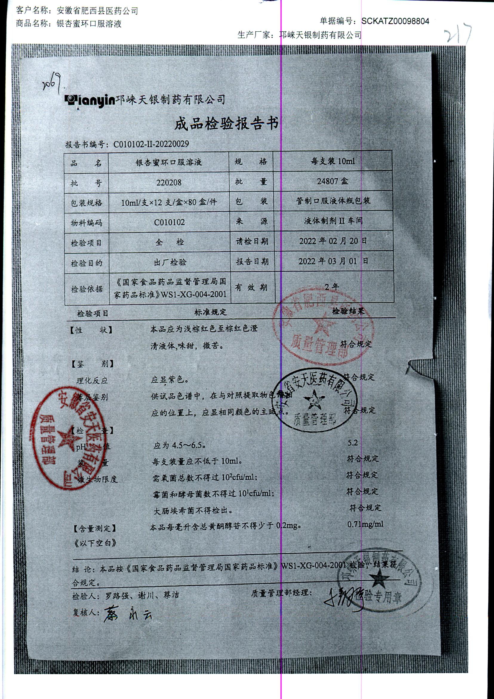 银杏蜜环口服溶液 | 10ml*12支 | 180631(3/4) | 查看详情 |
