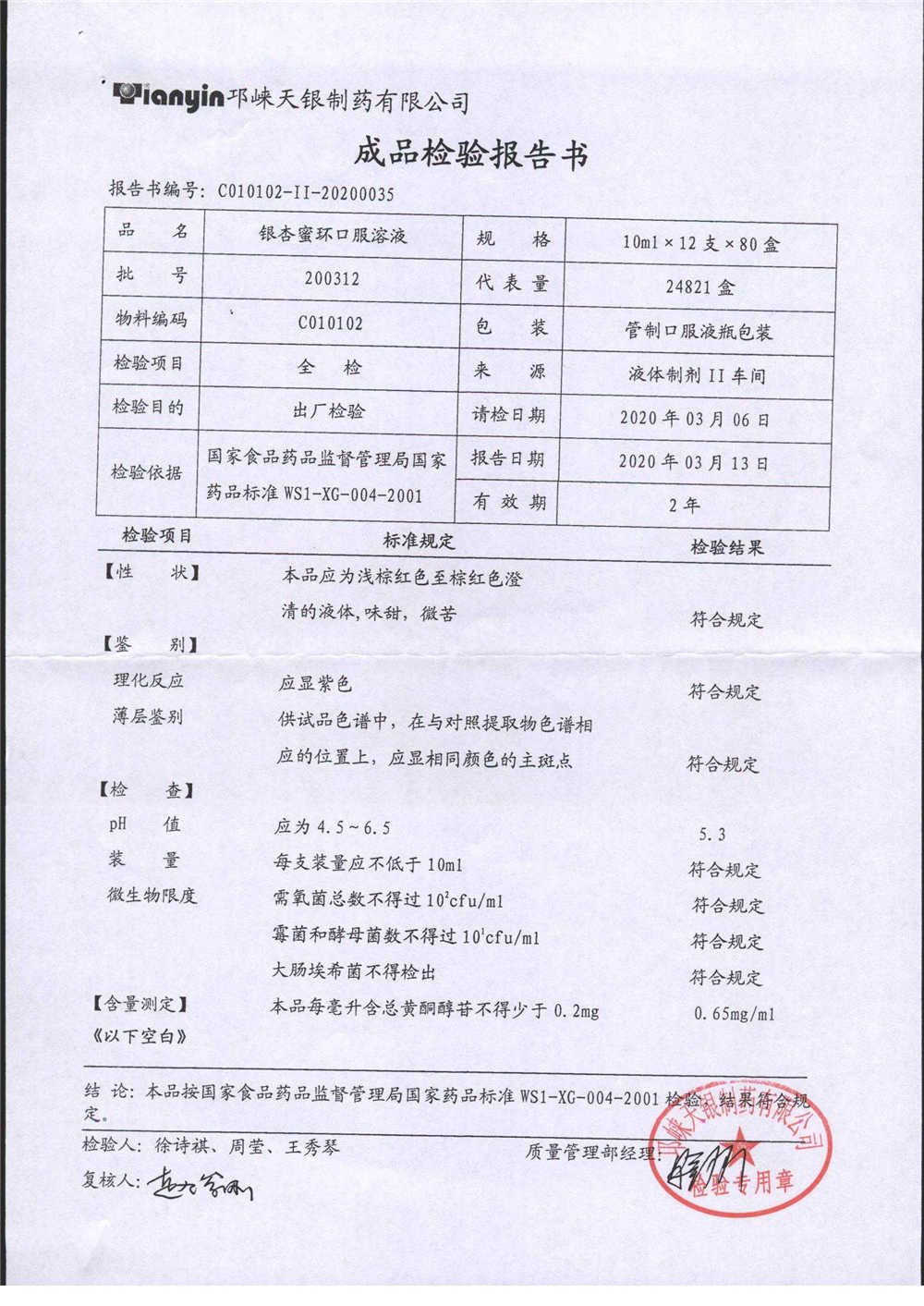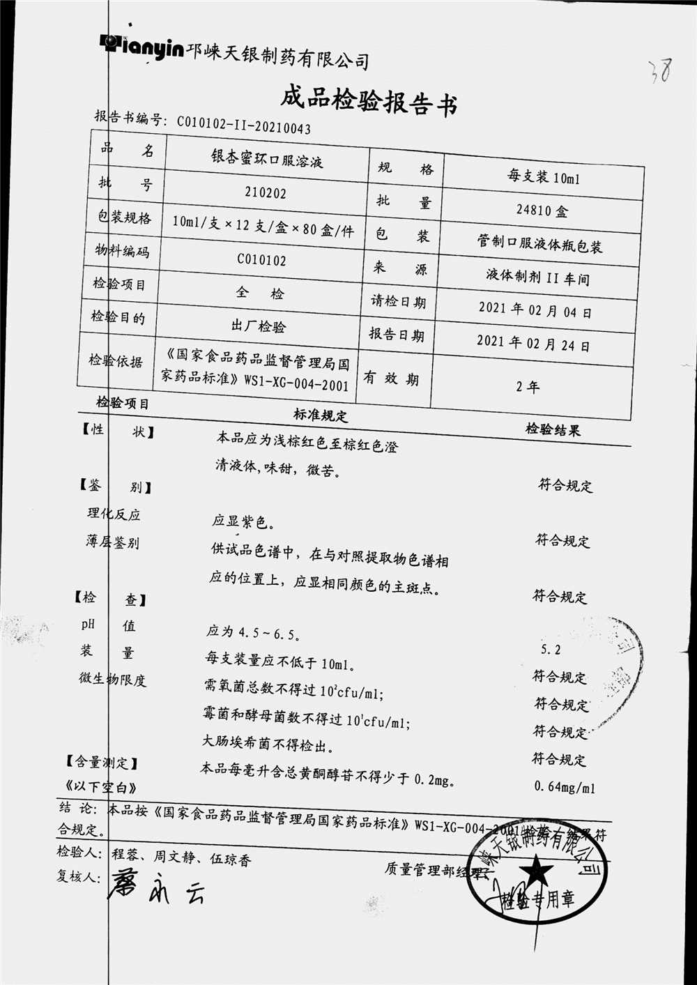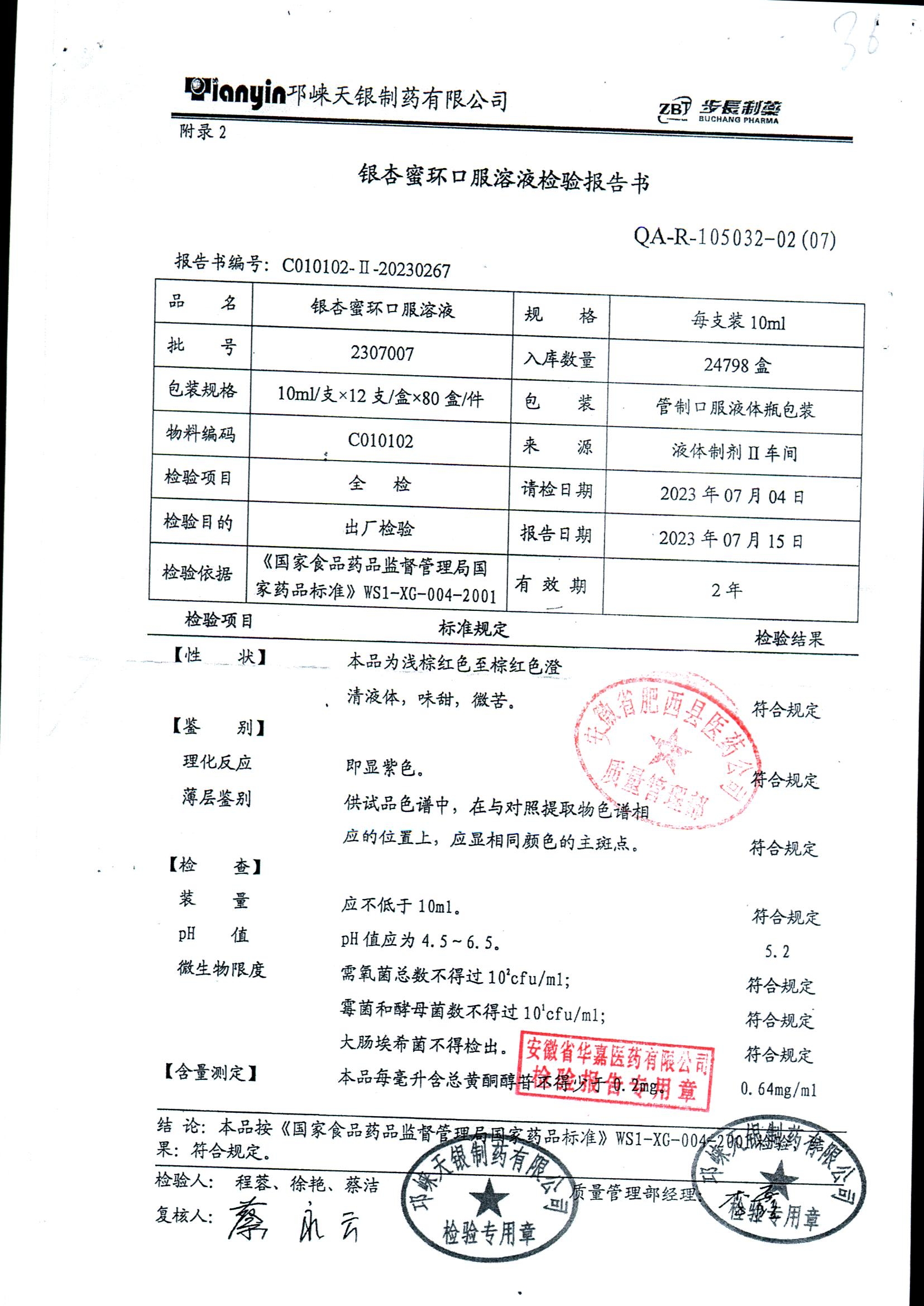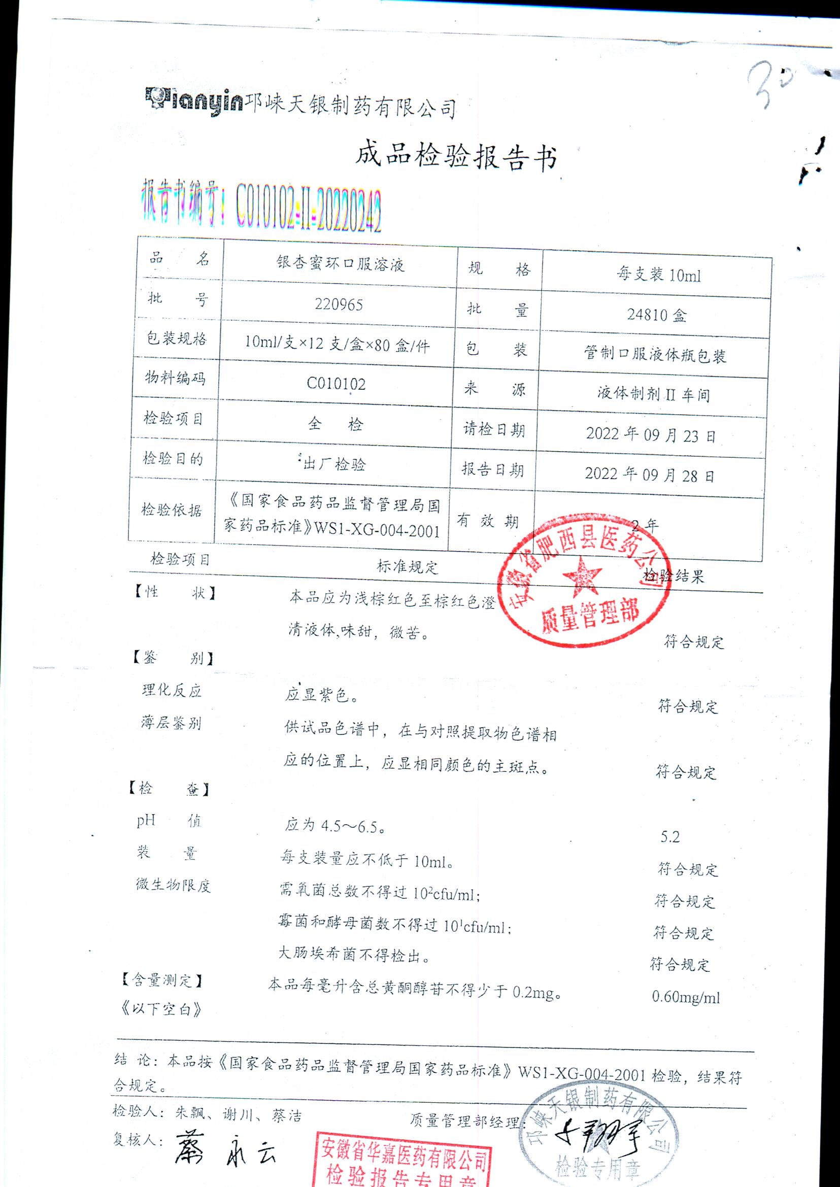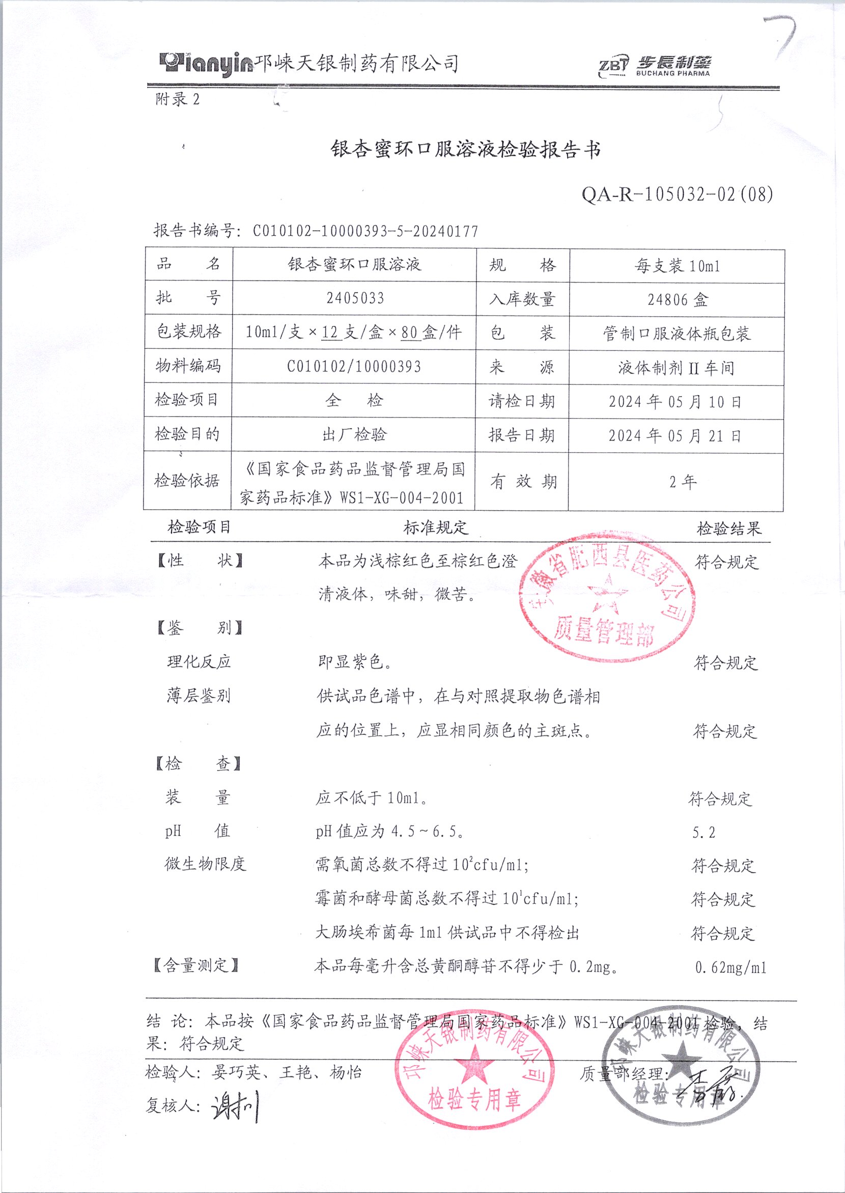 银杏蜜环口服溶液 | 10ml*12支 | 180631(3/4) | 查看详情 |