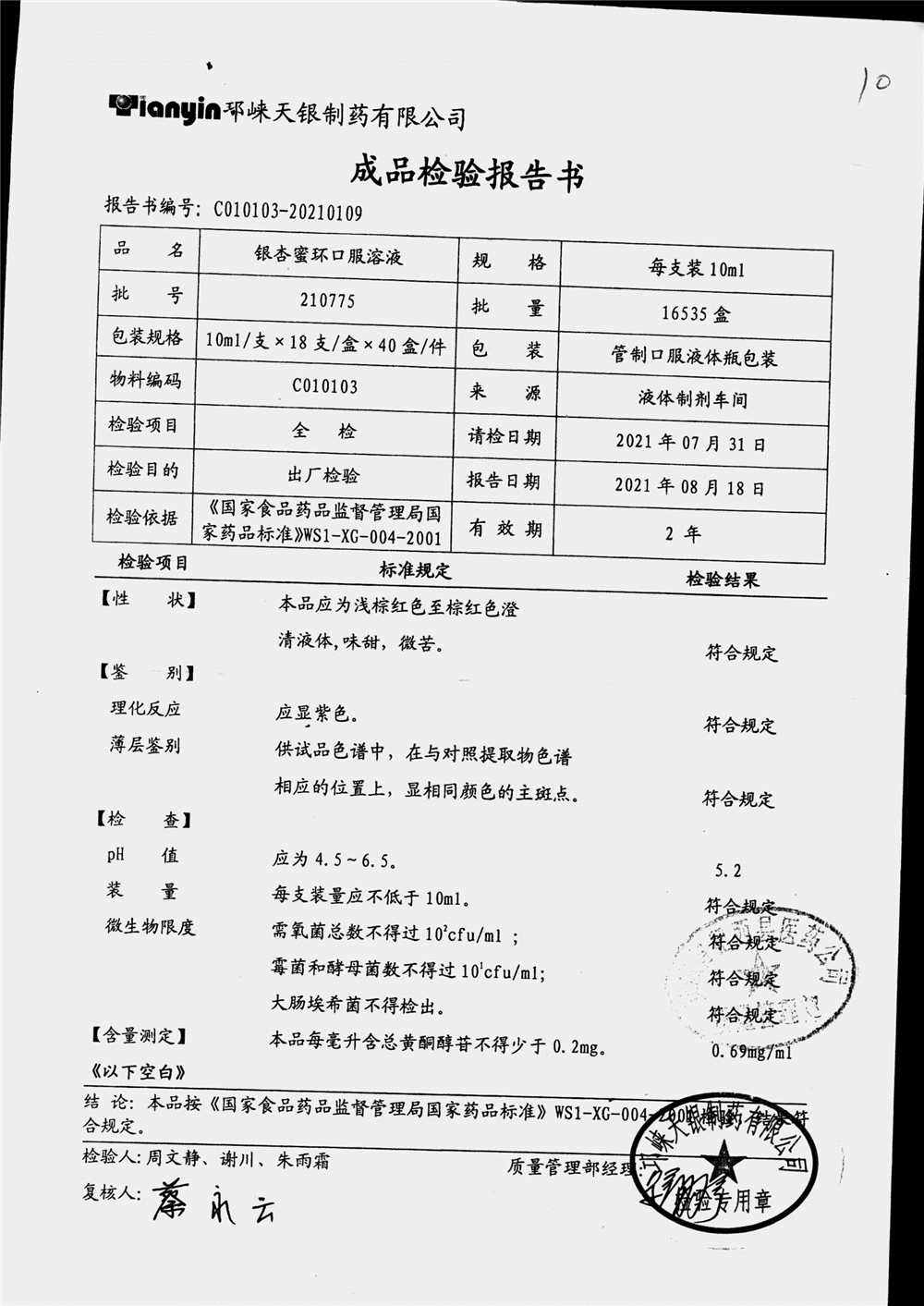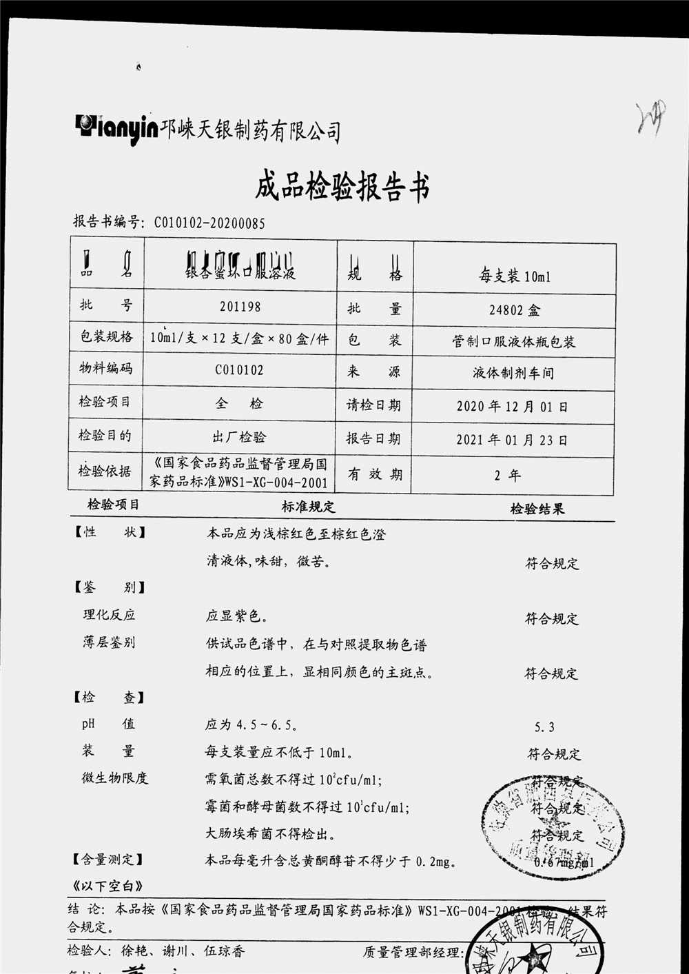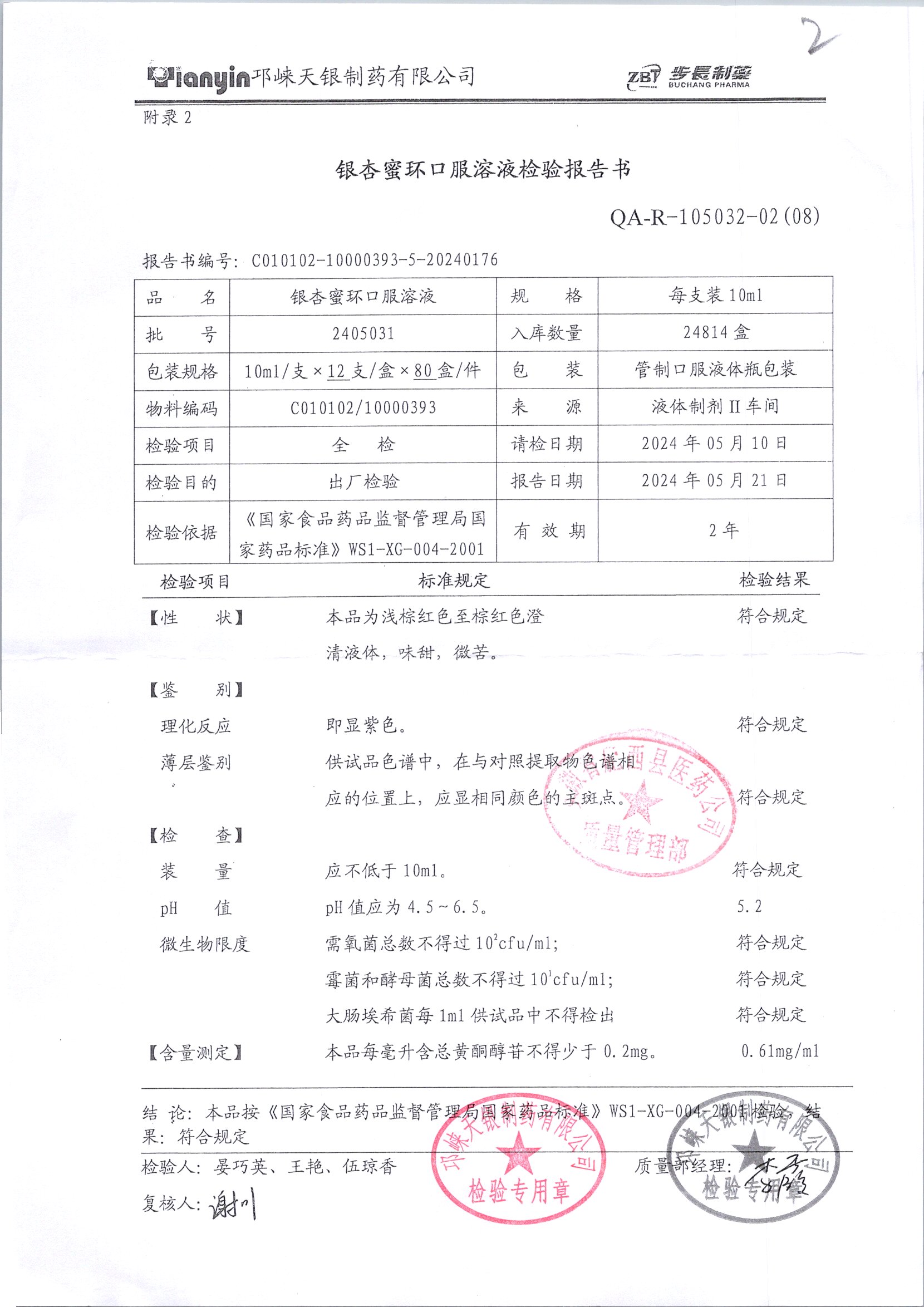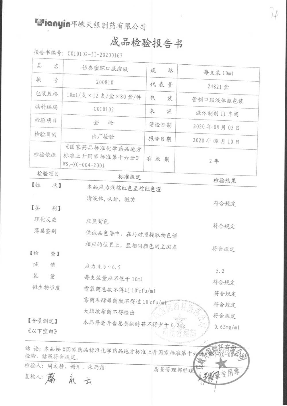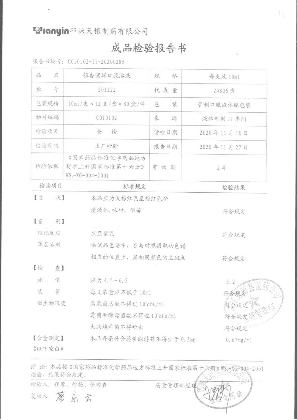 银杏蜜环口服溶液 | 10ml*12支 | 180631(3/4) | 查看详情 |