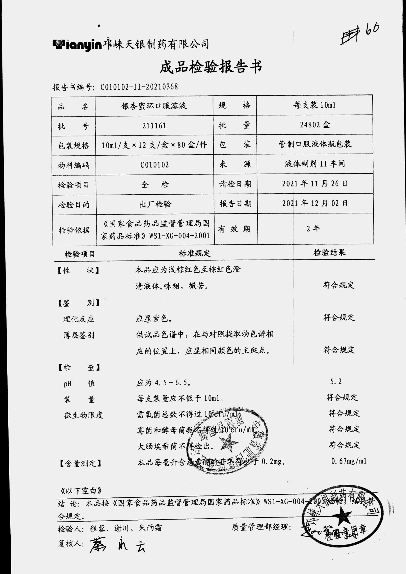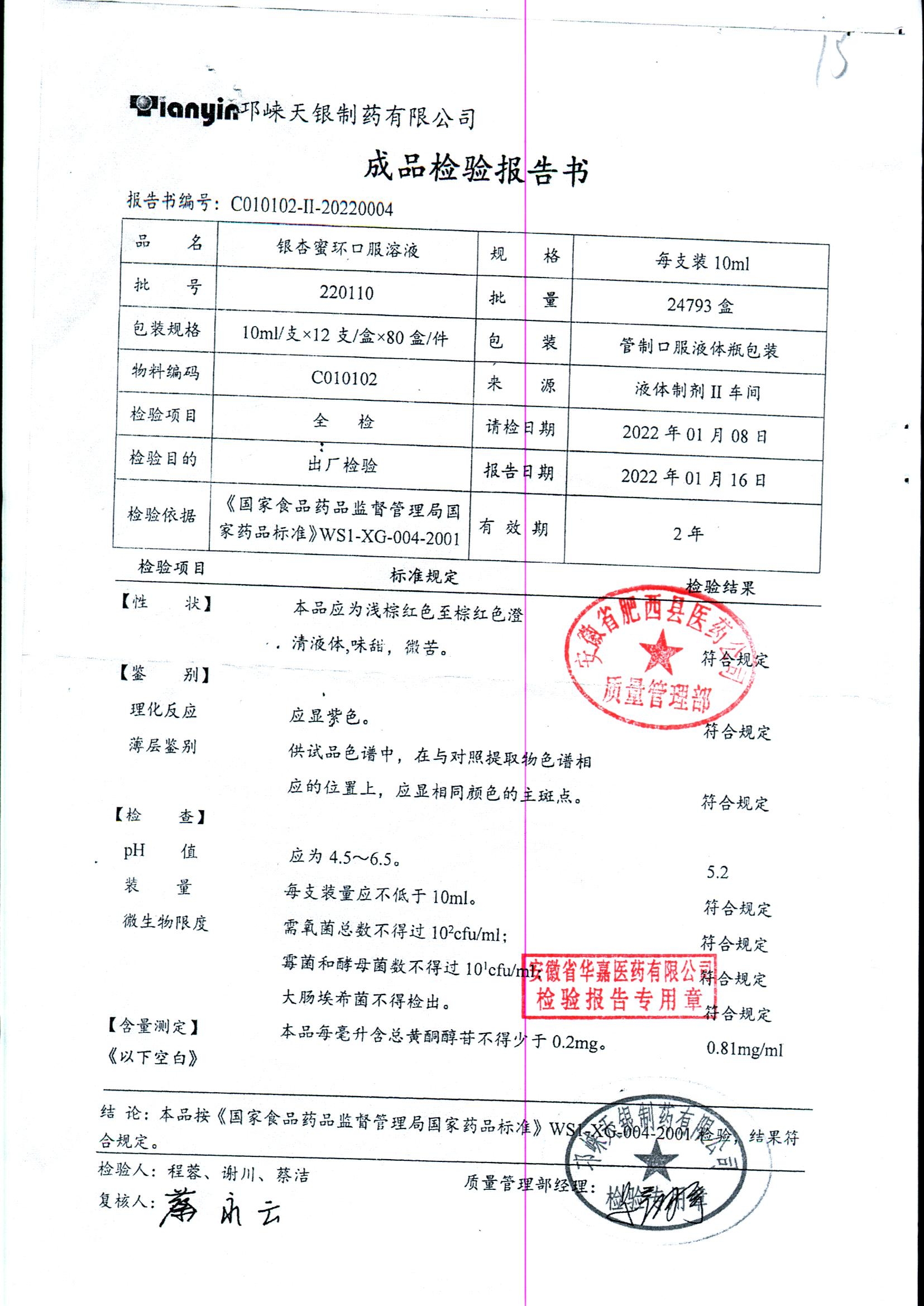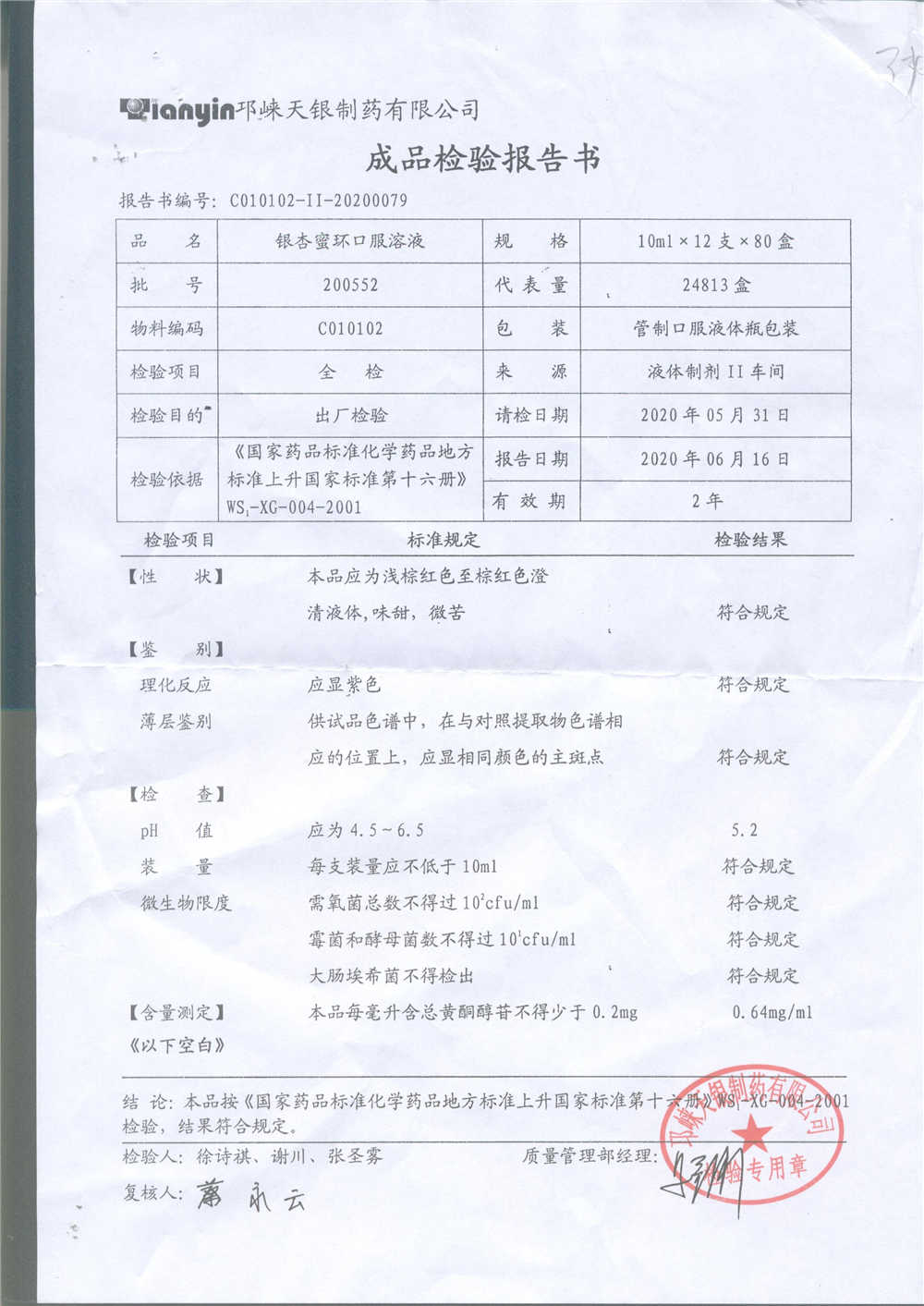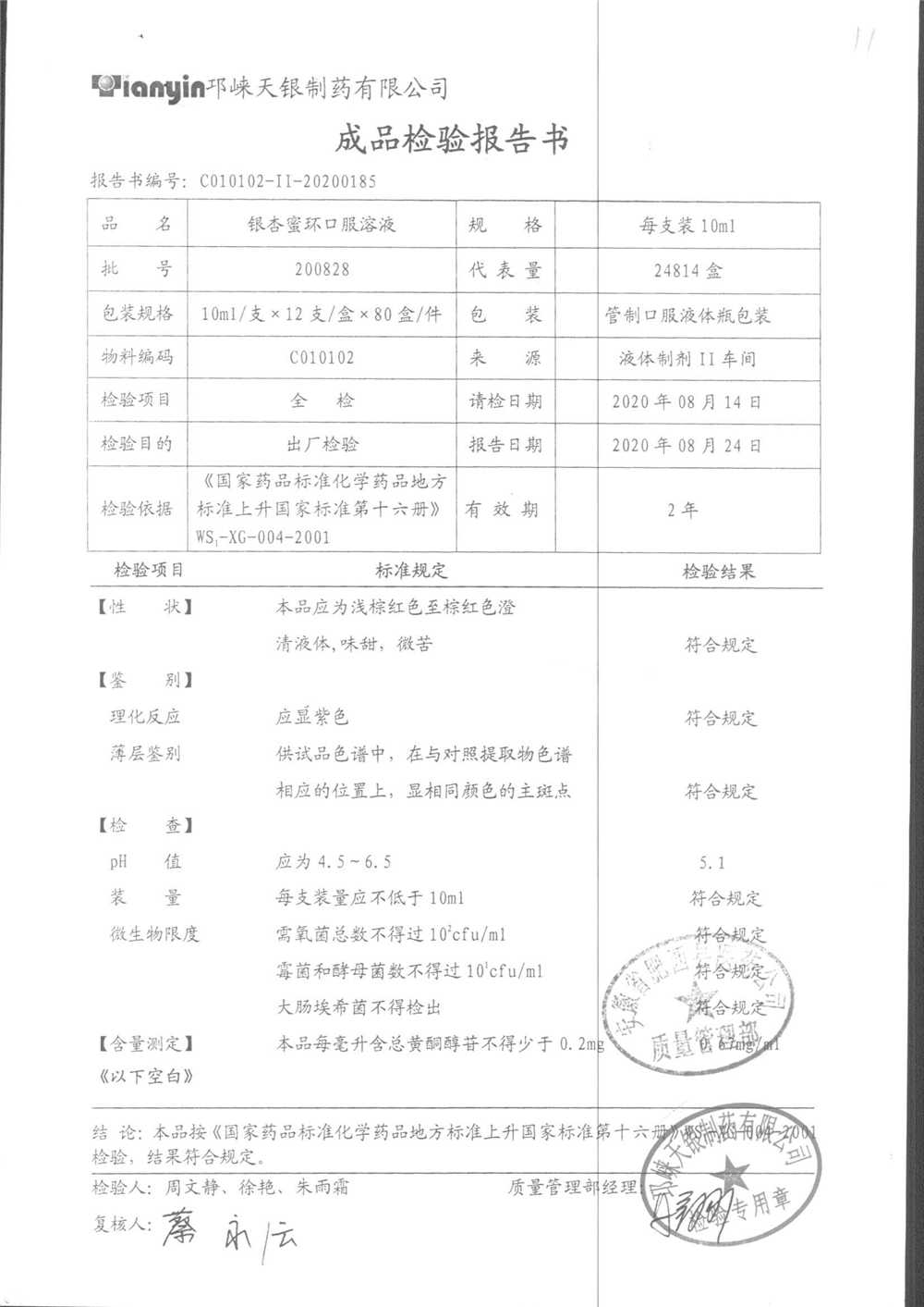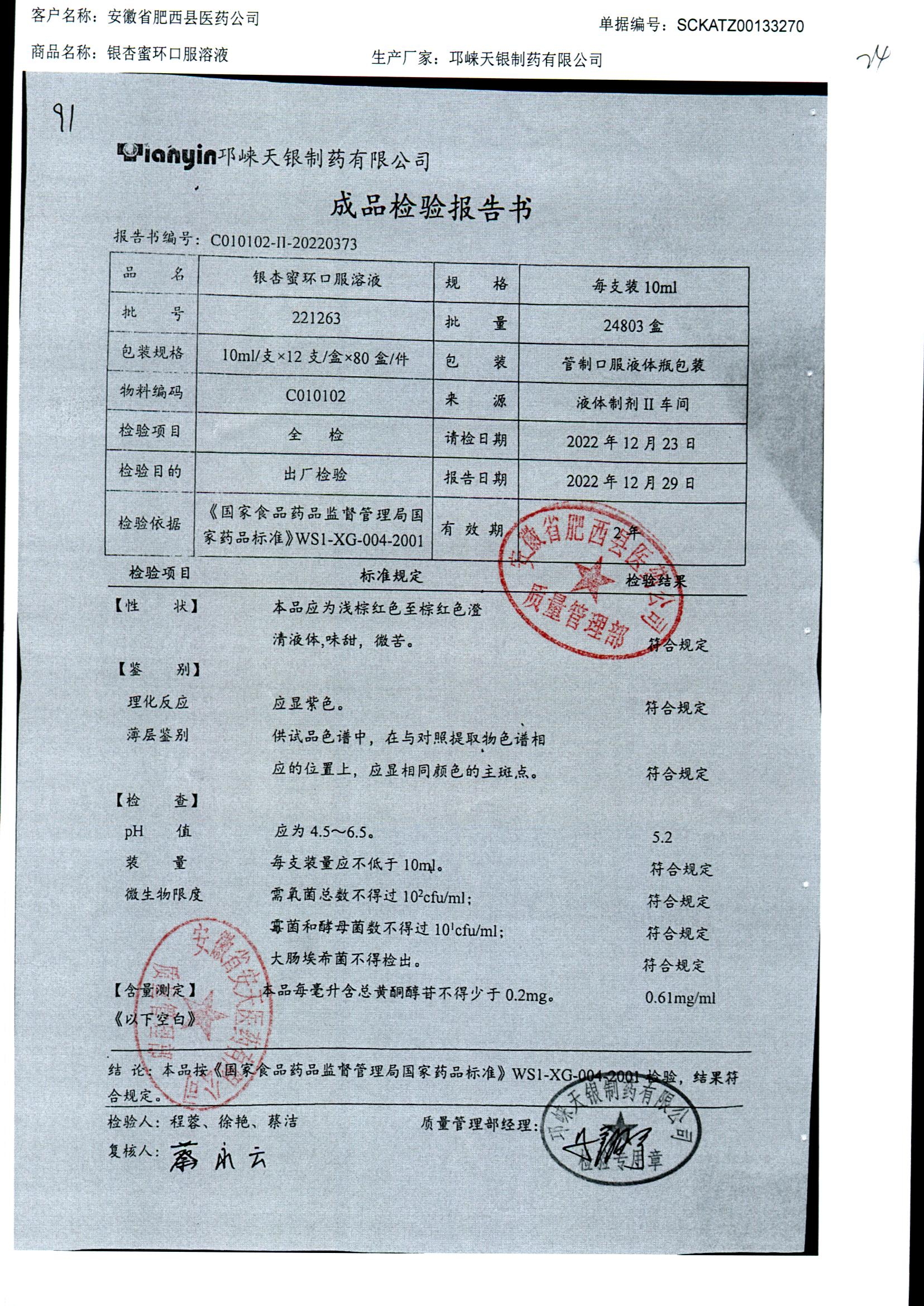银杏蜜环口服溶液 | 10ml*12支 | 180631(3/4) | 查看详情 |