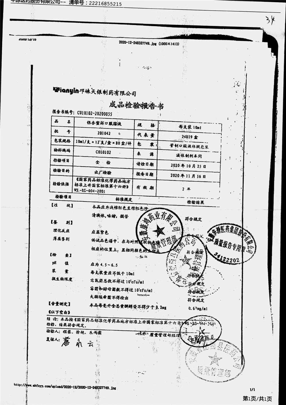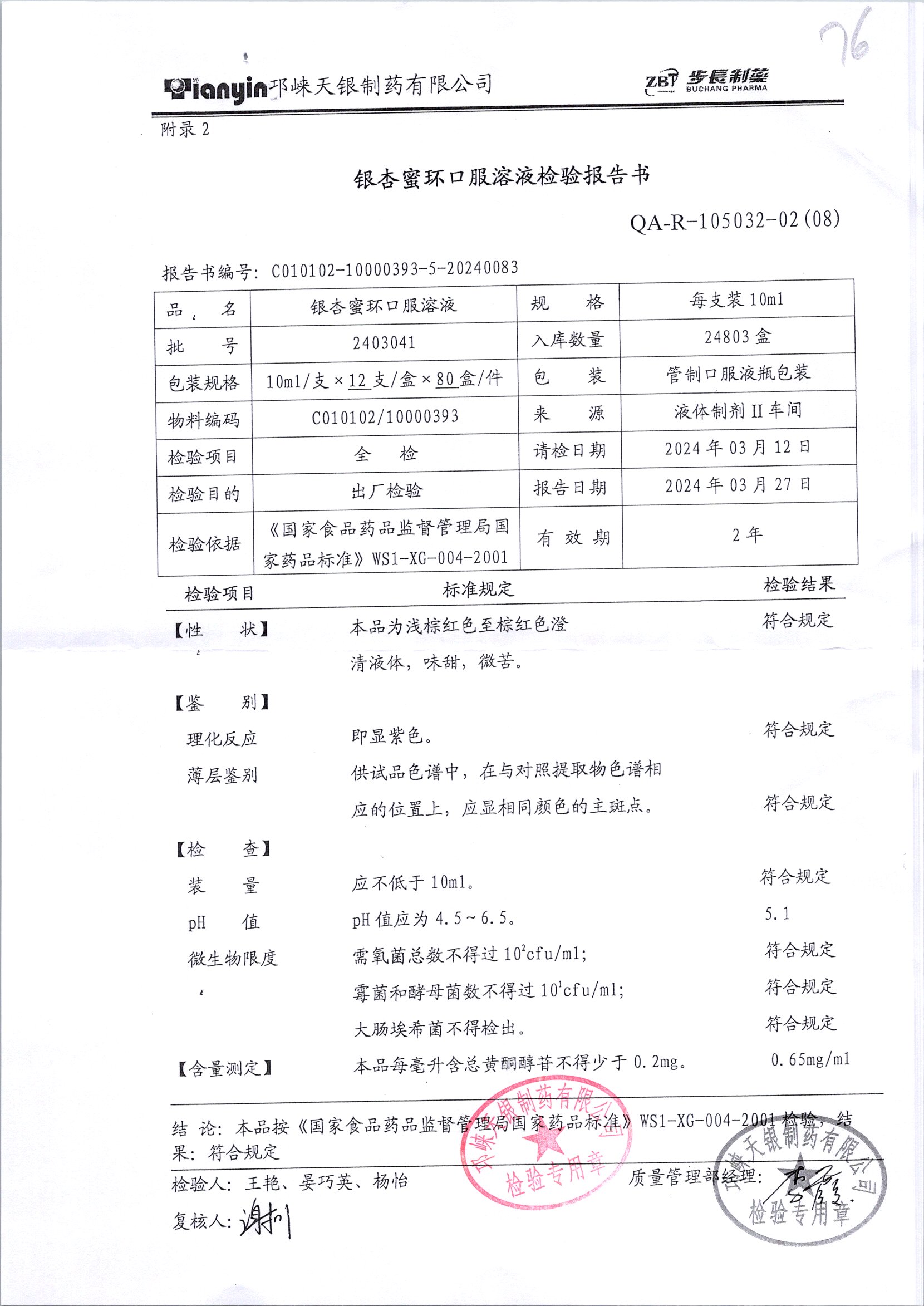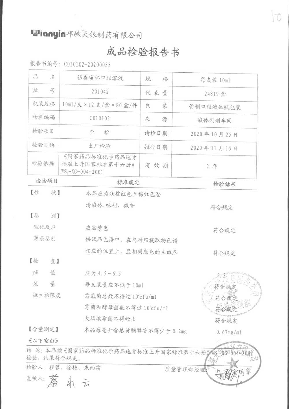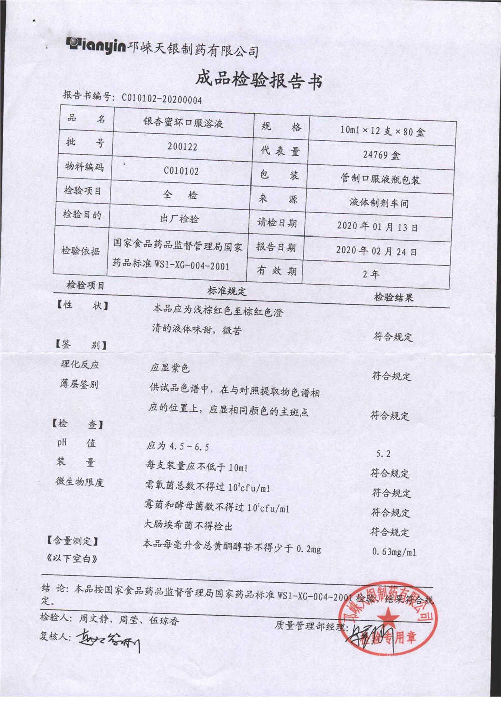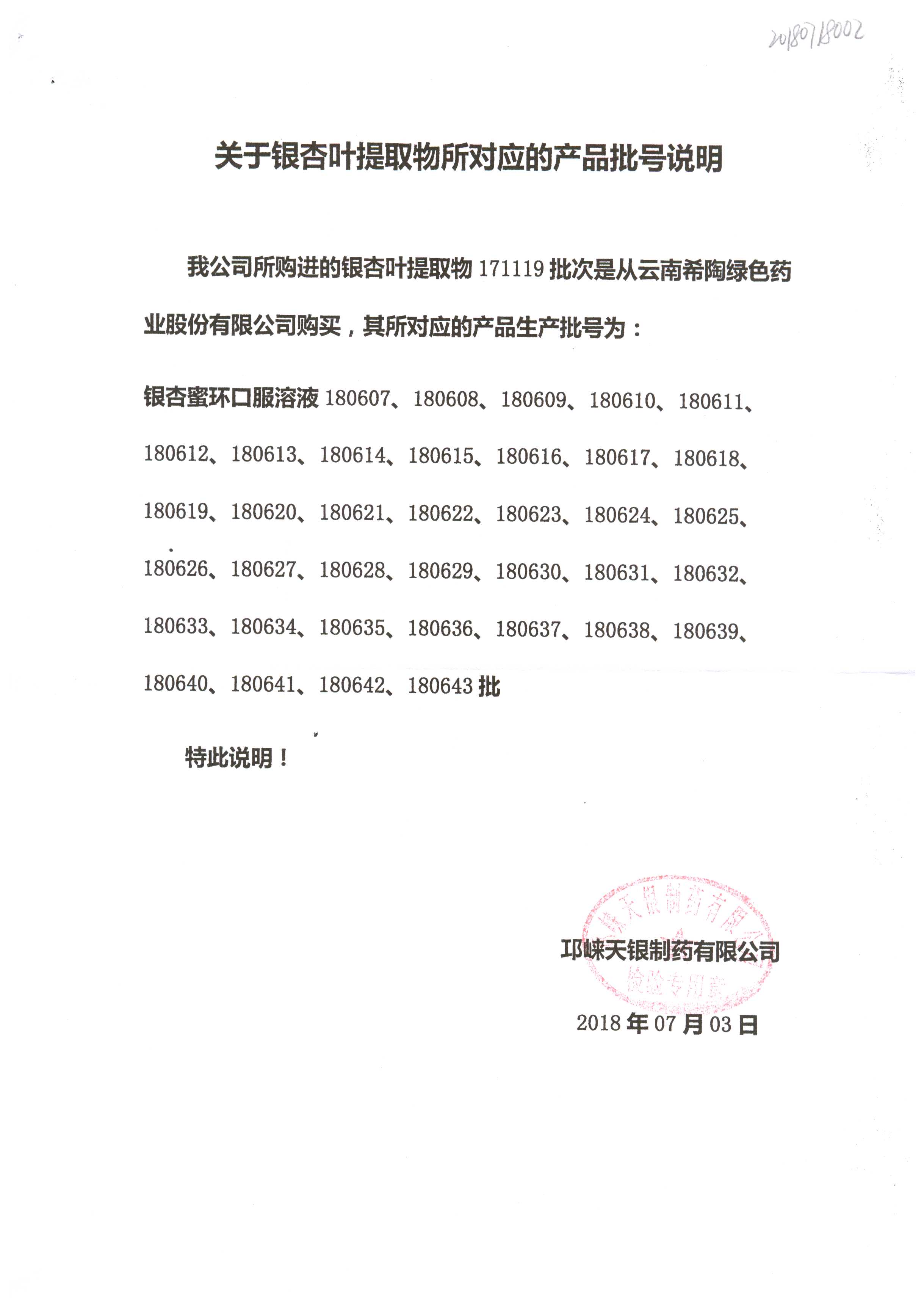 银杏蜜环口服溶液 | 10ml*12支 | 180631(3/4) | 查看详情 |