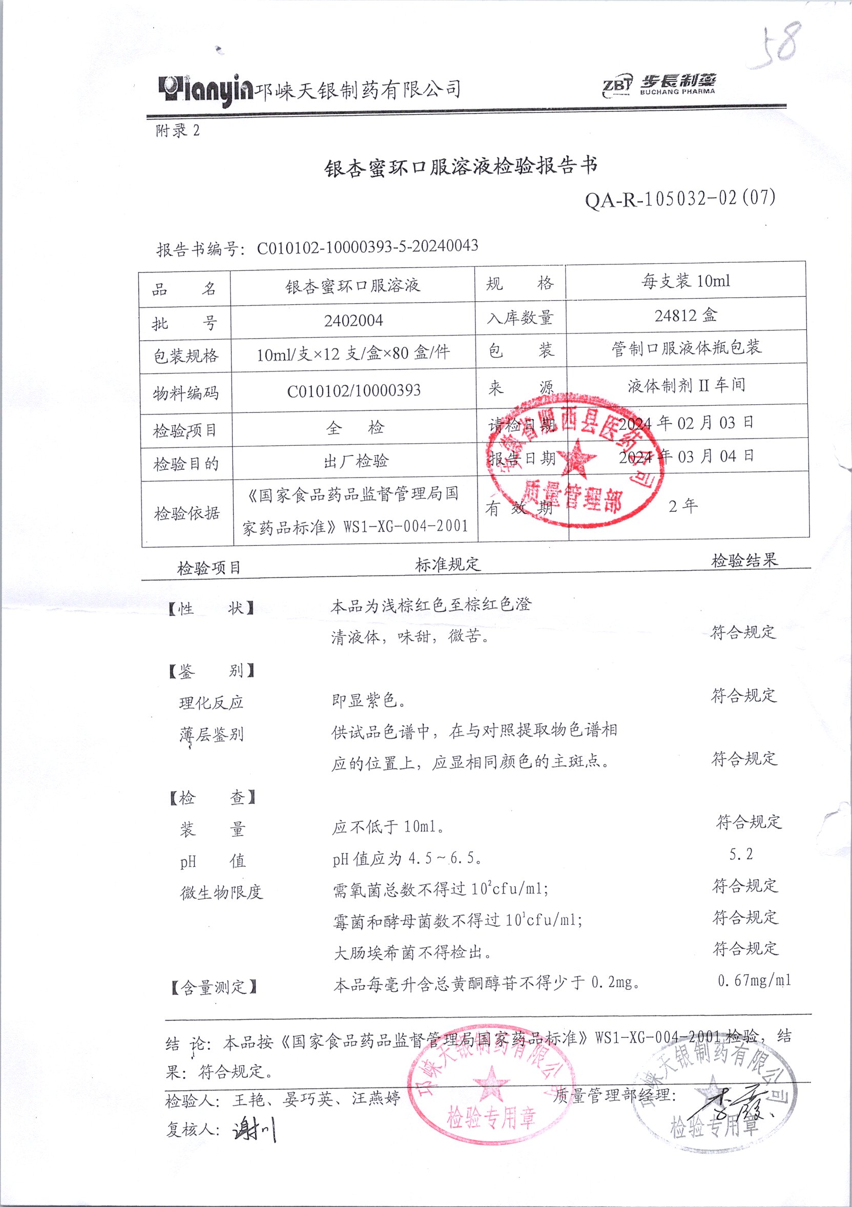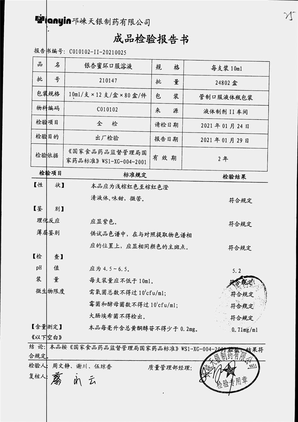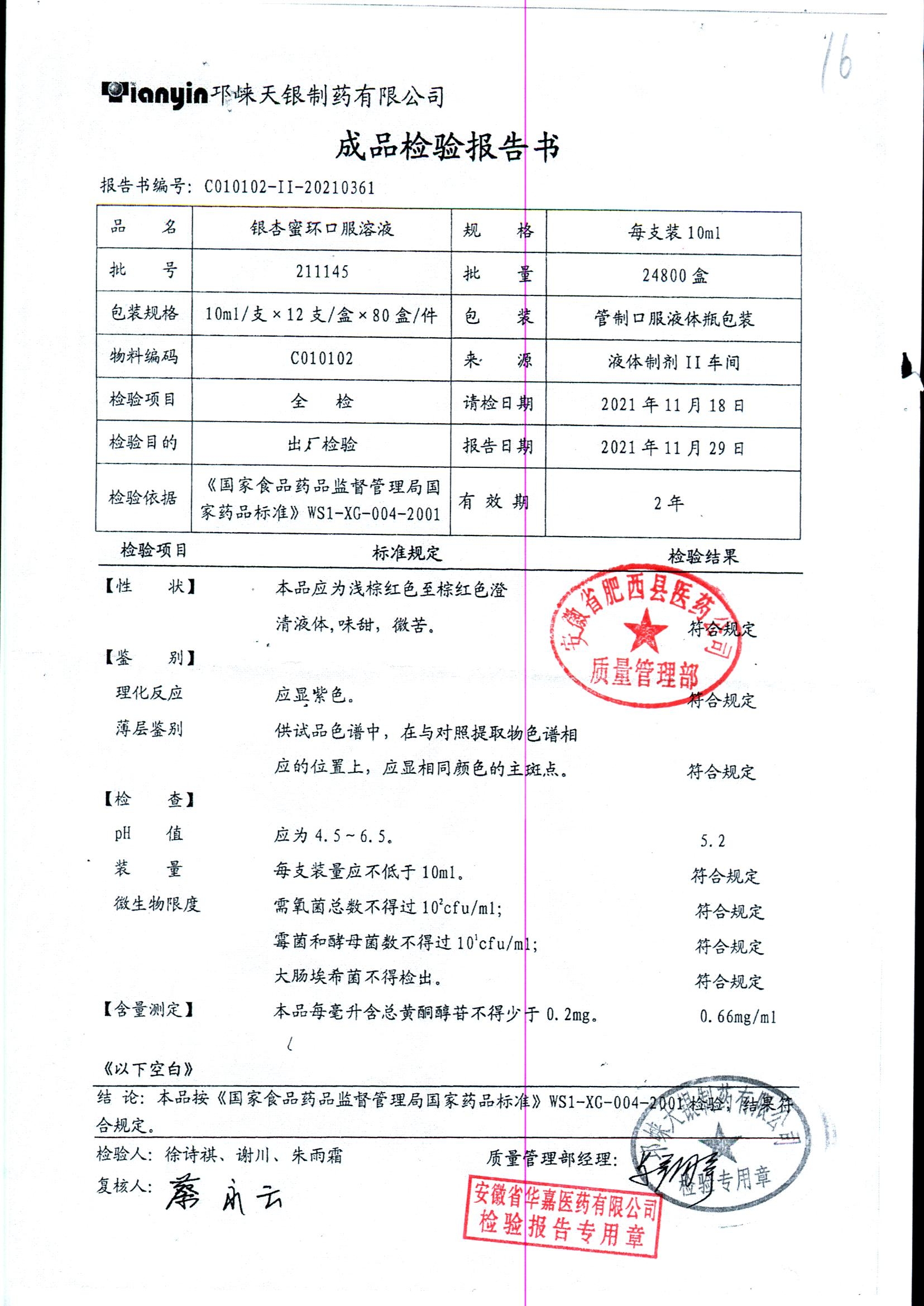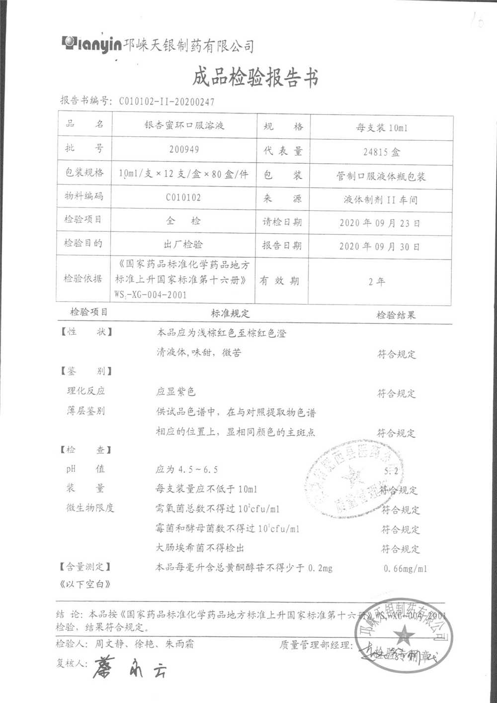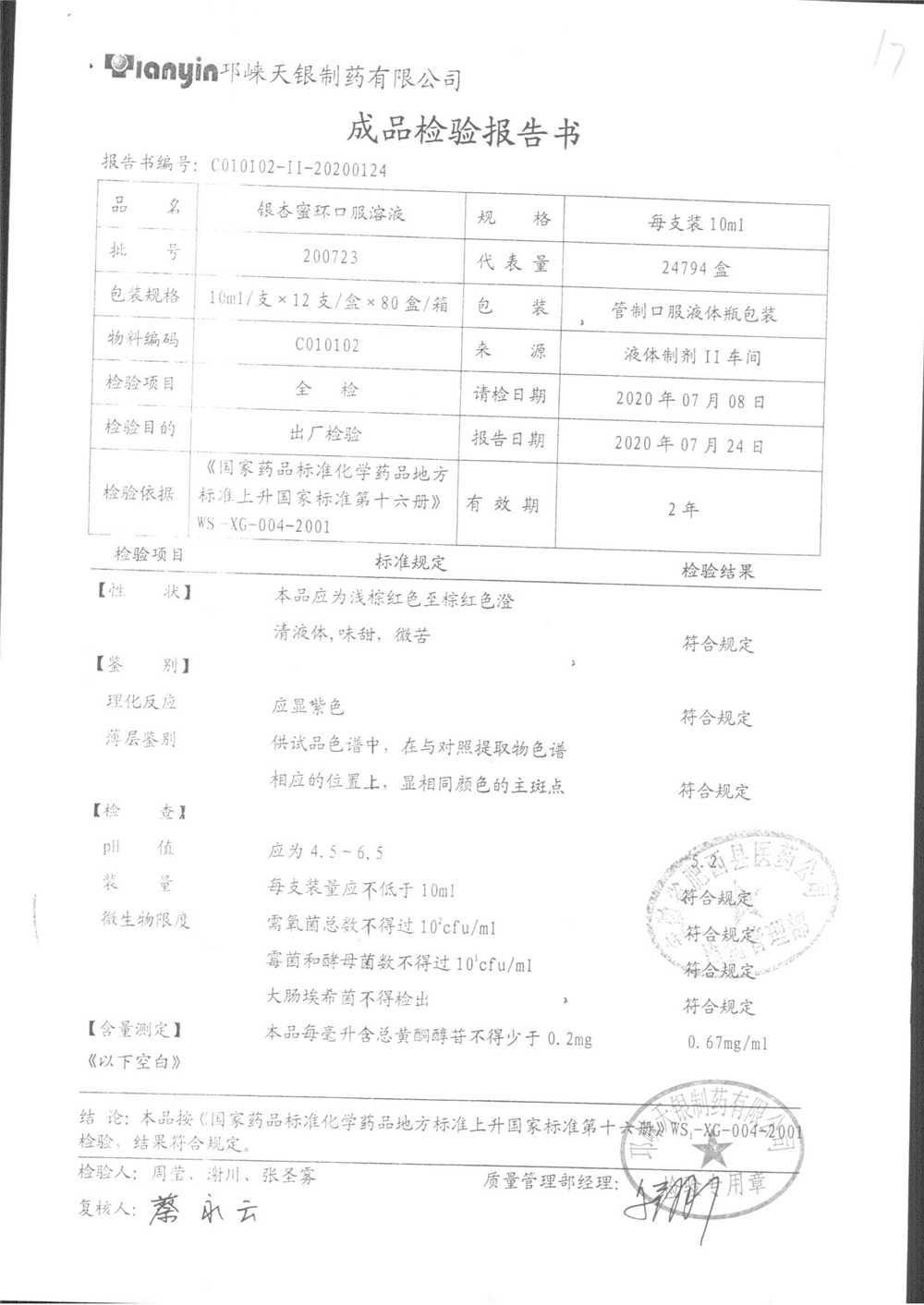银杏蜜环口服溶液 | 10ml*12支 | 180631(3/4) | 查看详情 |