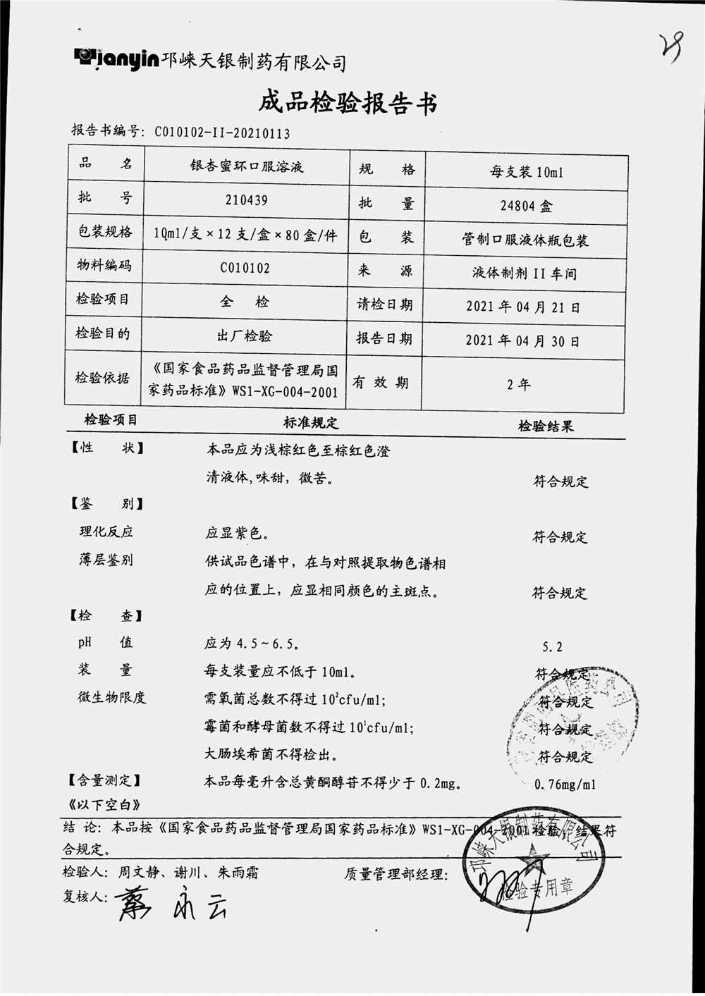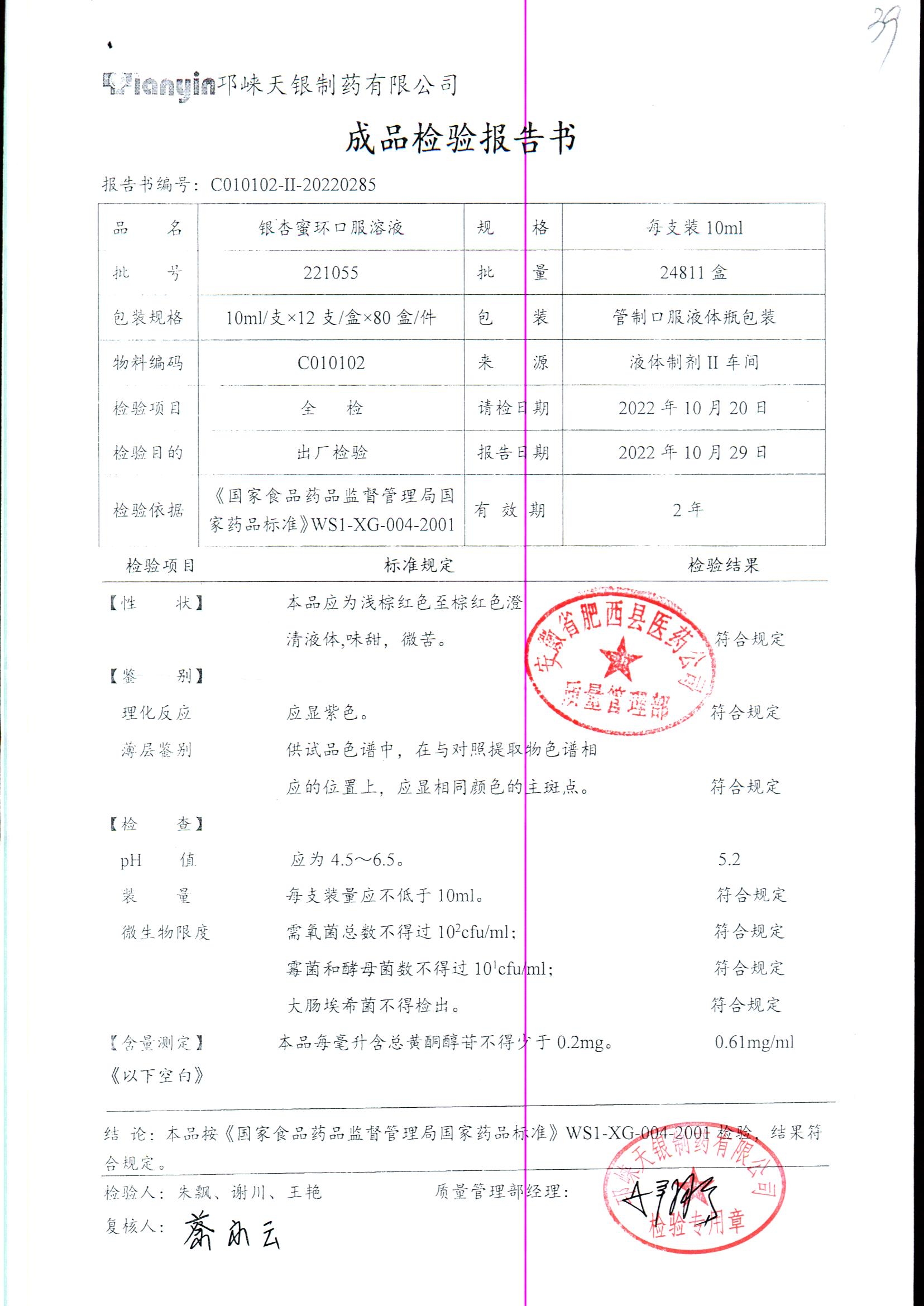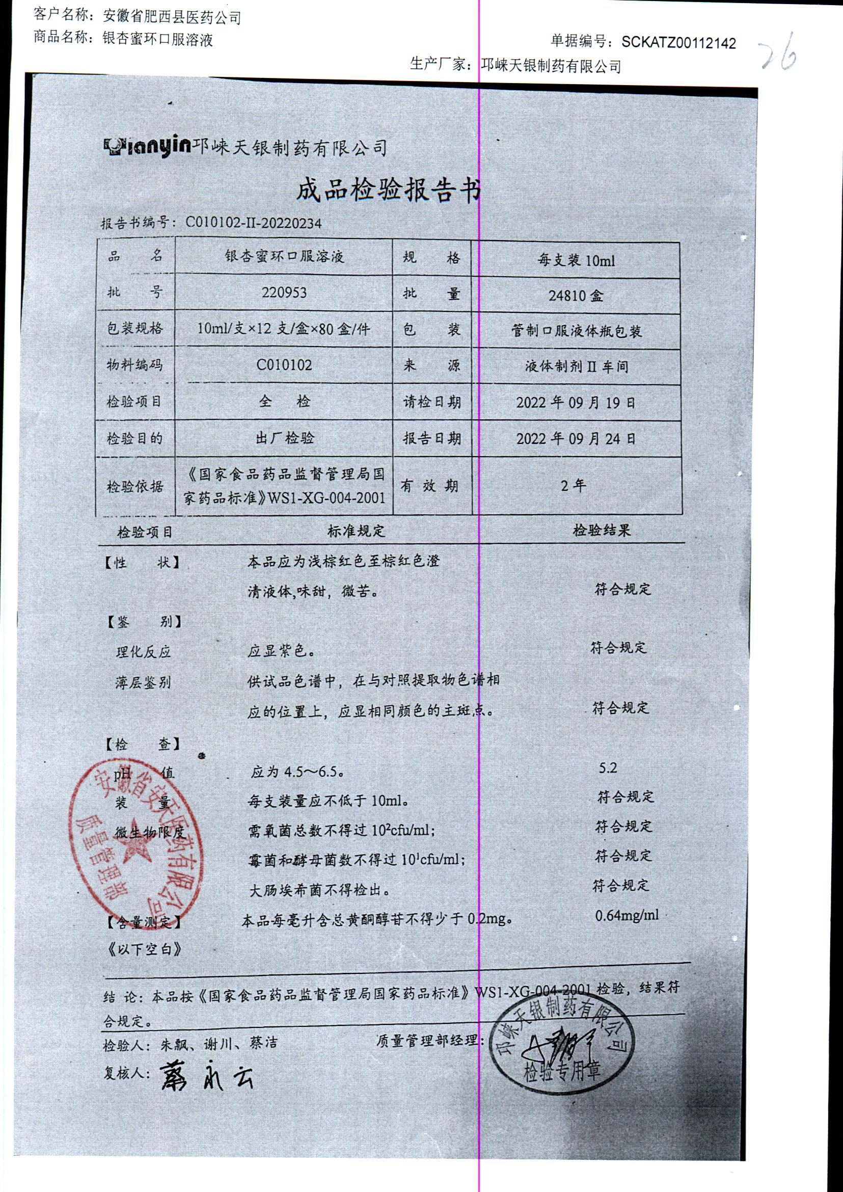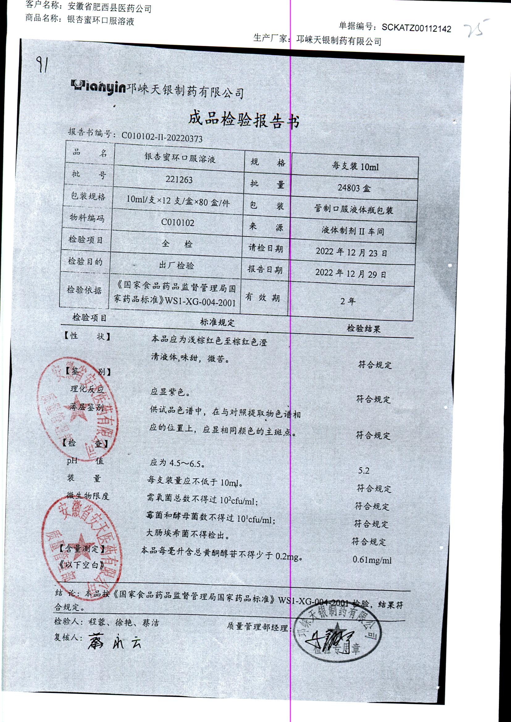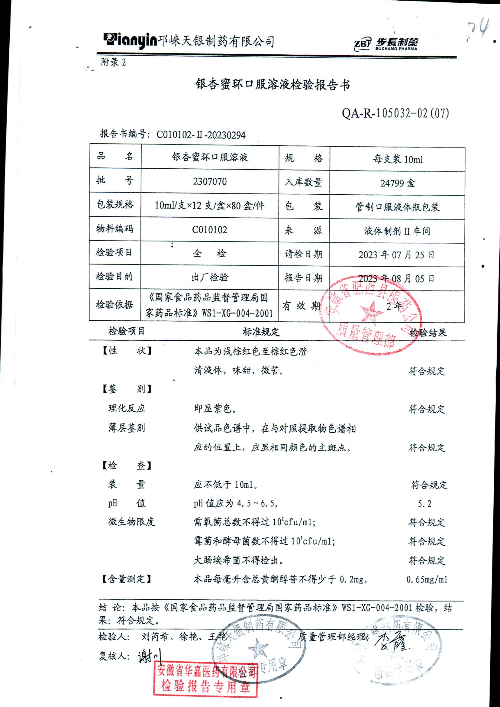 银杏蜜环口服溶液 | 10ml*12支 | 180631(3/4) | 查看详情 |