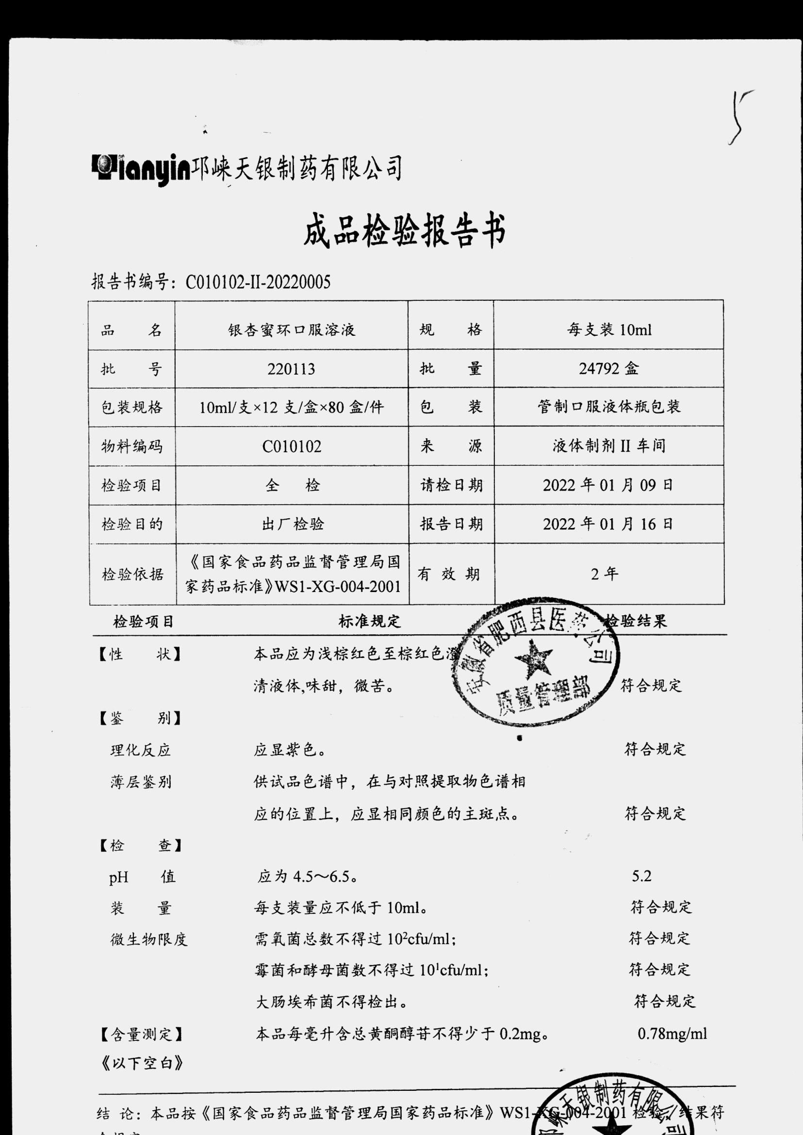 银杏蜜环口服溶液 | 10ml*12支 | 220615 | 查看详情 |