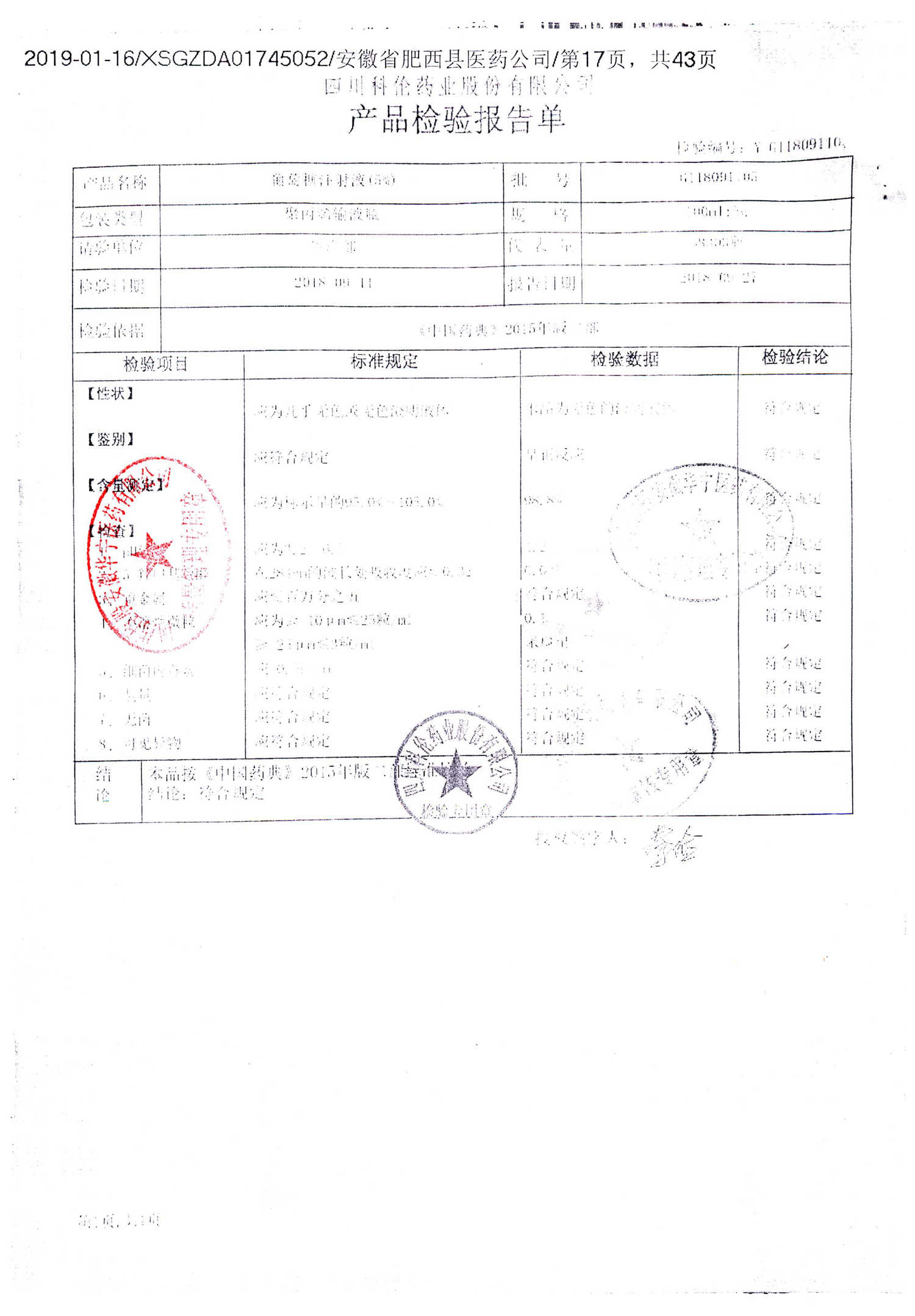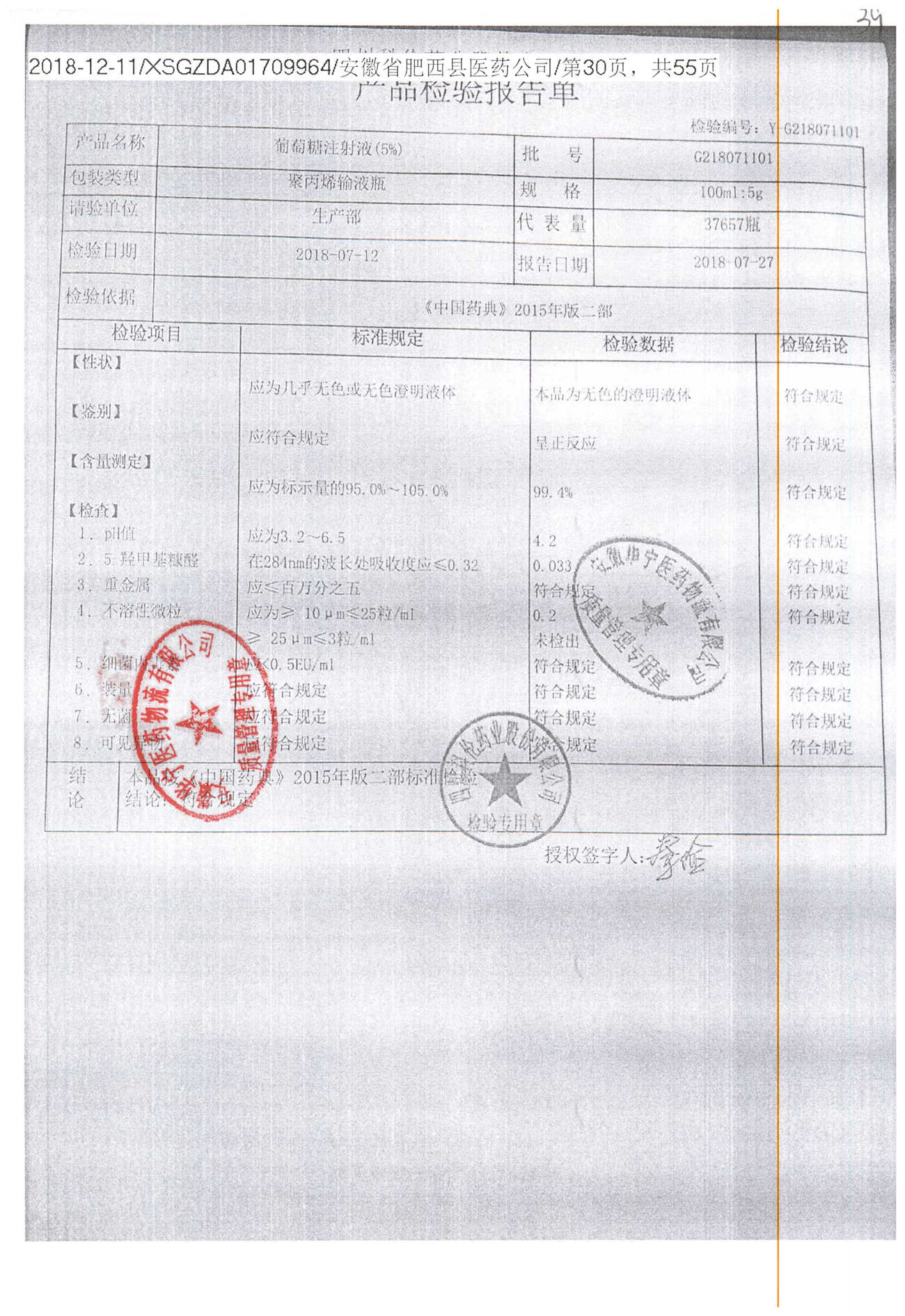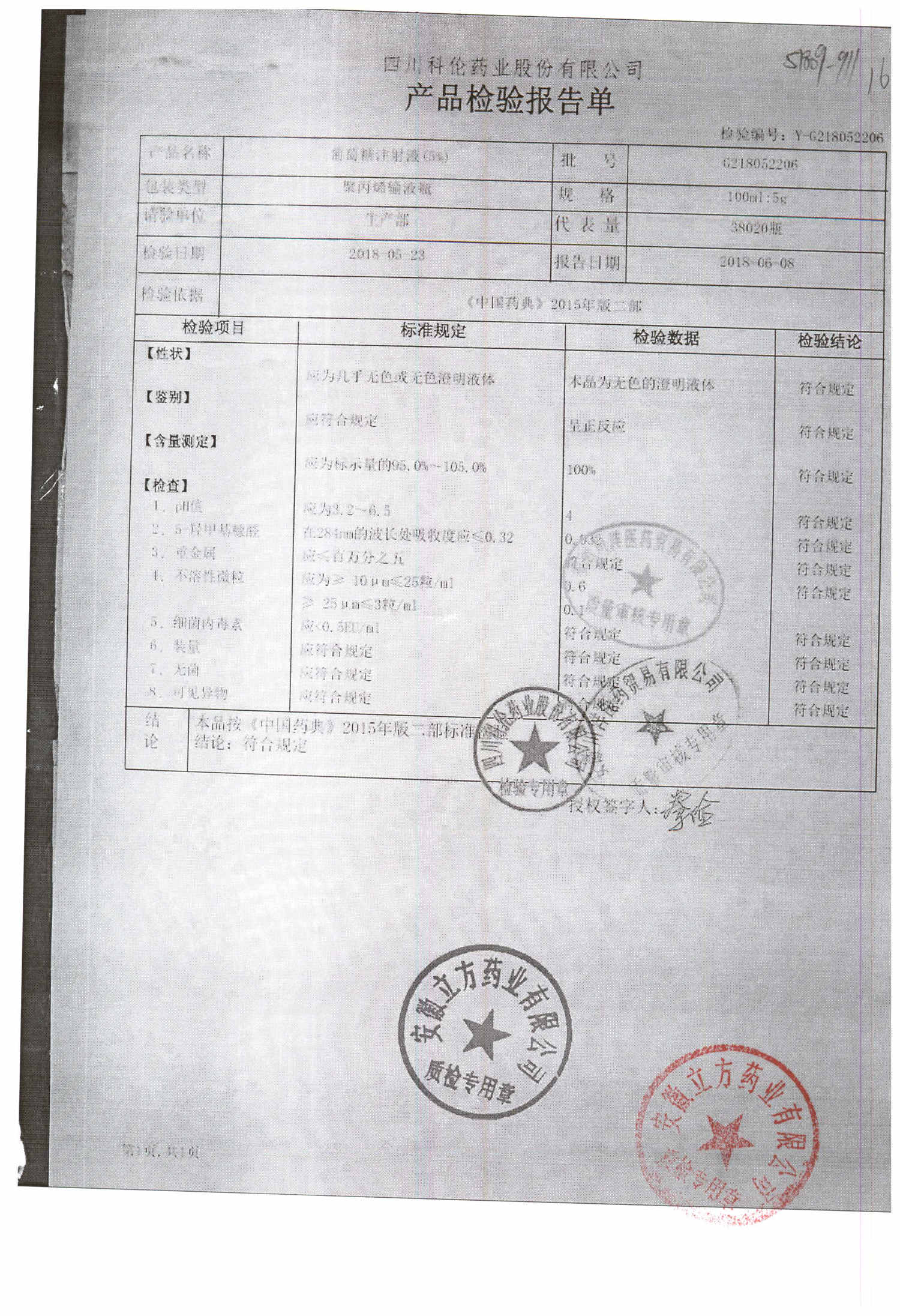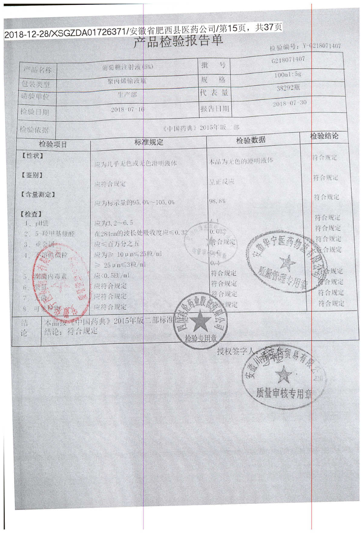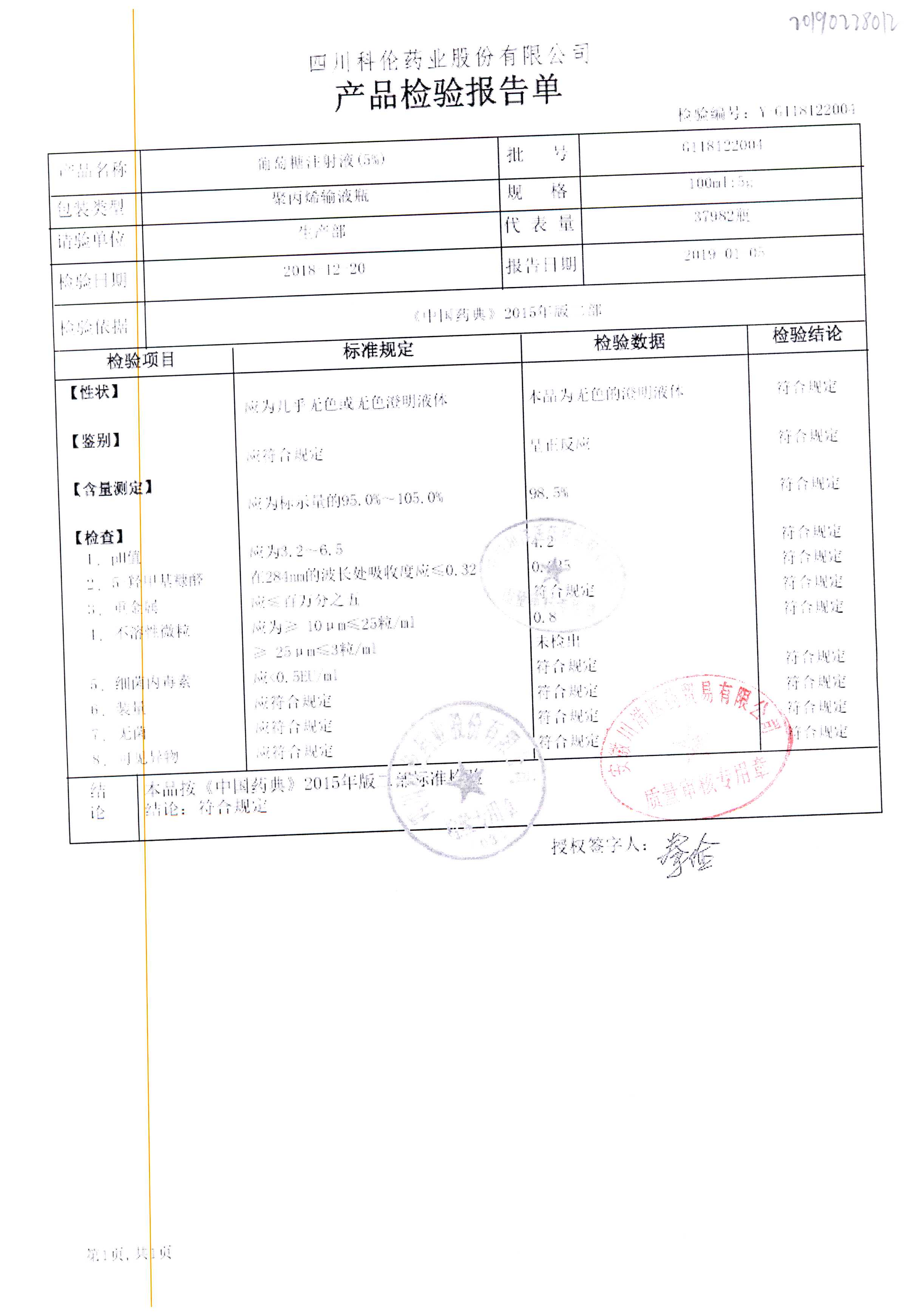 葡萄糖注射液 | 100ml:5g | G218070405 | 查看详情 |