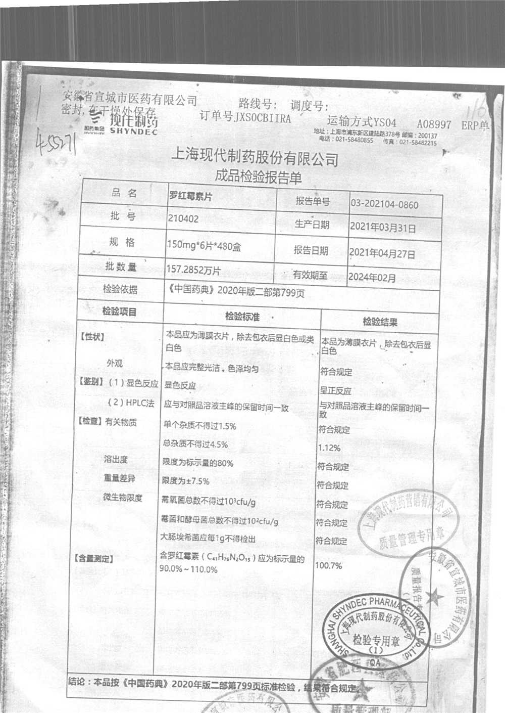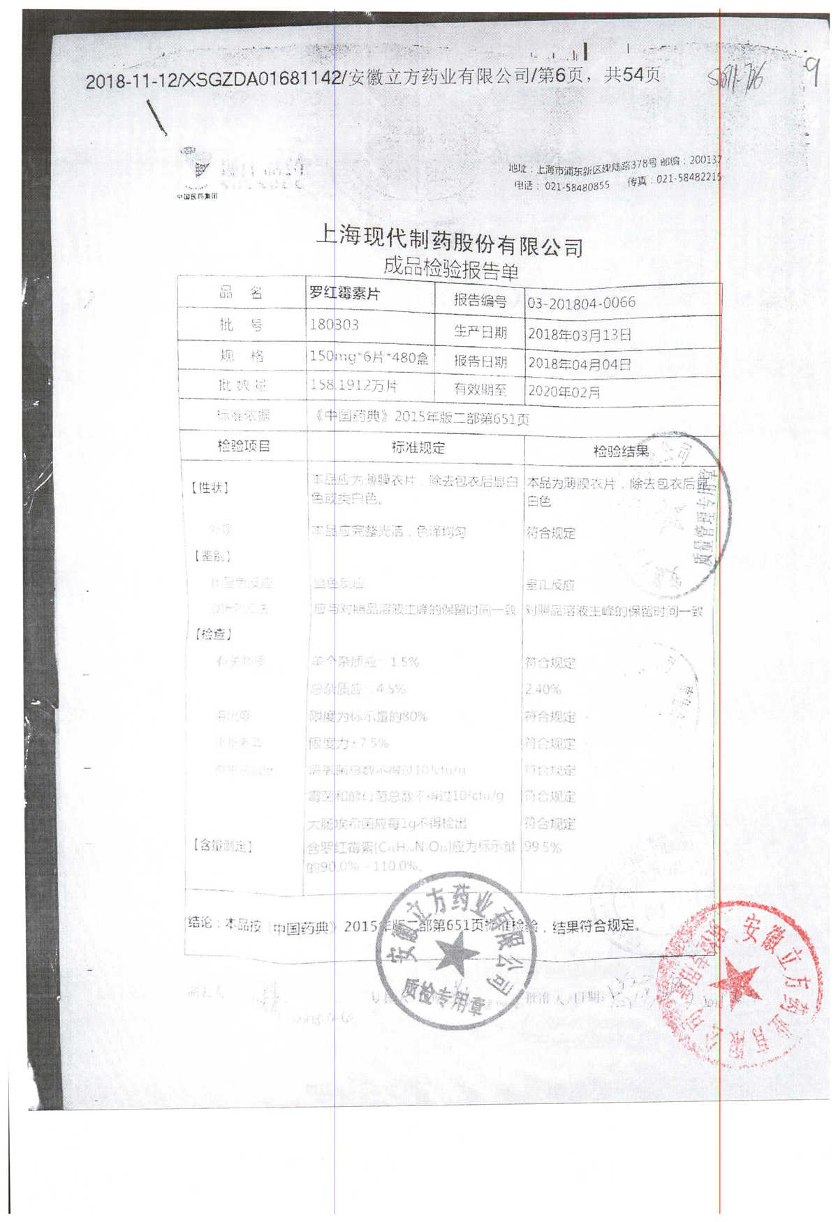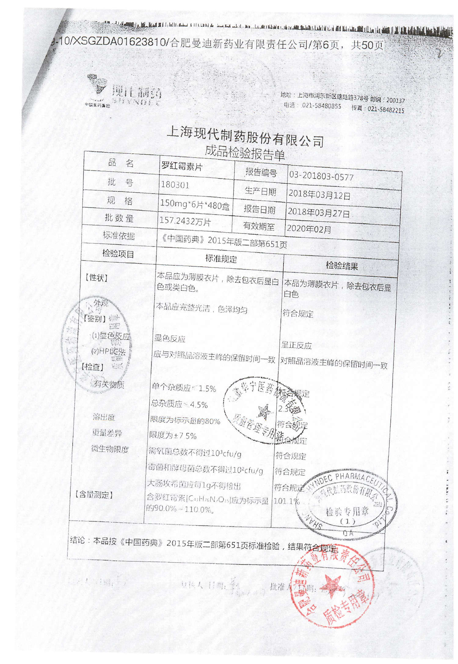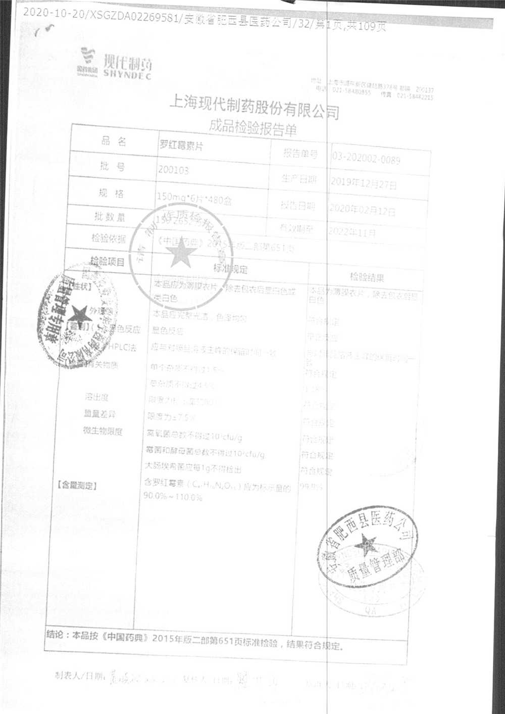 罗红霉素片 | 150mg*6片 | 210401 | 查看详情 |