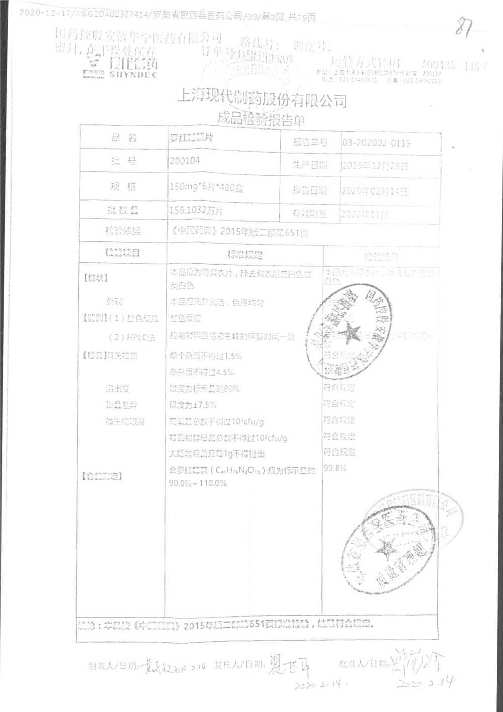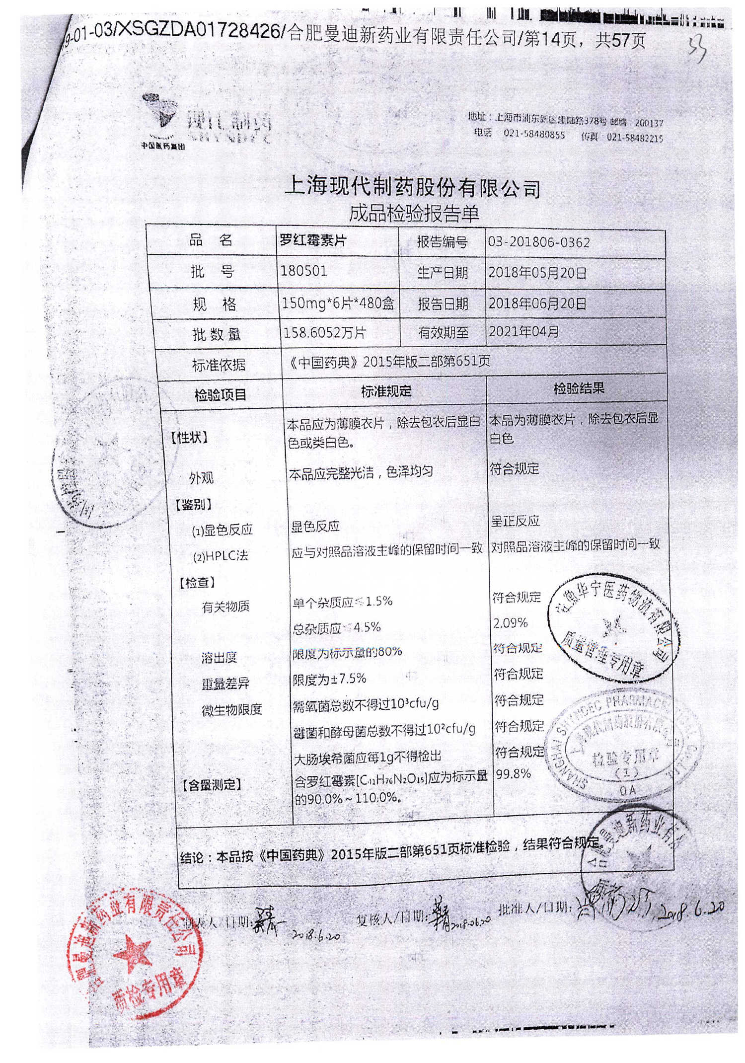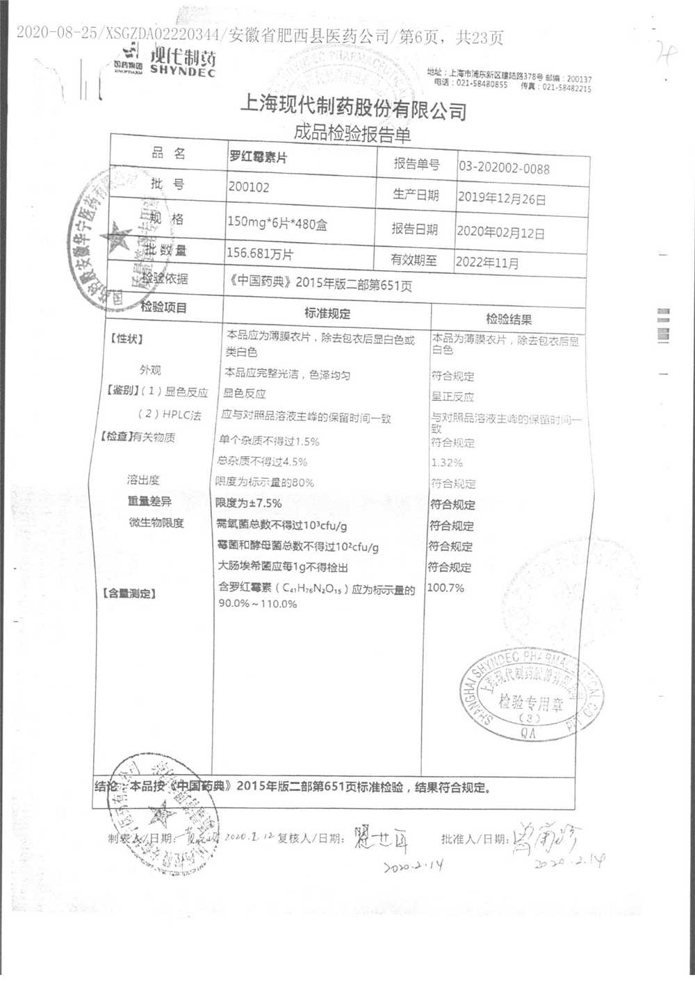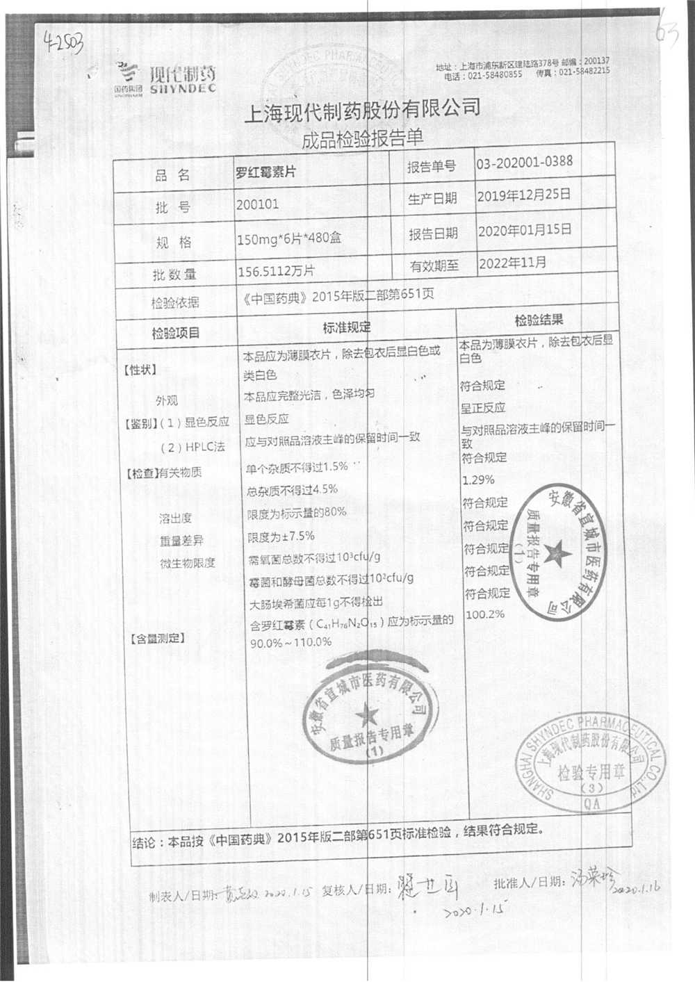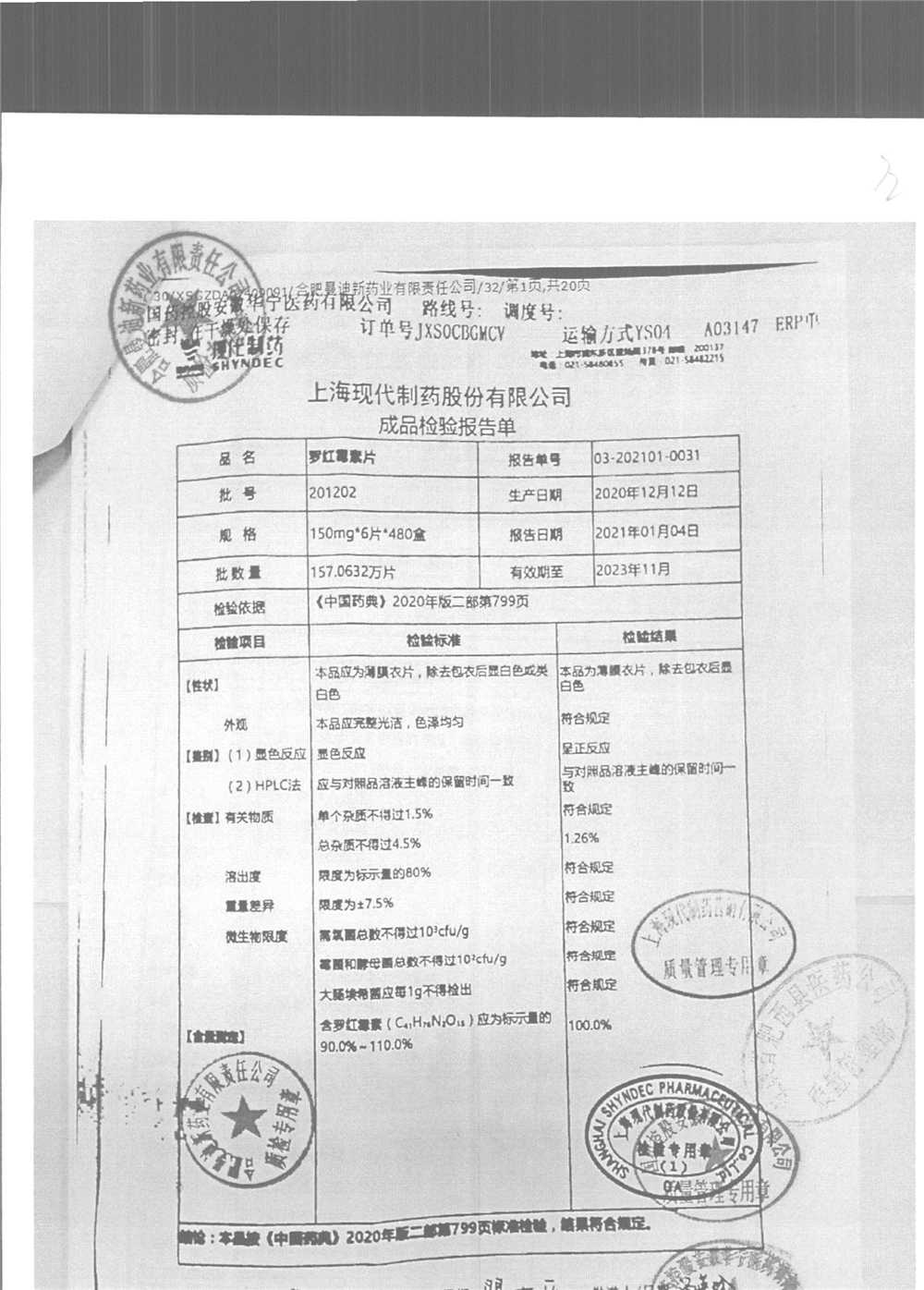 罗红霉素片 | 150mg*6片 | 210401 | 查看详情 |