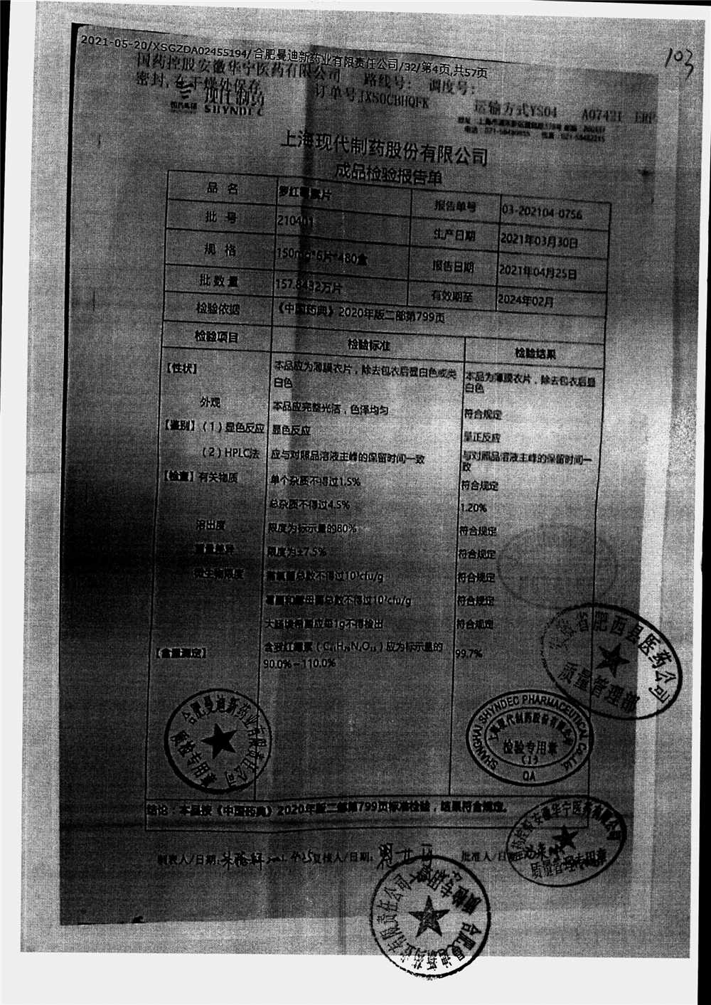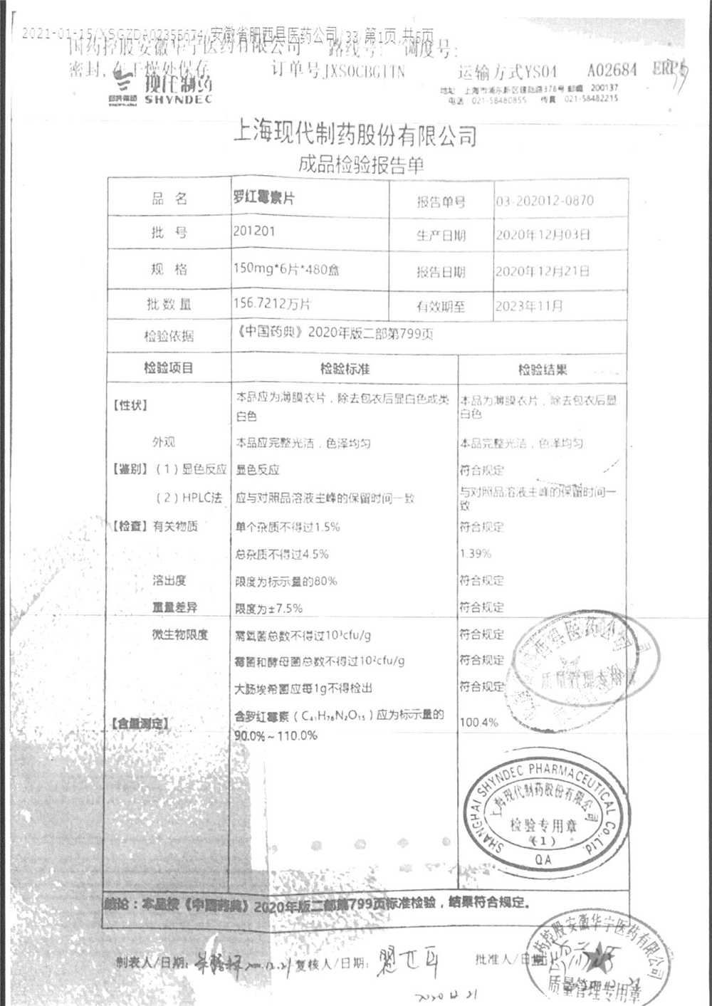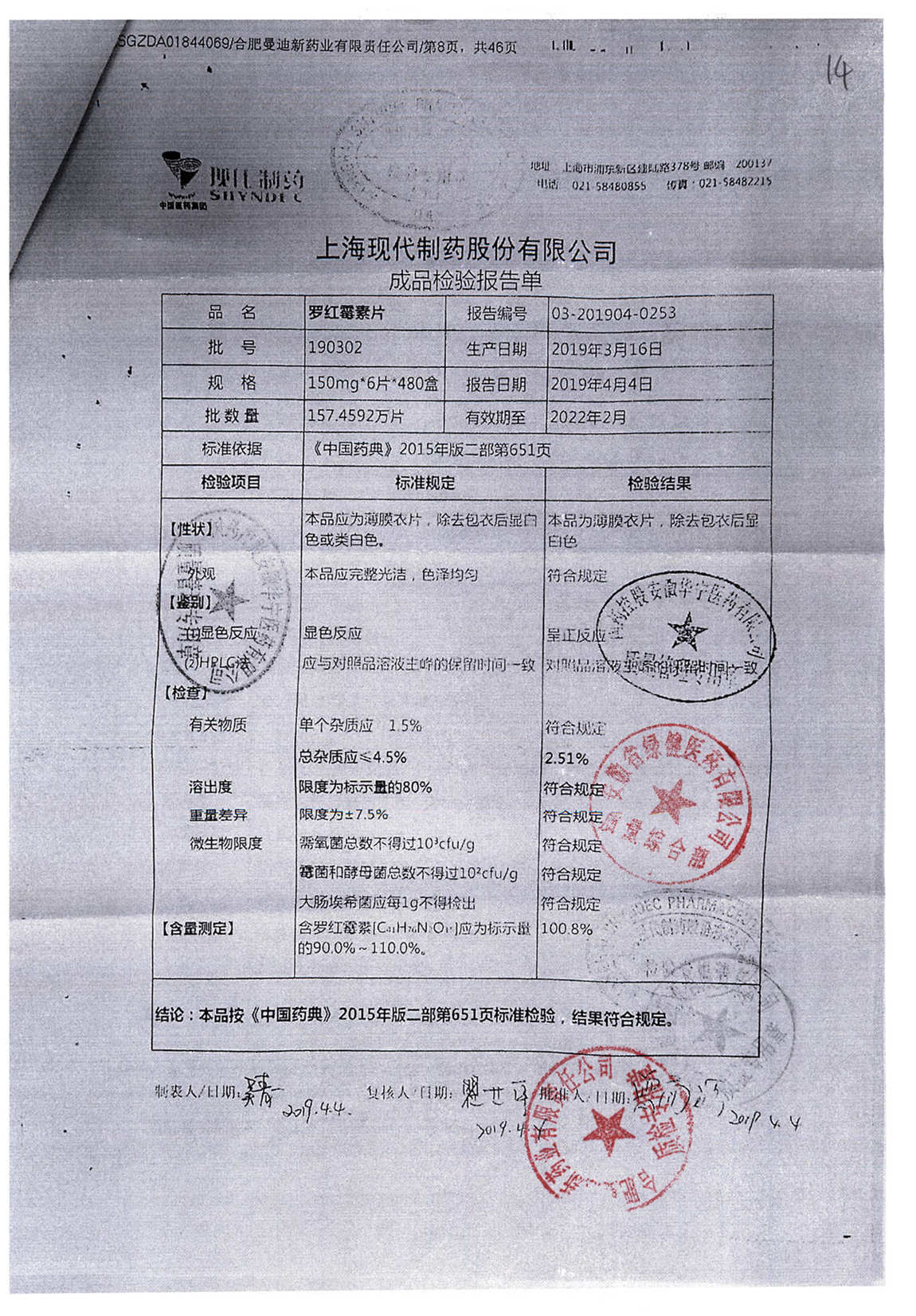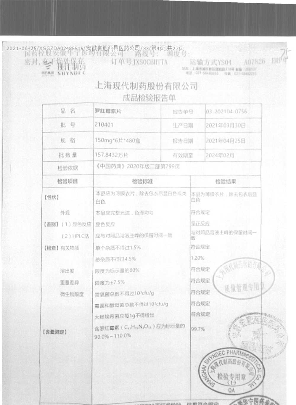 罗红霉素片 | 150mg*6片 | 210401 | 查看详情 |