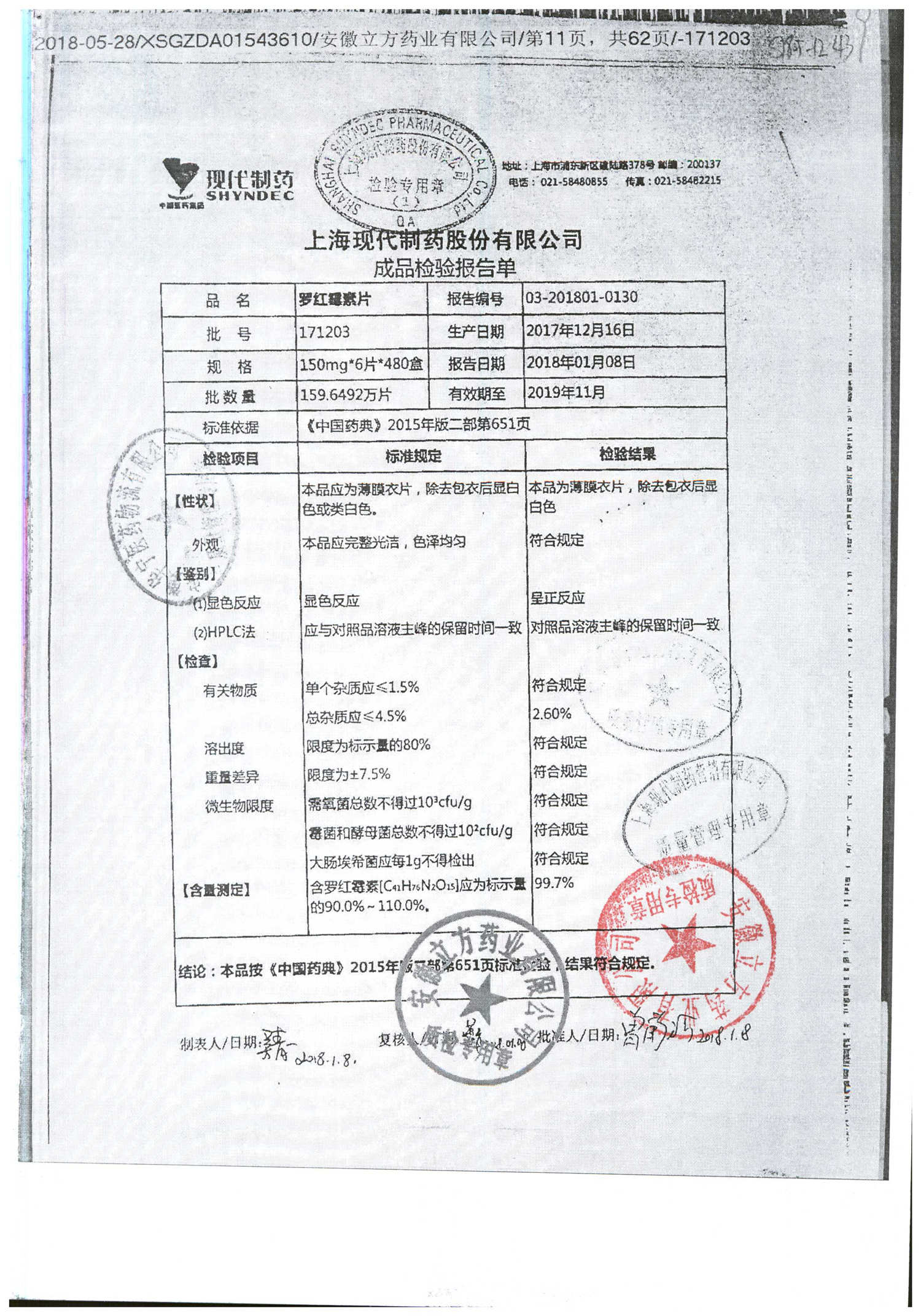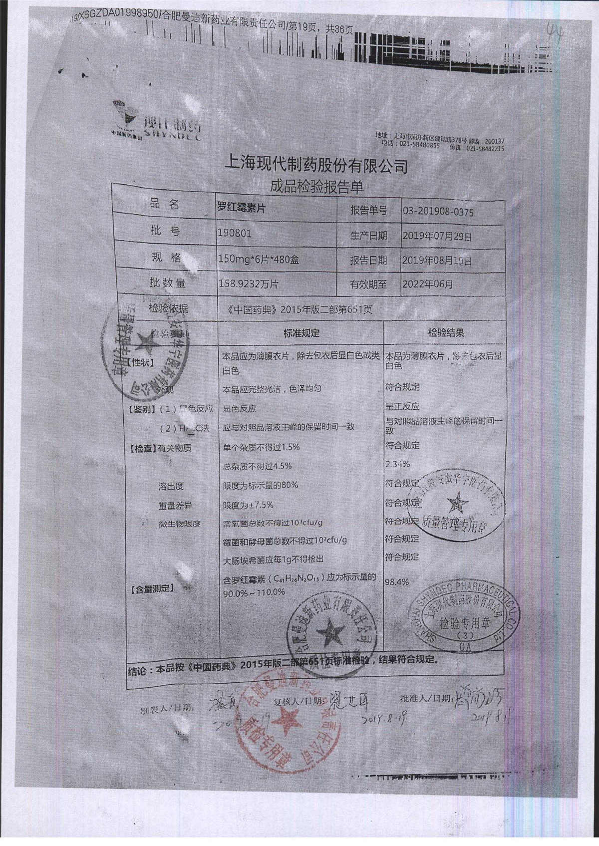 罗红霉素片 | 150mg*6片 | 190801 | 查看详情 |