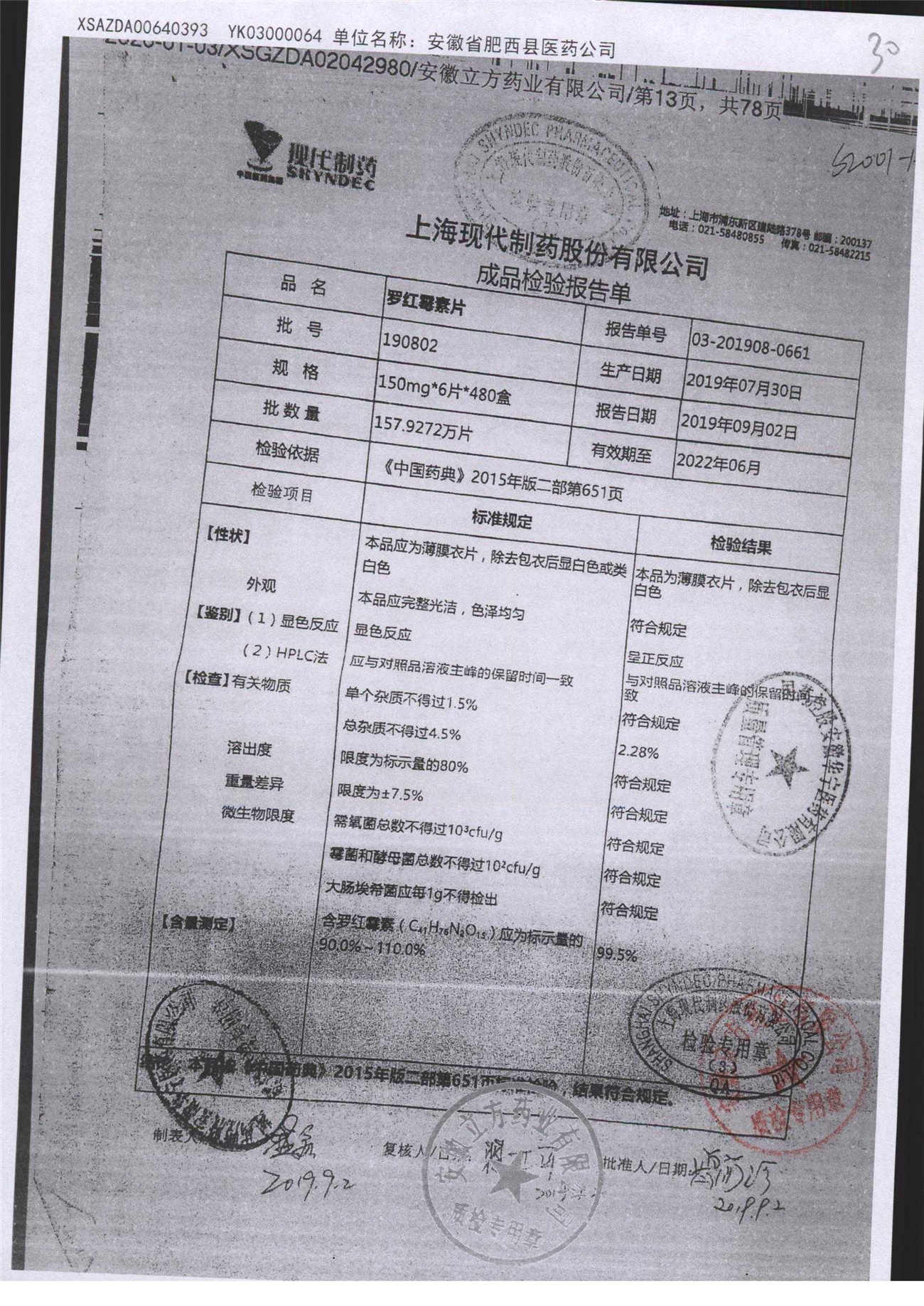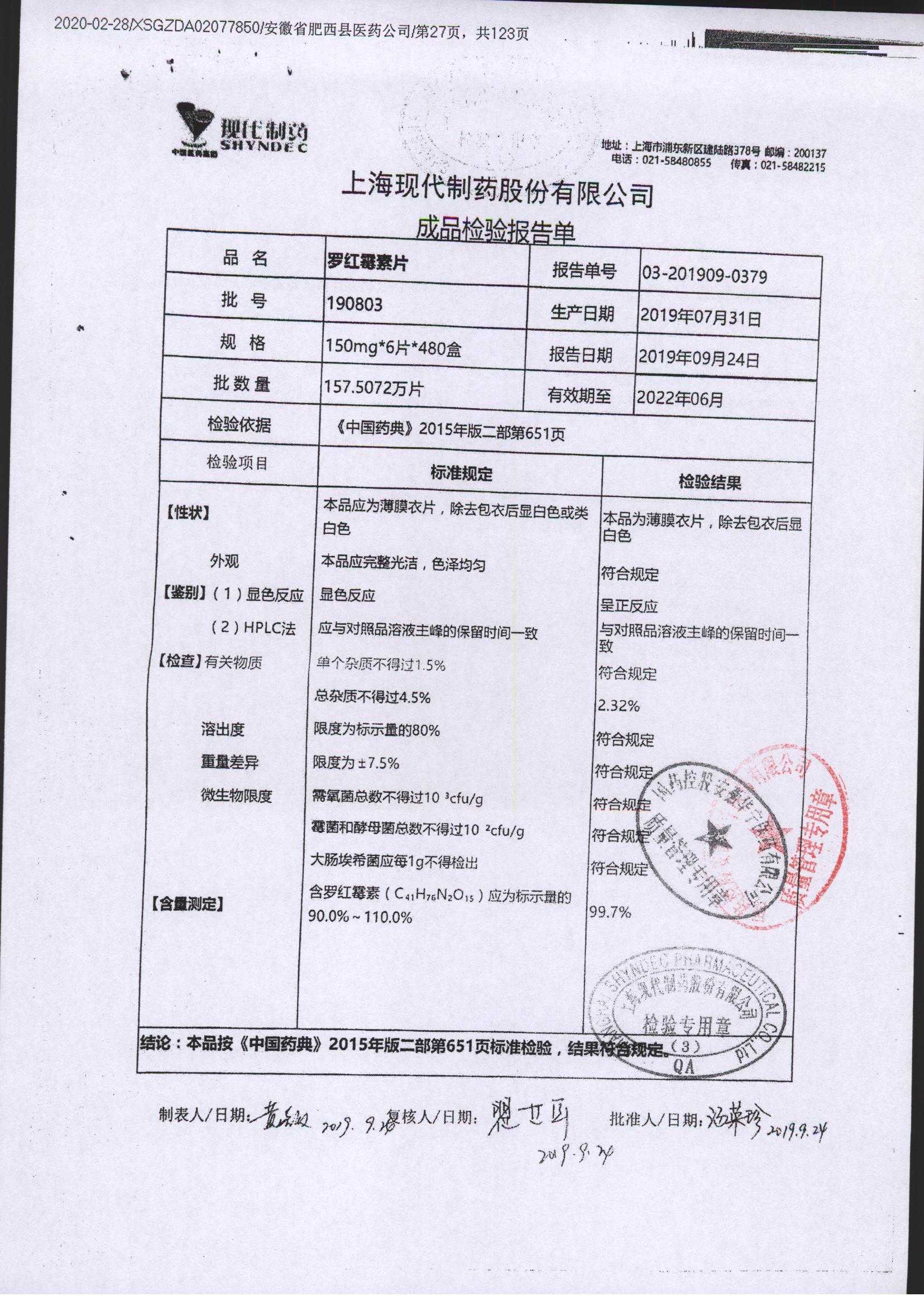 罗红霉素片 | 150mg*6片 | 190802 | 查看详情 |