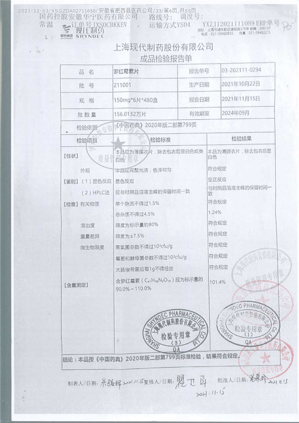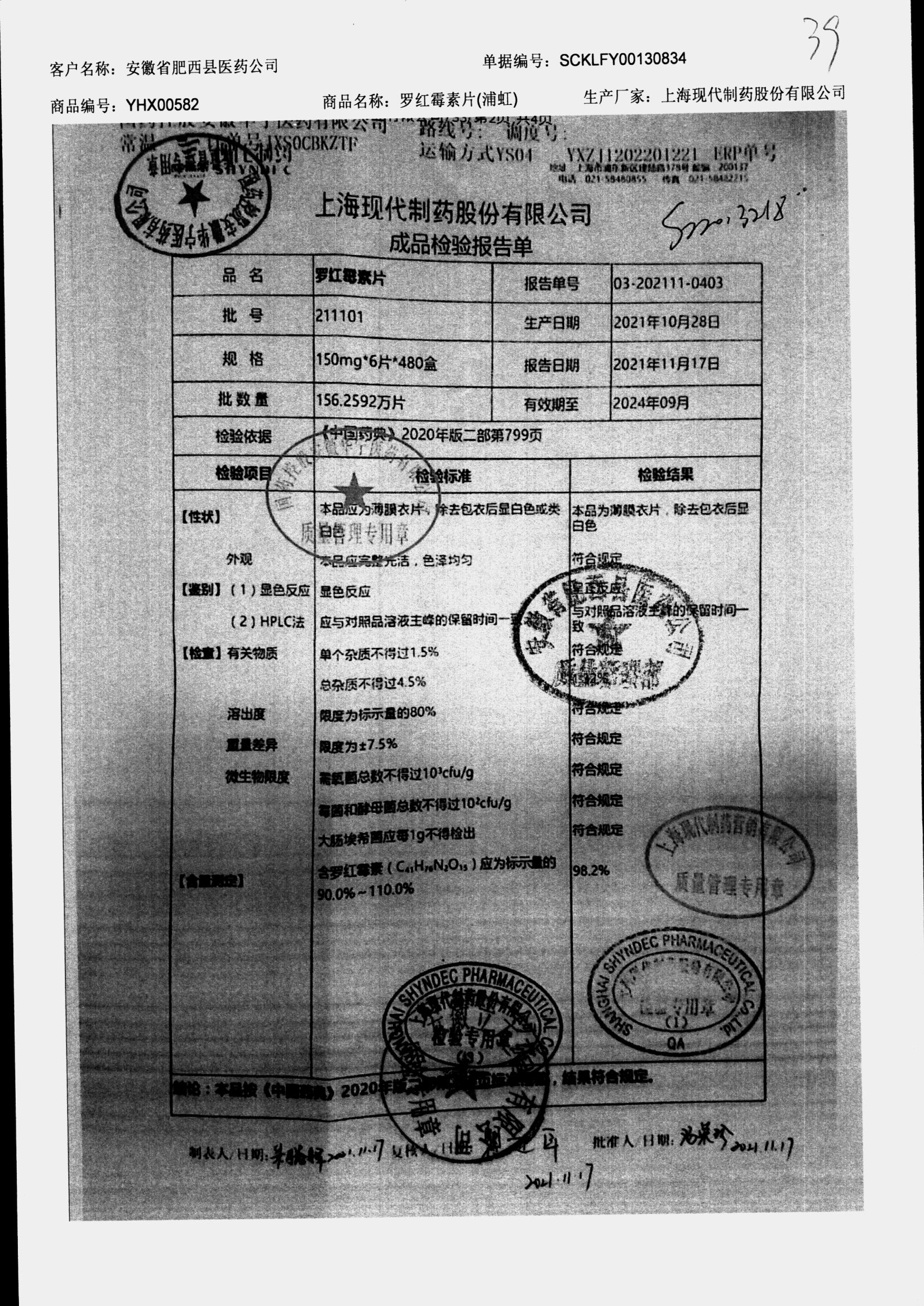 罗红霉素片 | 150mg*6片 | 211201 | 查看详情 |