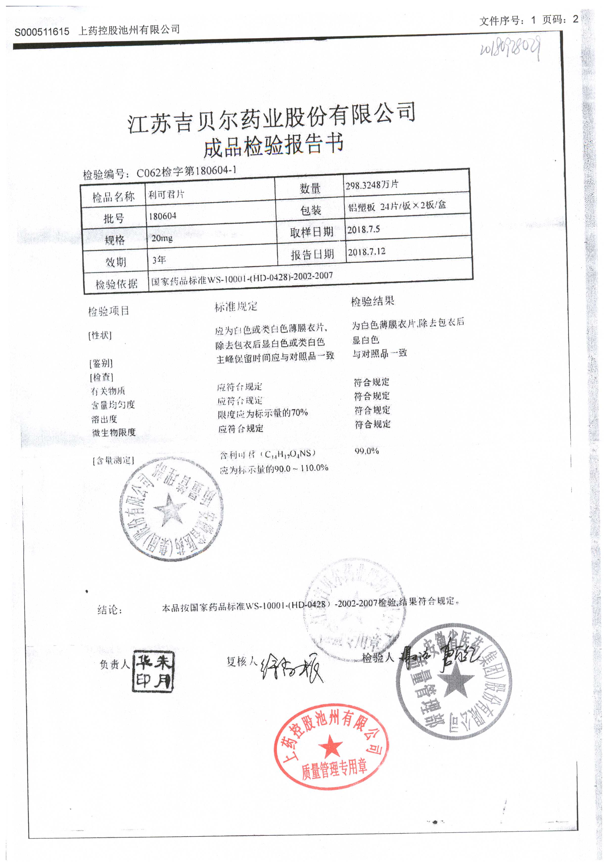 利可君片 | 20mg*32片 | 180604 | 查看详情 |