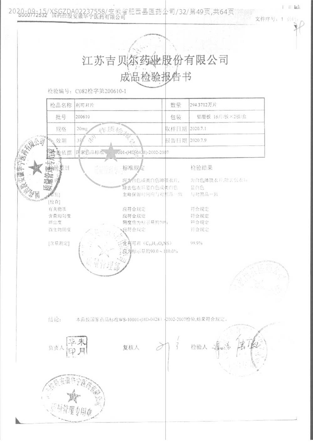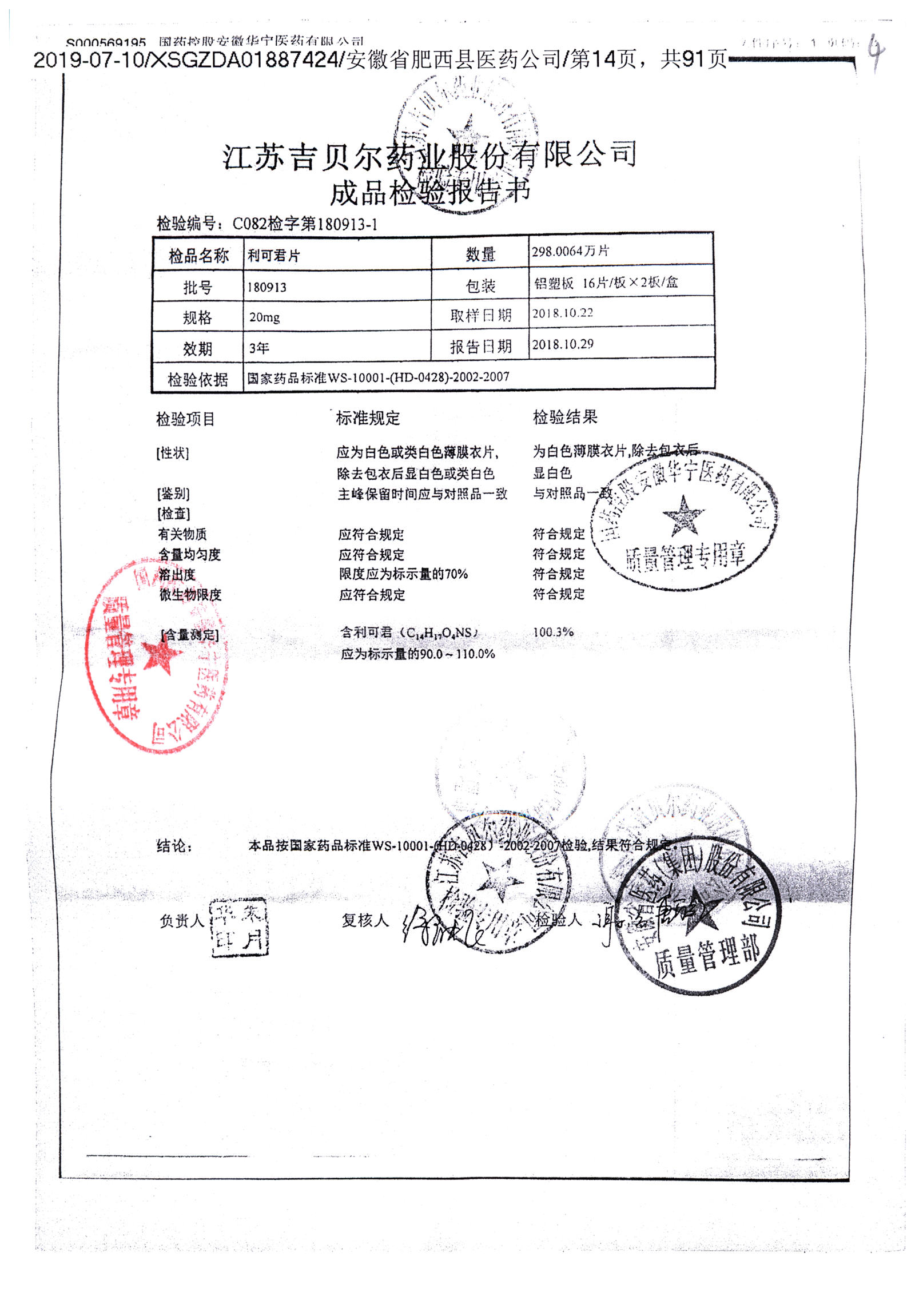 利可君片 | 20mg*32片 | 180913 | 查看详情 |