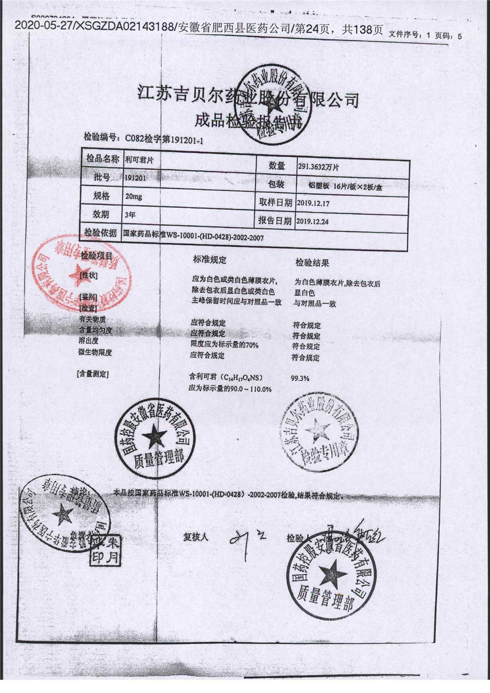 利可君片 | 20mg*32片 | 191201 | 查看详情 |