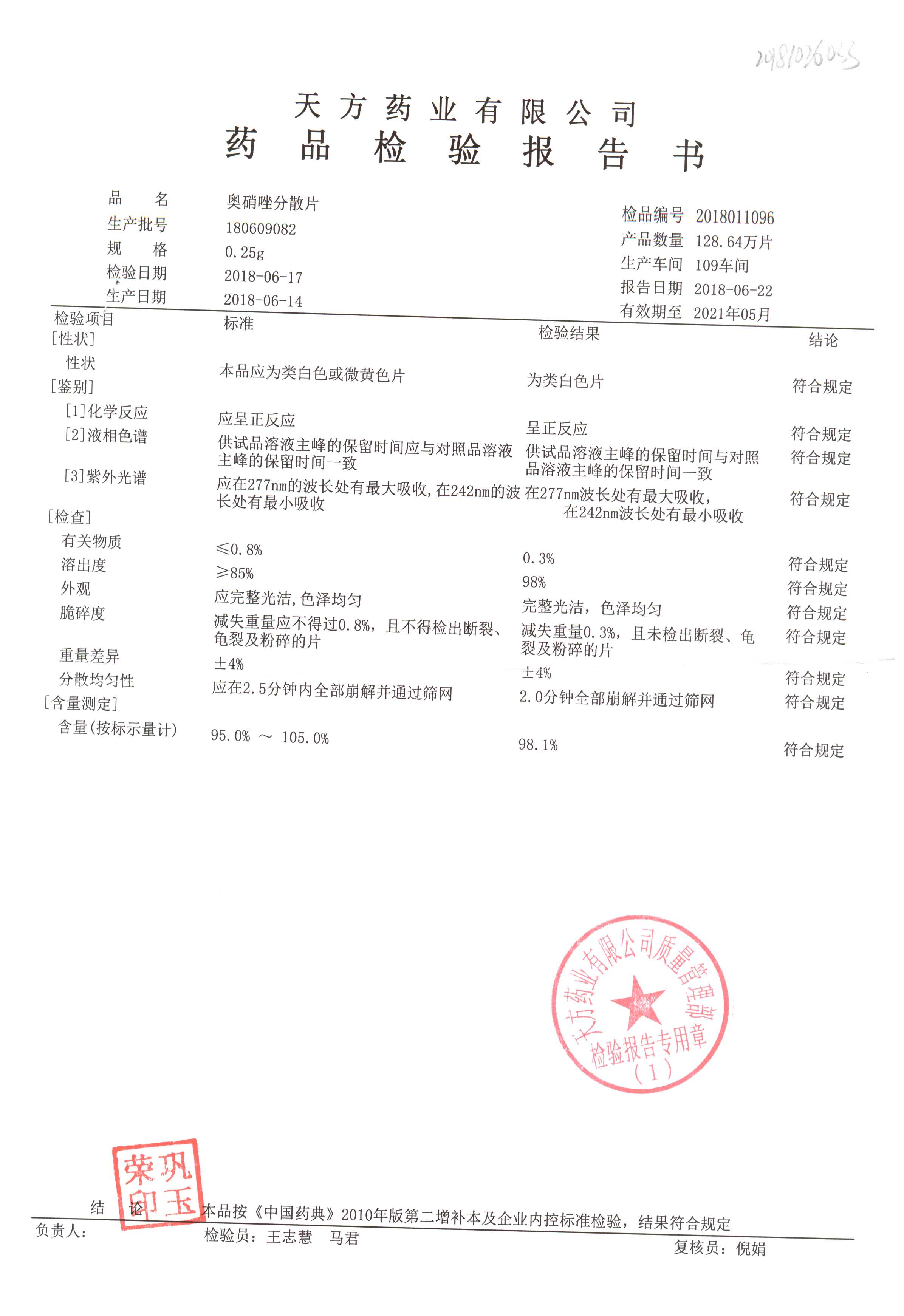 药检报告